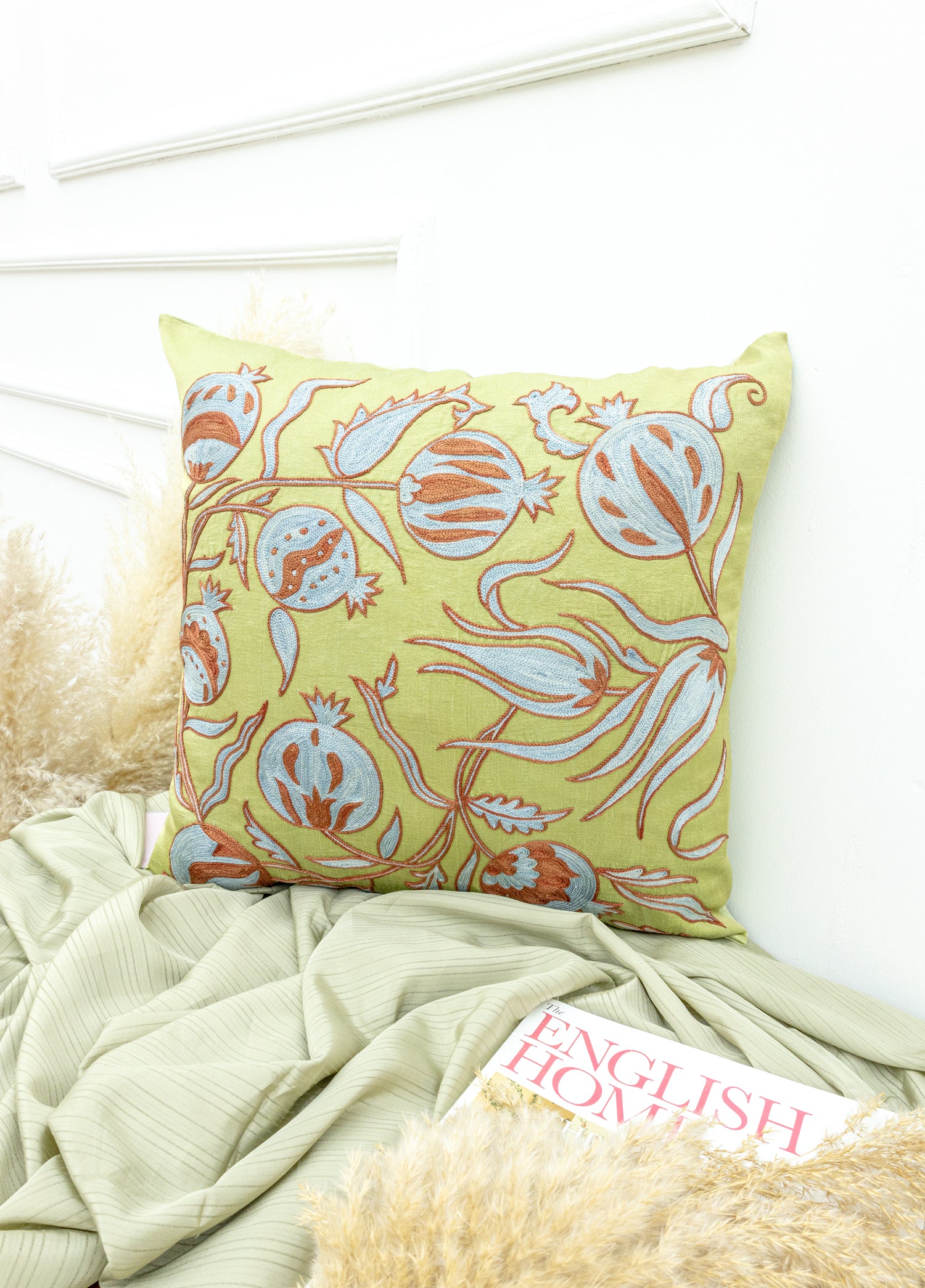 Ahu Floral Tasarımlı İpek Kırlent 45x45 cm