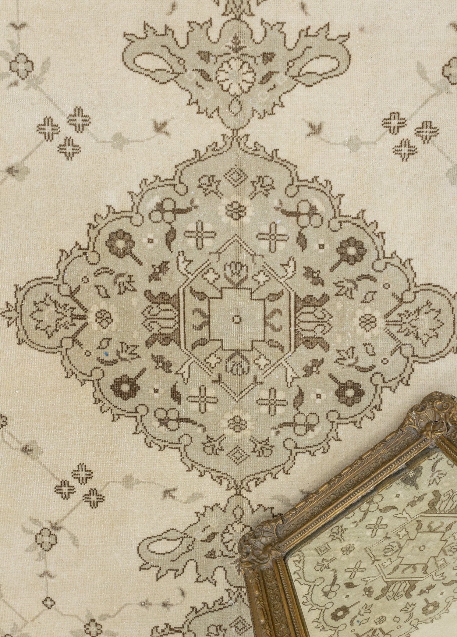 Soho Antiq halı modellerimiz, gösterişli veestetik tasarımlarıyla yaşam alanınıza yeni bir hava katmak için idealseçenekler sunuyor. Uzun ömürlü halılarımız, tamamen doğal yün ve pamuk kullanılarakel dokuma tekniğiyle tasarlanır. Bu özel halılar, yıllar geçse de kalitesinikorumasını sağlayan beceriyle üretilir ve 1 - 3 cm arasında değişen birkalınlığa sahiptir. Boyutları ise 298 x 392 cm'dir. Ana rengi açık kahverengi olanhalılarımızda çeşitli renk seçenekleri bulunmaktadır. Ayrıca, halı tasarımında kahverengi tonları ve diğer birkaç renk kullanılmıştır.