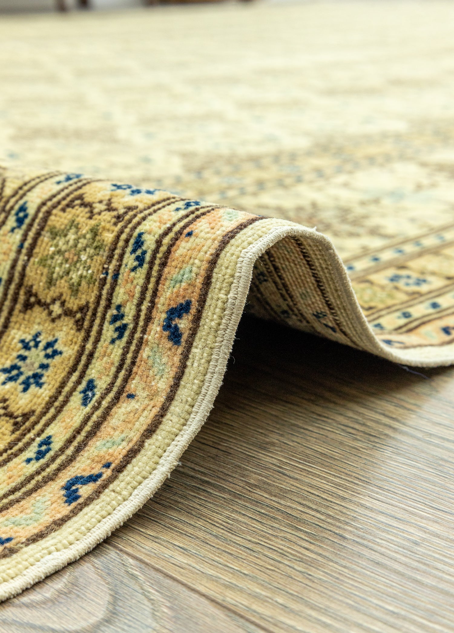 Gösterişli veestetik tasarımlarıyla Soho Antiq halı modellerimiz, yaşam alanınıza yeni birhava katacak! Uzun ömürlü halı modelimiz tamamen doğal pamuk ve yünden oluşurve özel el dokuma tekniği ile dokunmaktadır. Halı modelini özel yapan ve yıllargeçse de kaliteyi korumasını sağlayan becerilerle ürettiğimiz bu halı 1 ile 3cm arası bir kalınlığa sahiptir ve boyu 305 x 423 cm’dir. Halıya dokumasonrası uygulanan tıraşlama işlemi sayesinde hav yüksekliği minimum seviyeyeindirilmiştir, bu da halıya pürüzsüz ve modern bir görünüm kazandırmıştır. Pek çok renk seçeneğine sahip halımodelleri içerisinden seçtiğiniz halının ana rengi yeşil tonlarıdır. Ayrıca halı tasarımındabulunan diğer renkler kahverengi, bej ve çok renklidir. Soho Antiq içerisinde, kültürel ve gelenekselözelliklere sahip halılar bulunur. Geçmişten günümüze gelen bu halı modeli 1980'ler tarihinden izler taşır ve özellikle Kayseri, Bünyan yöresinden kültürel renk vedokunuşlara sahiptir. Tüm bu geleneksel dokunuşları, halı üzerindeki rustik desenindegörmek mümkün.