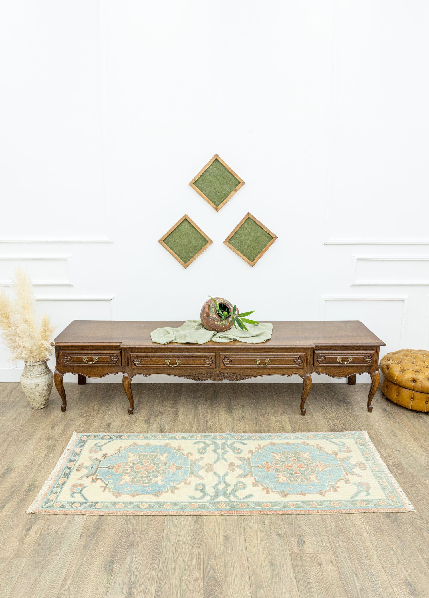 Soho Antiq ilenostaljik bir yolculuğa çıkın ve geleneksel yolluk halı modellerinin büyüleyicidünyasını keşfedin! Her biri ustaca el dokumasıyla hazırlanan bu özel yollukhalı modeli, doğal yünün eşsiz dokusunu yansıtmaktadır. Ana renk olarak seçilen krem, tasarımın göz alıcı çekiciliğini vurgularken, içinde barındırdığı mavi ve yeşil tonları diğer renklerle birlikte harmonik bir bütünlük sunmaktadır. Bu yolluk modelinintasarımının kökeni, Uşak yöresinin zengin geleneksel dokunuşlarınadayanmaktadır. Ayrıca, Ege’nin zamansız tarzını yansıtarak özel bir nostaljikatmosfer sunmaktadır.