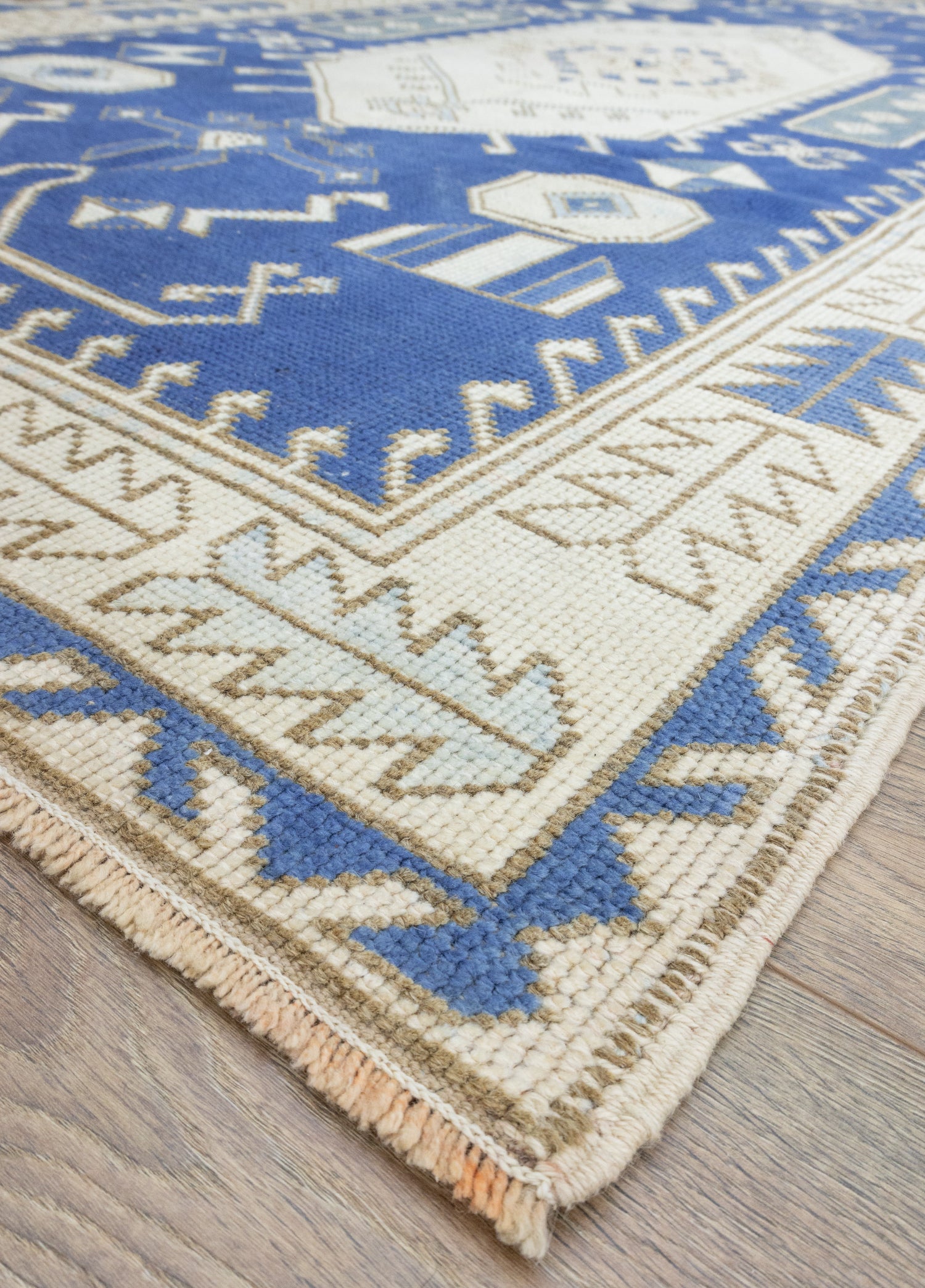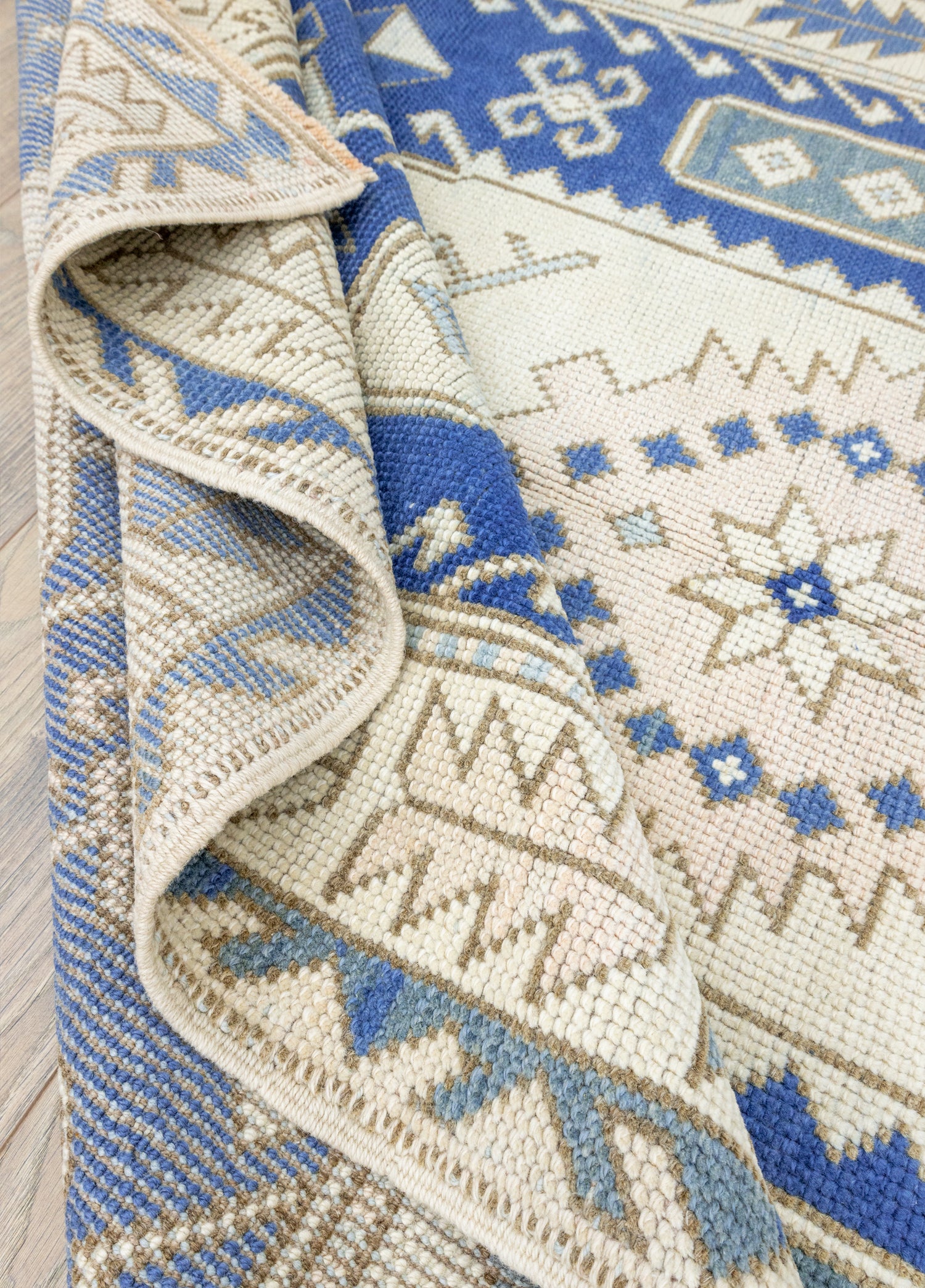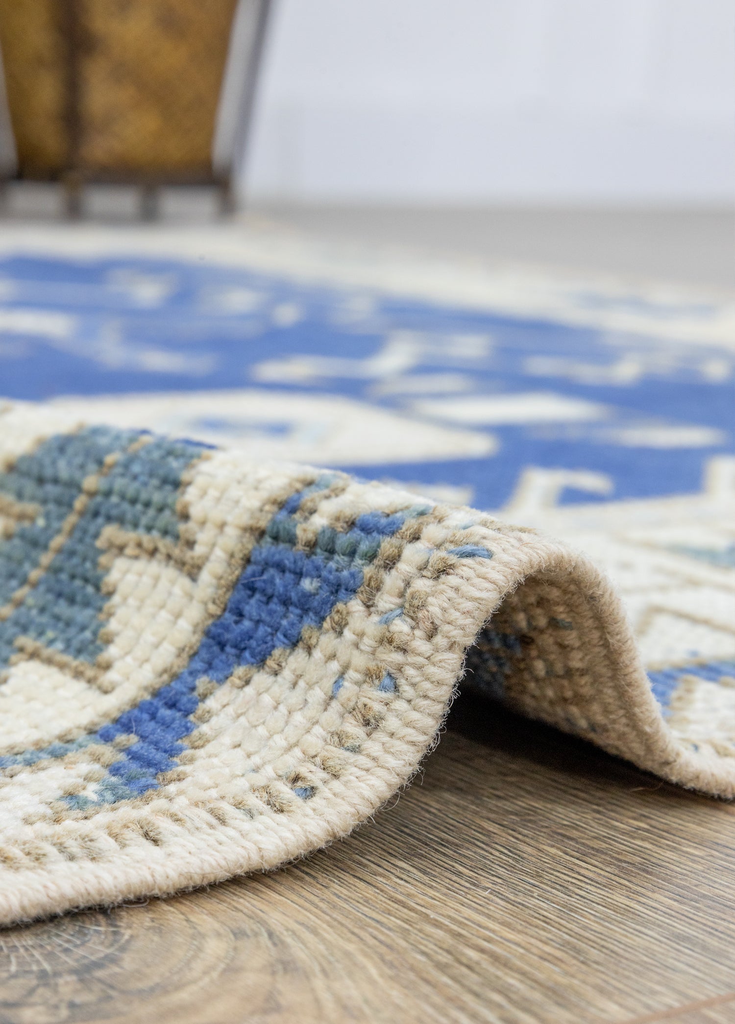 Buget İlkel Desenli El Dokuma Mavi Yün Halı 139x238 cm