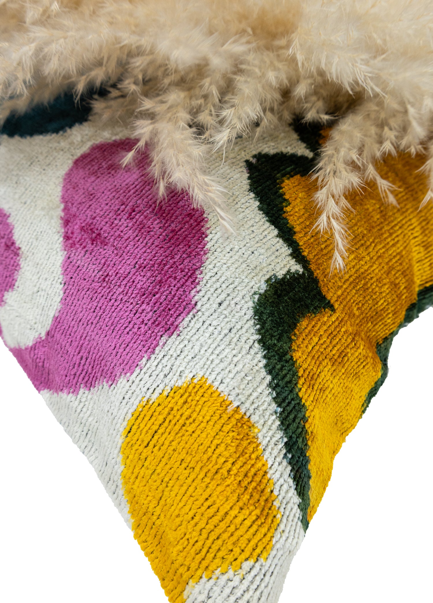 İkat kadife yastıklar, ikat desenleme tekniğiyle üretilen vekadife, kumaş kullanılarak yapılan yastıklardır. Bu yastıklar, hem ikatdeseninin görsel çekiciliğini taşırken hem de kadife kumaşın yumuşaklık ve lükshissini sunar.