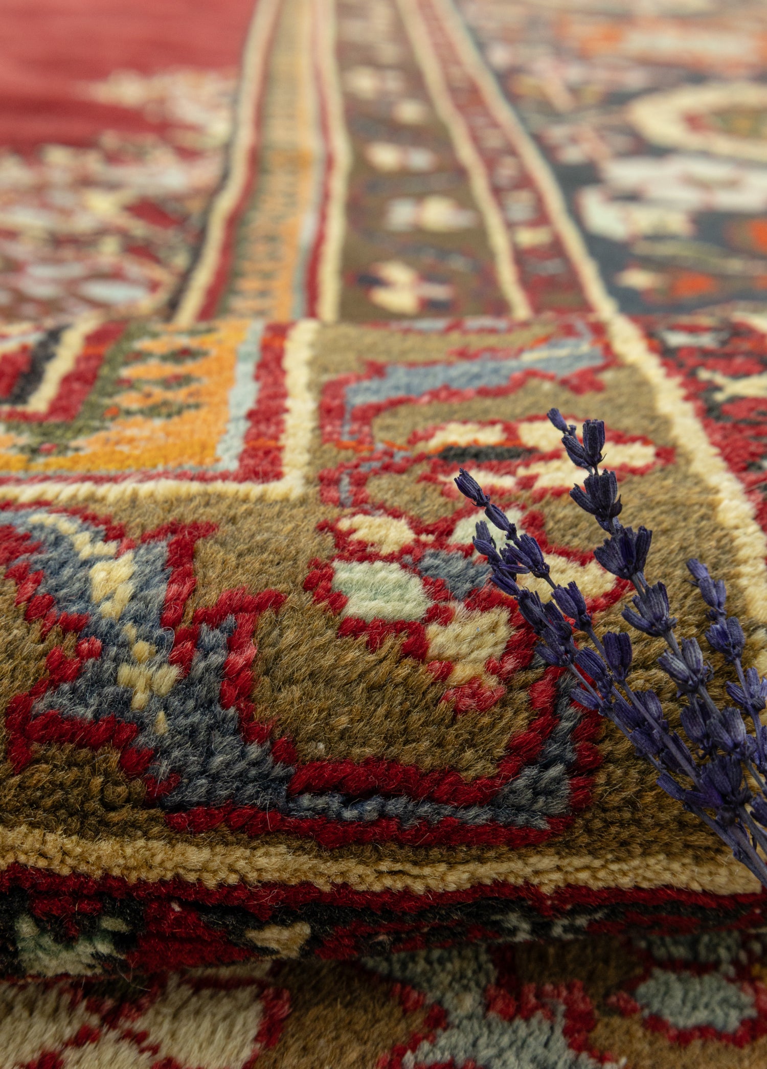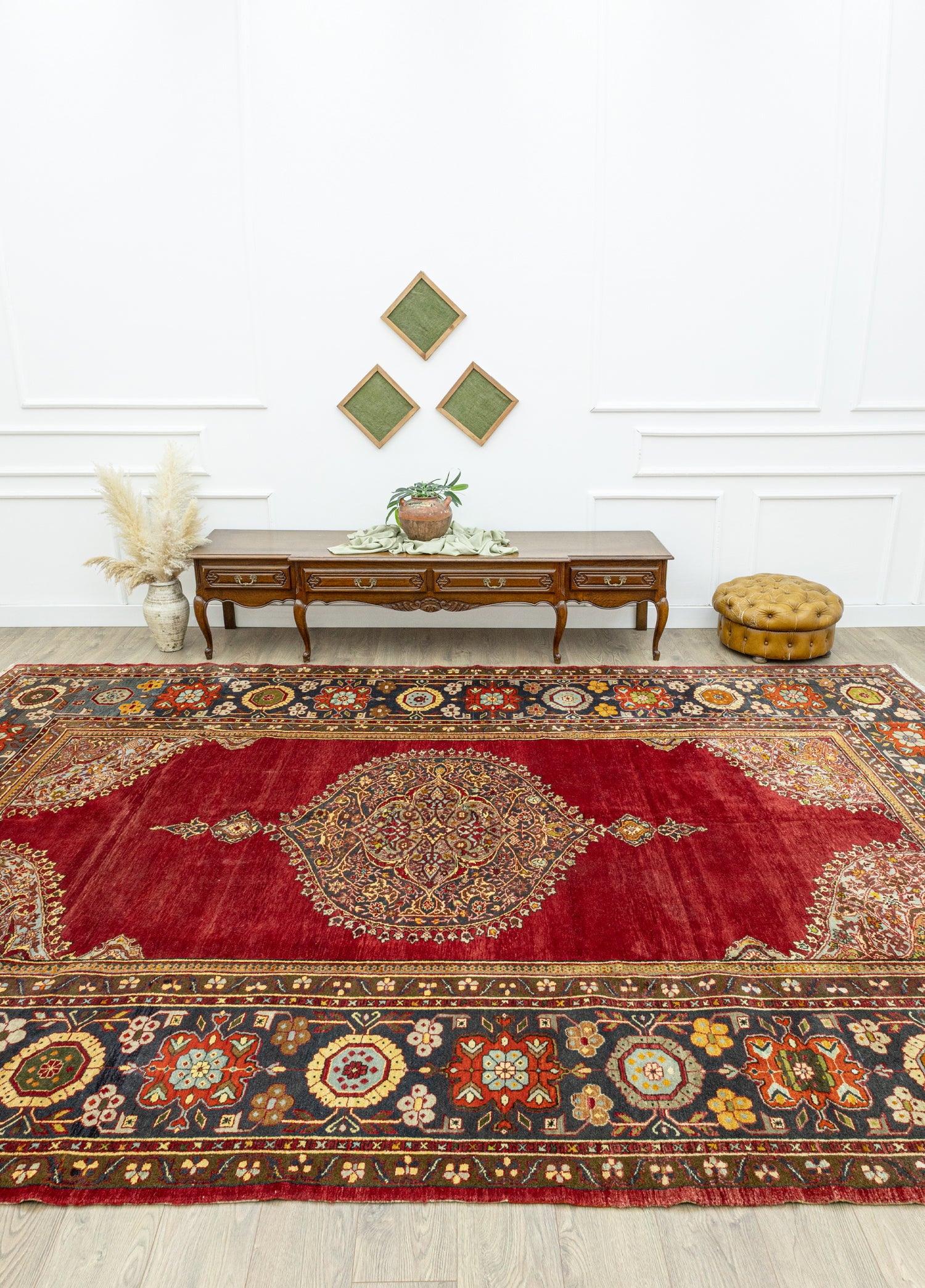 Soho Antiq el dokuma halı ve kilimleri, yaşam alanlarınızanefes katmak için tasarlanmıştır. Bu zarif el dokuma halı, özenle seçilmişyüksek kaliteli yün ipliklerinin ustalıkla bir araya getirilmesiyleoluşturulmuştur. Geleneksel el dokuma teknikleri kullanılarak üretilen halı,evinize sıcaklık ve zarafet katmak amacıyla özel olarak tasarlanmıştır. Renkpaleti, doğanın yumuşak tonlarından ilham alınarak oluşturulmuş olup, kırmızı ile lacivert renklerinin uyumuyla dikkat çekerken halı içerisinde bulunan diğer renkler ileuyumu yakalamaktadır. Halı, deneyimli el sanatçıları tarafından özenle dokunmuşve Sille yöresine özgü geleneksel tekniklerle 1930'larda üretilmiştir, bu da neredeyse 100 yaşında olan halıyakültürel bir derinlik katmaktadır. Halının ebatı 387 x 427 cm olarak ölçülmüştürve bu ölçü, halının farklı yaşam alanlarına kolaylıkla uyum sağlamasını sağlar.Halının kalınlığı ise 1 - 3 cm arasındadır. Estetik değerinin ötesinde, bu eldokuma halı, evinize özgünlük ve geleneksel bir his katma konusunda öneçıkmaktadır.