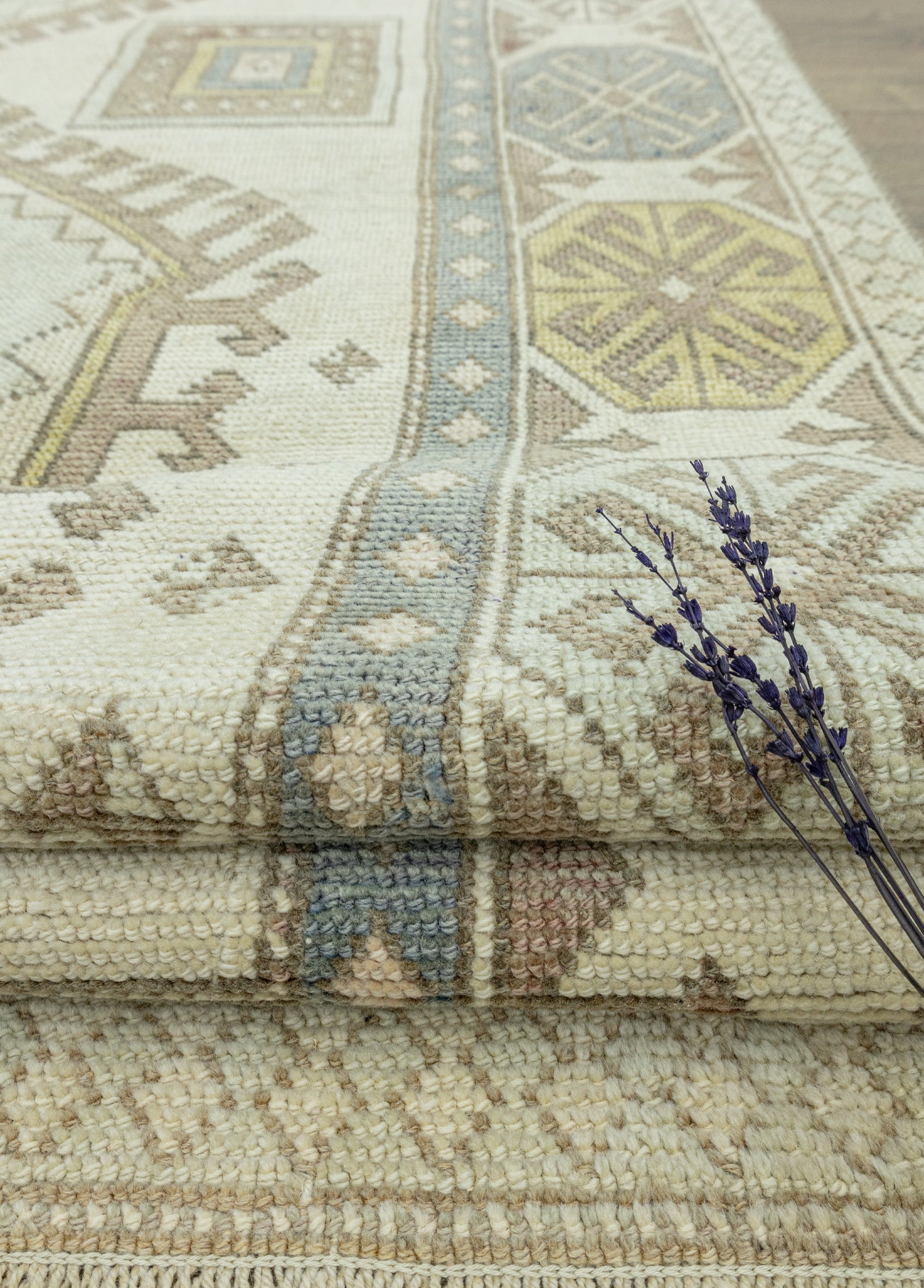 Soho Antiq el dokuma halı ve kilimleri, yaşam alanlarınızanefes katmak için tasarlanmıştır. Bu zarif el dokuma halı, özenle seçilmişyüksek kaliteli yün ipliklerinin ustalıkla bir araya getirilmesiyleoluşturulmuştur. Geleneksel el dokuma teknikleri kullanılarak üretilen halı,evinize sıcaklık ve zarafet katmak amacıyla özel olarak tasarlanmıştır. Renkpaleti, doğanın yumuşak tonlarından ilham alınarak oluşturulmuş olup, krem ve pastel yeşil renklerinin uyumuyla dikkat çekerken halı içerisinde bulunan diğer renkler ileuyumu yakalamaktadır. Halı, deneyimli el sanatçıları tarafından özenle dokunmuşve Ege yöresine özgü geleneksel tekniklerle 1990'larda üretilmiştir, bu da halıyakültürel bir derinlik katmaktadır. Halının ebatı 200 x 327 cm olarak ölçülmüştürve bu ölçü, halının farklı yaşam alanlarına kolaylıkla uyum sağlamasını sağlar.Halının kalınlığı ise 1 - 3 cm arasındadır. Estetik değerinin ötesinde, bu eldokuma halı, evinize özgünlük ve geleneksel bir his katma konusunda öneçıkmaktadır.