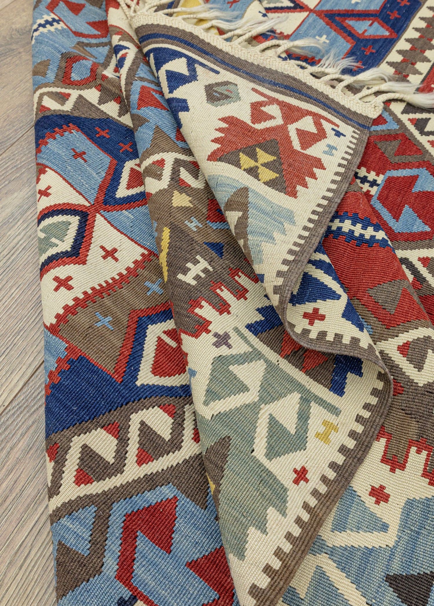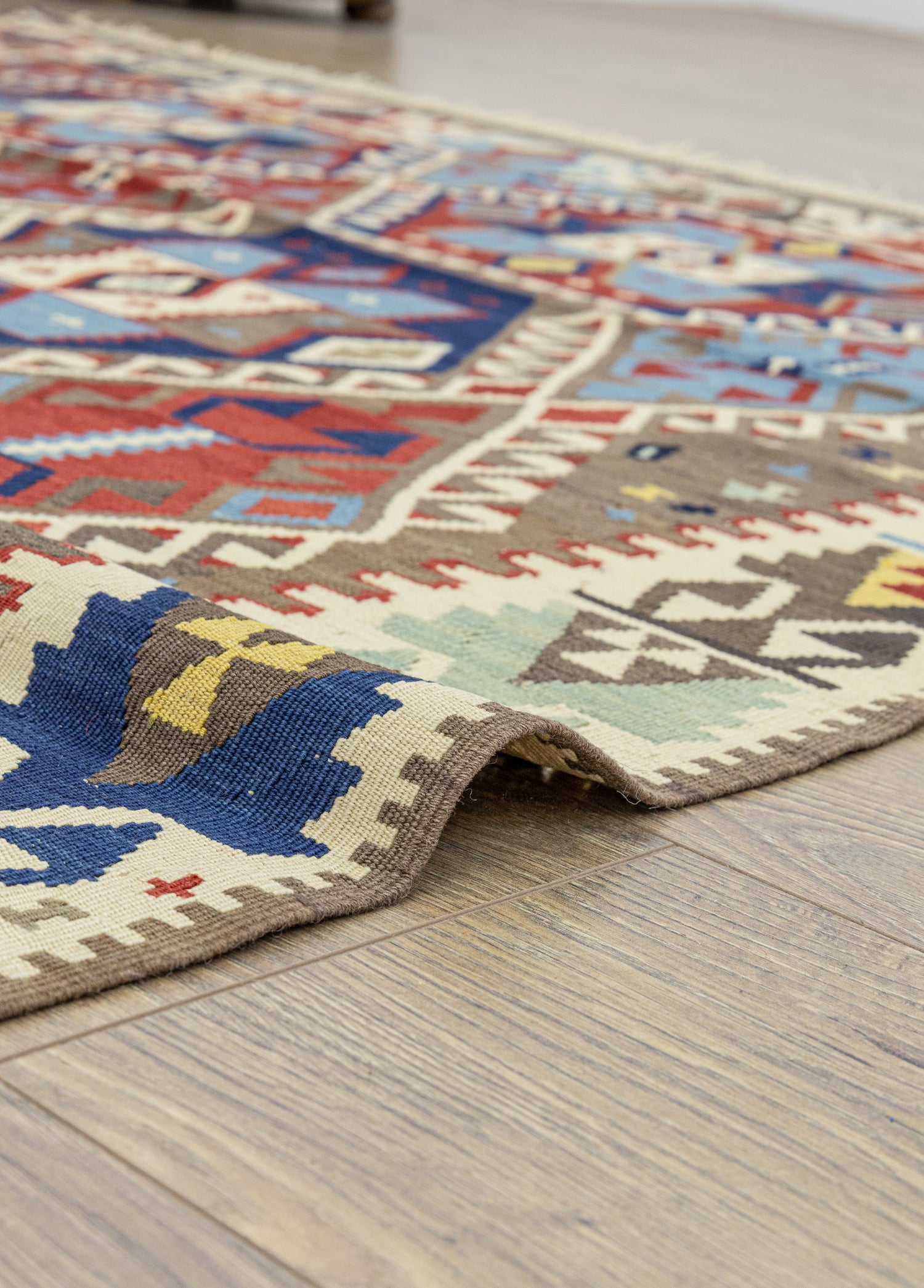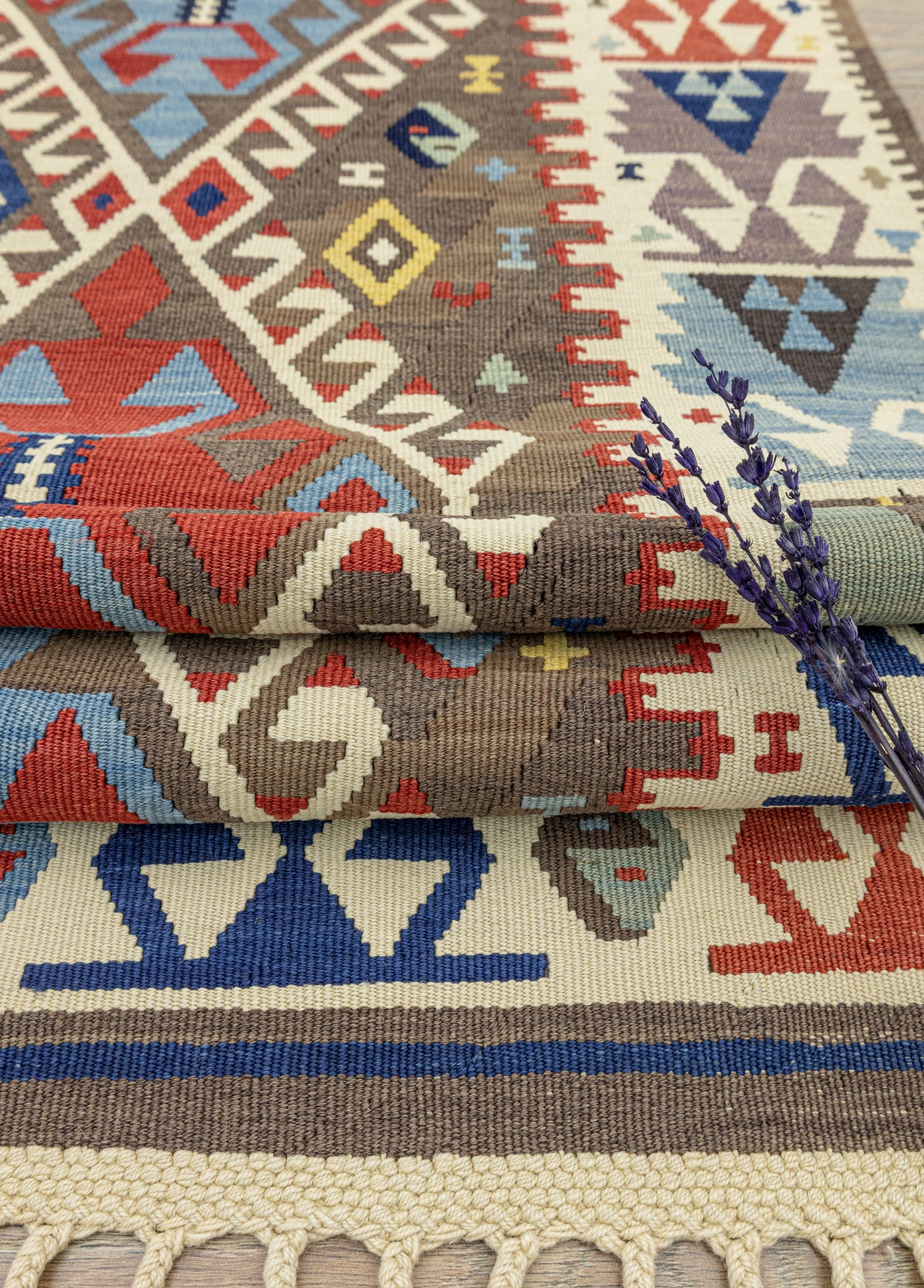 Hayatınıza farklılık katacak olan Soho Antiqgeleneksel ve modern kilim modelleri ile karşınızdayız! Her türlü mekana uyumsağlayacak şekilde özel olarak tasarlanan bu kilim modeli, benzersiz el dokumateknikleri kullanılarak üretilmiştir ve tamamen doğal yünden oluşmaktadır. Buda onu özel kılan birçok özelliğinden sadece biridir. Kilim modelinin temelrengi mavidir ve diğer yan renkler ise kırmızı, krem ve çok renkli olarak seçilmiştir. Bu uyumlurenkler sayesinde estetik bir kilim ile buluşursunuz.