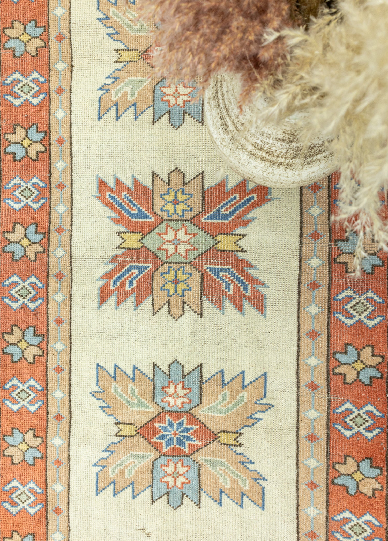Zamanda yolculuğa çıkaracak, geleneksel ve modern yolluk halı modelleri Soho Antiq ile sizlerle! Tamamen doğal yün ile işlenen bu yolluk modeli ayrıca el dokuma ile hazırlanmıştır. Göz alıcı tasarımında bulunan ana renk kremdir. Ayrıca halı içerisinde bulunan diğer renkler mavi, kırmızı ve çok renklidir. Halı modelinde sizi etkileyen o tasarımın kaynağı, Uşak yöresinden gelen geleneksel dokunuşlardandır. Öte yandan 1980’lerin tüm karakteristik özelliklerini bu halı modelinde bulmak mümkün. Halının boyu 83 x 296 cm’dir ve kalınlığı 1-3 cm arasındadır. Soho Antiq, halı modelleri ile yaşam alanınıza farklılık katar.