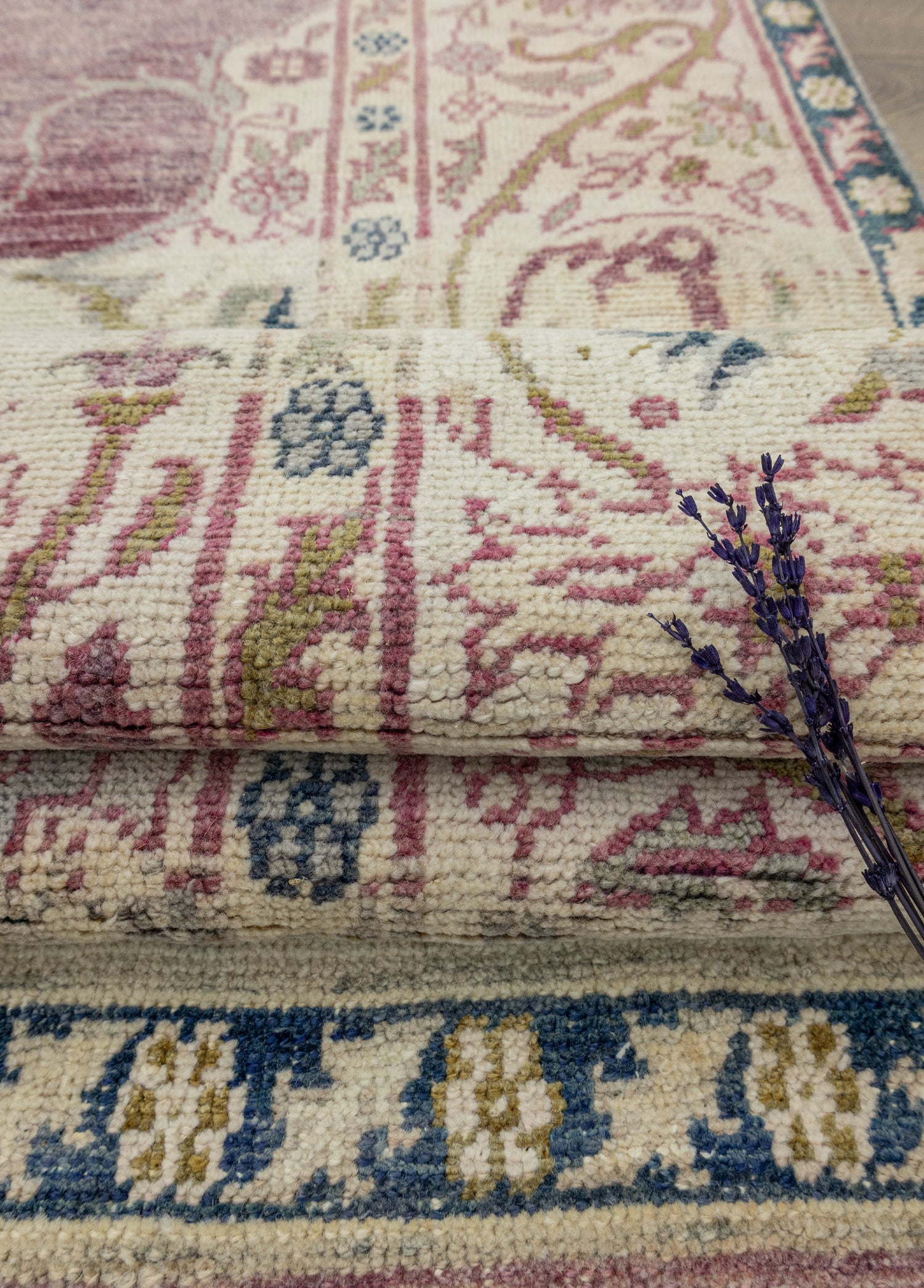 Gösterişli veestetik tasarımlarıyla Soho Antiq halı modellerimiz, yaşam alanınıza yeni birhava katacak! Uzun ömürlü halı modelimiz tamamen doğal pamuk ve yünden oluşurve özel el dokuma tekniği ile dokunmaktadır. Halı modelini özel yapan ve yıllargeçse de kaliteyi korumasını sağlayan becerilerle ürettiğimiz bu halı 1 ile 3cm arası bir kalınlığa sahiptir ve boyu 266 x 350 cm’dir. Halıya dokumasonrası uygulanan tıraşlama işlemi sayesinde hav yüksekliği minimum seviyeyeindirilmiştir, bu da halıya pürüzsüz ve modern bir görünüm kazandırmıştır. Pek çok renk seçeneğine sahip halımodelleri içerisinden seçtiğiniz halının ana rengi pastel pembedir. Ayrıca halı tasarımındabulunan diğer renkler bej, mavi ve çok renklidir. Soho Antiq içerisinde, kültürel ve gelenekselözelliklere sahip halılar bulunur. Geçmişten günümüze gelen bu halı modeli 1970'ler tarihinden izler taşır ve özellikle Isparta yöresinden kültürel renk vedokunuşlara sahiptir. Tüm bu geleneksel dokunuşları, halı üzerindeki madalyon desenindegörmek mümkün.