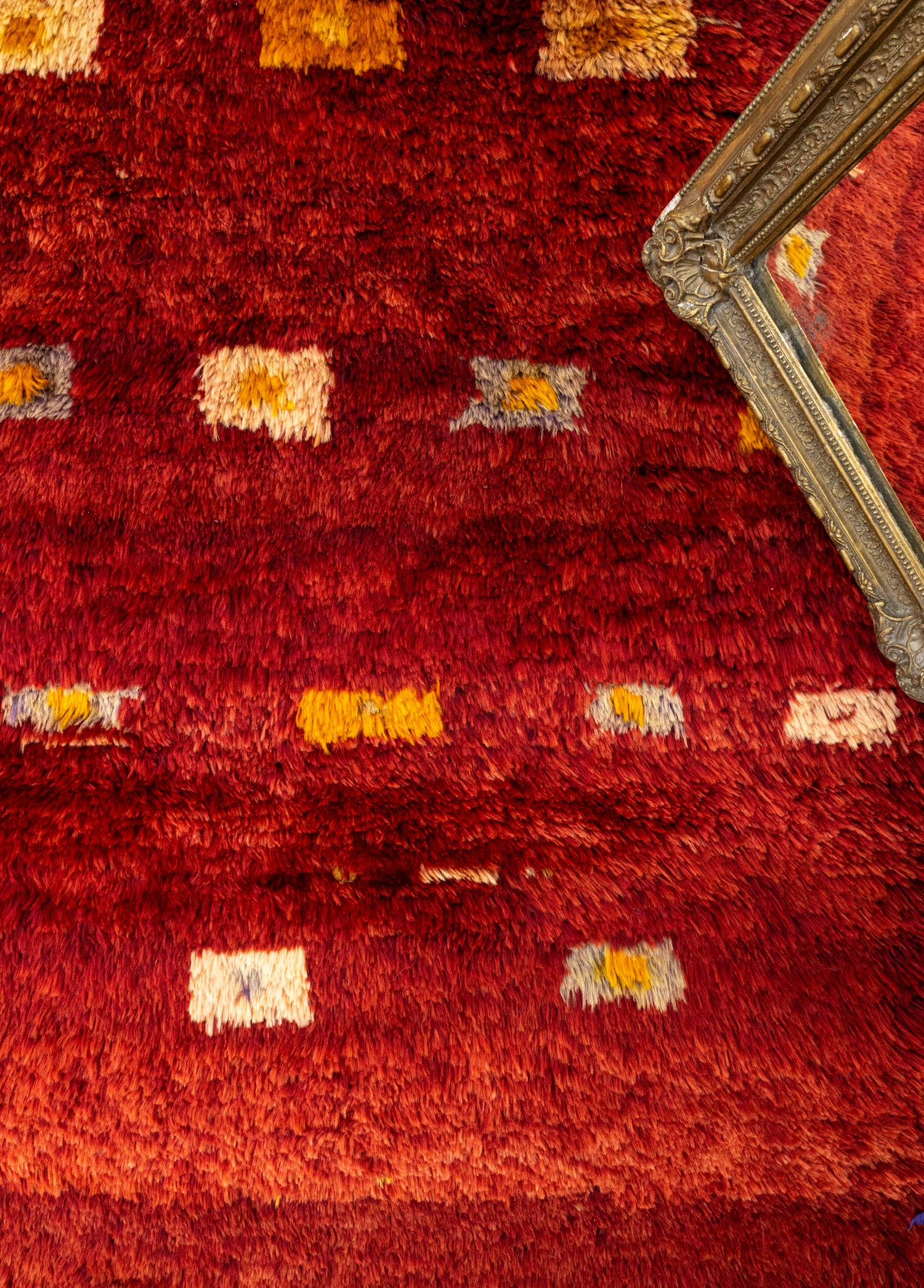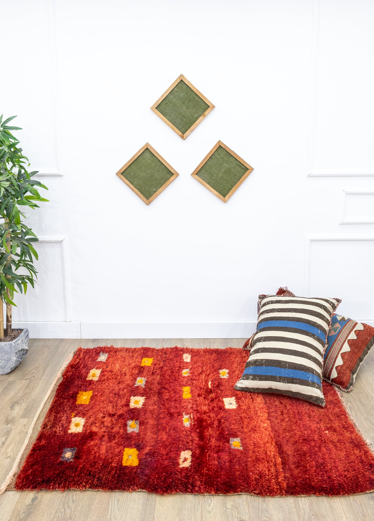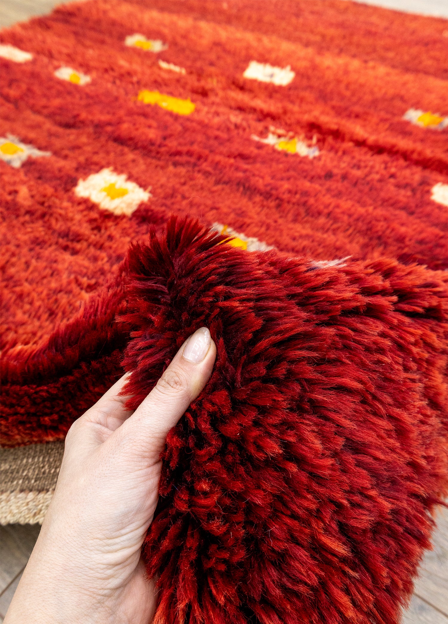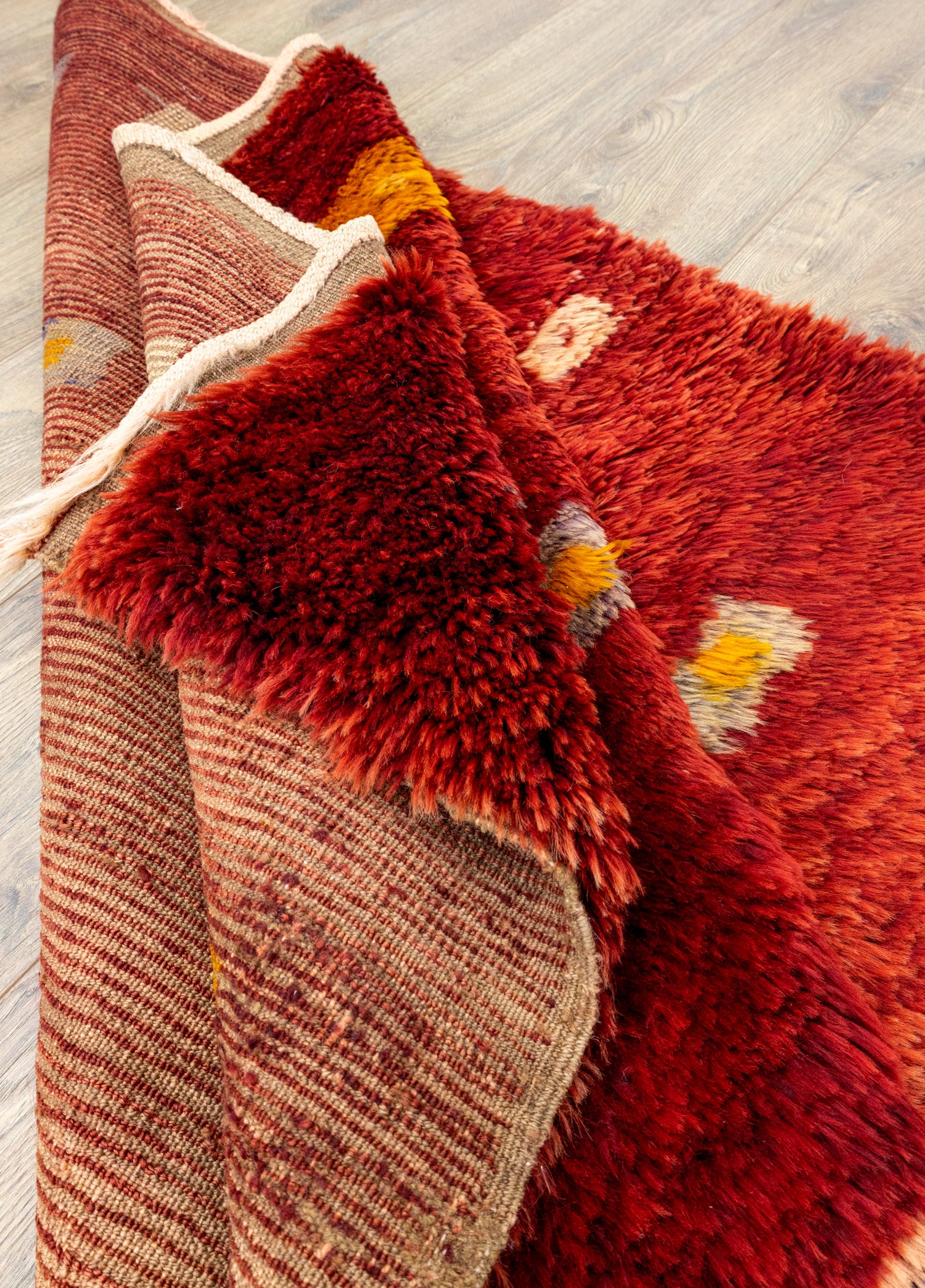Karsu El Dokuma Kırmızı Etnik Desenli Yumşak Tüylü Halı 128x164 cm