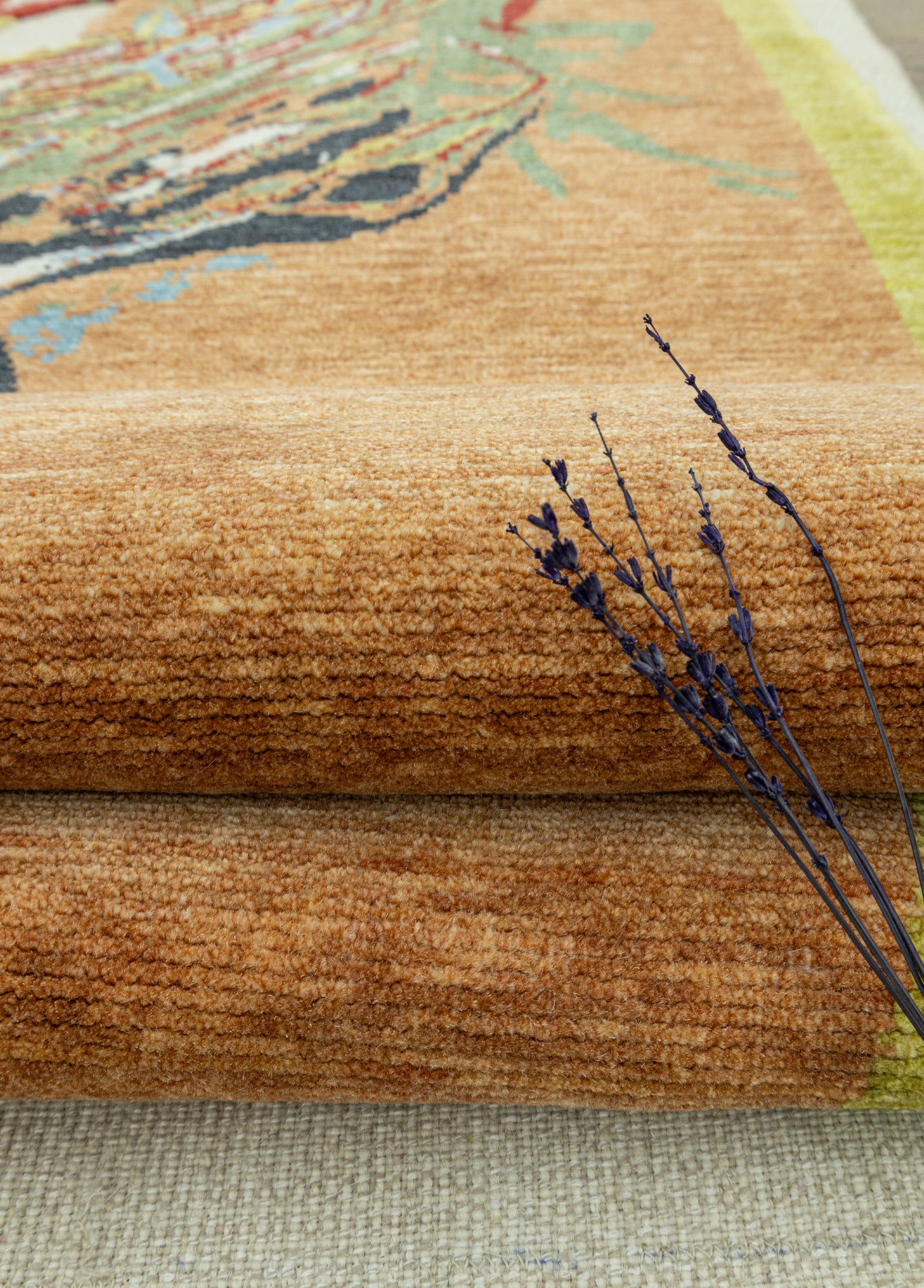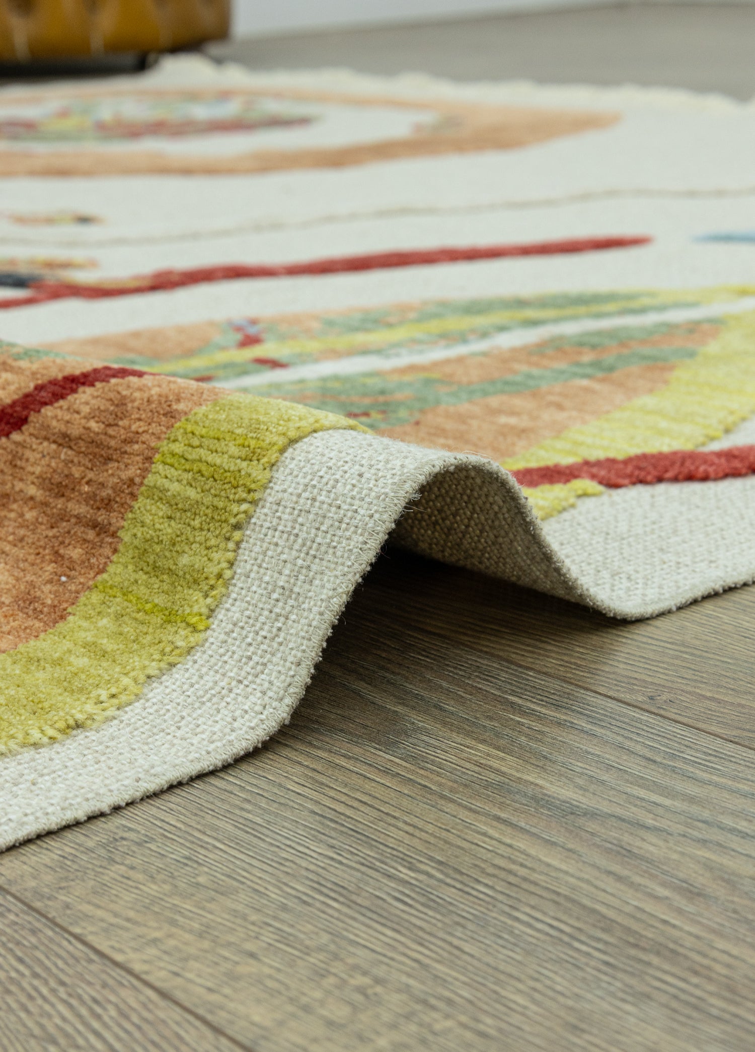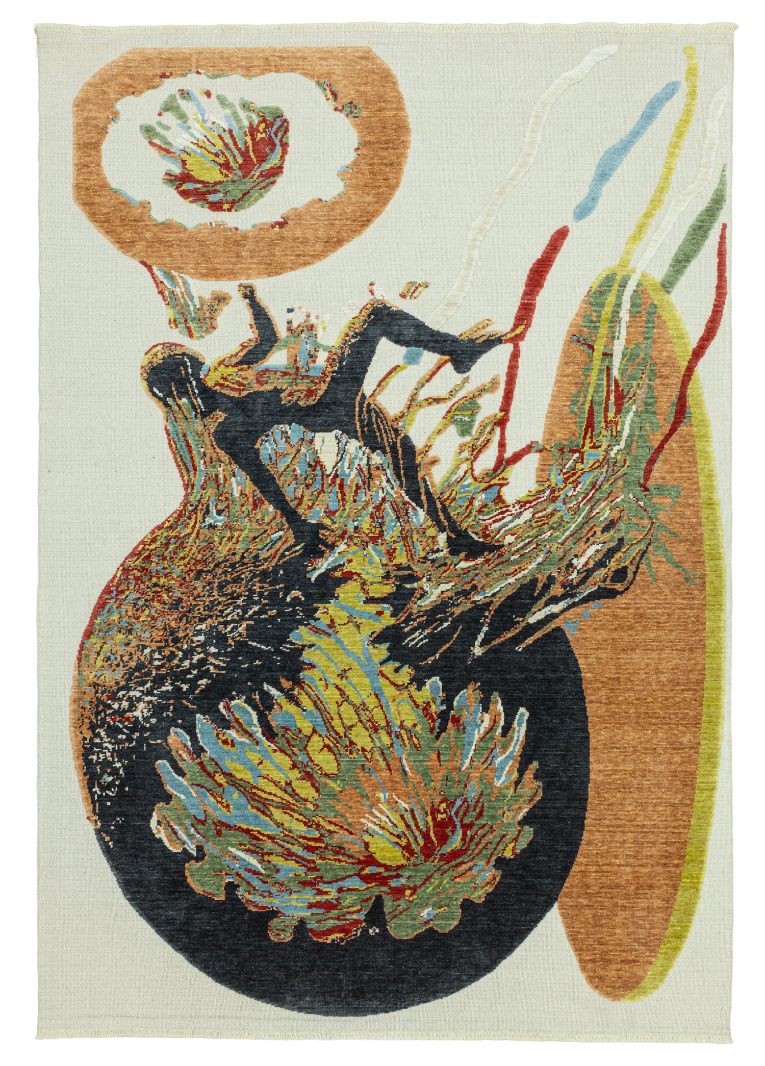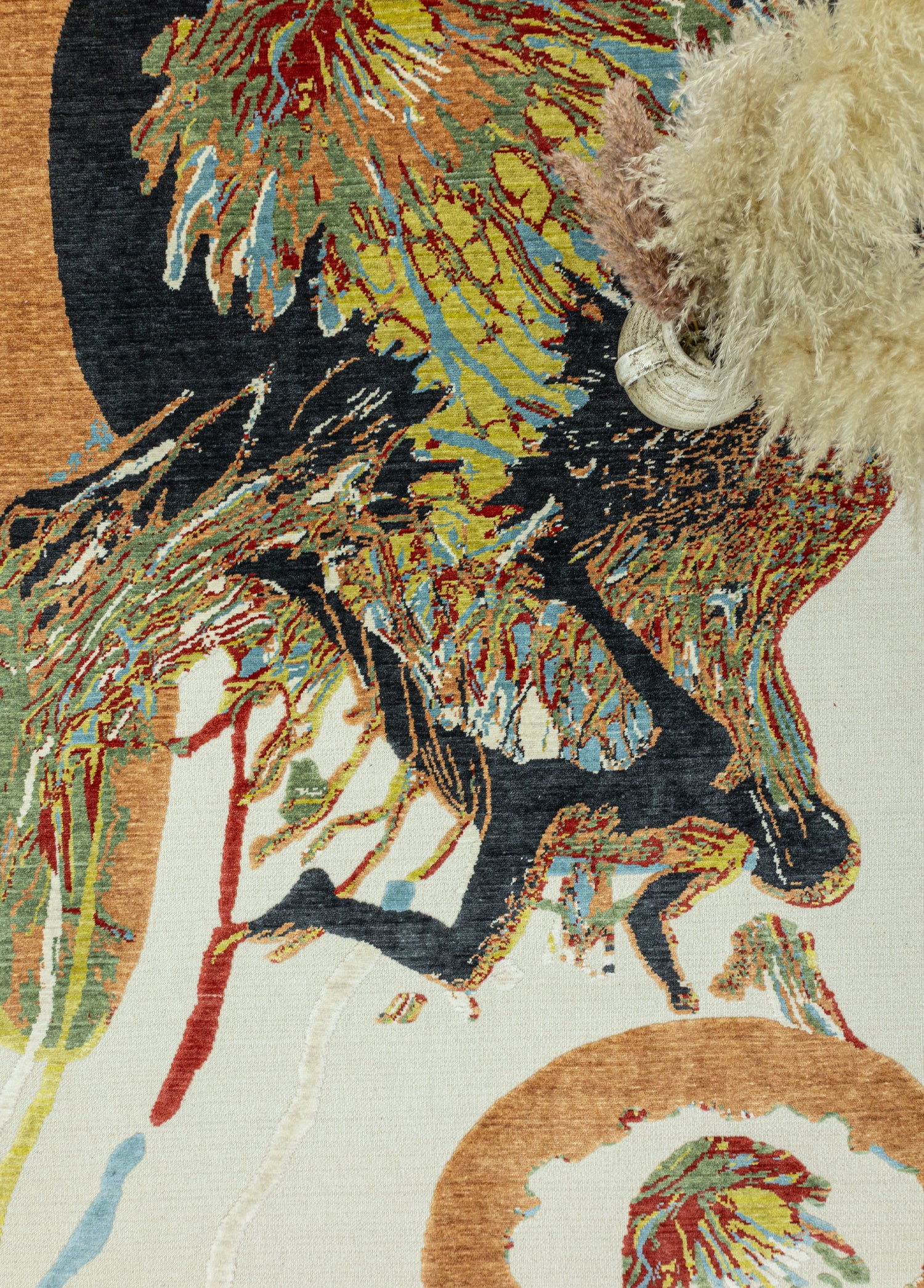 Özel tasarım modern halı modeli, Ege bölgesinde, deneyimli ustalar tarafından kara tezgâh dokuma tekniğiyle üretilmiştir. Bu üretim yöntemi, halıya hem modern hem de soyut bir karakter kazandırmaktadır.