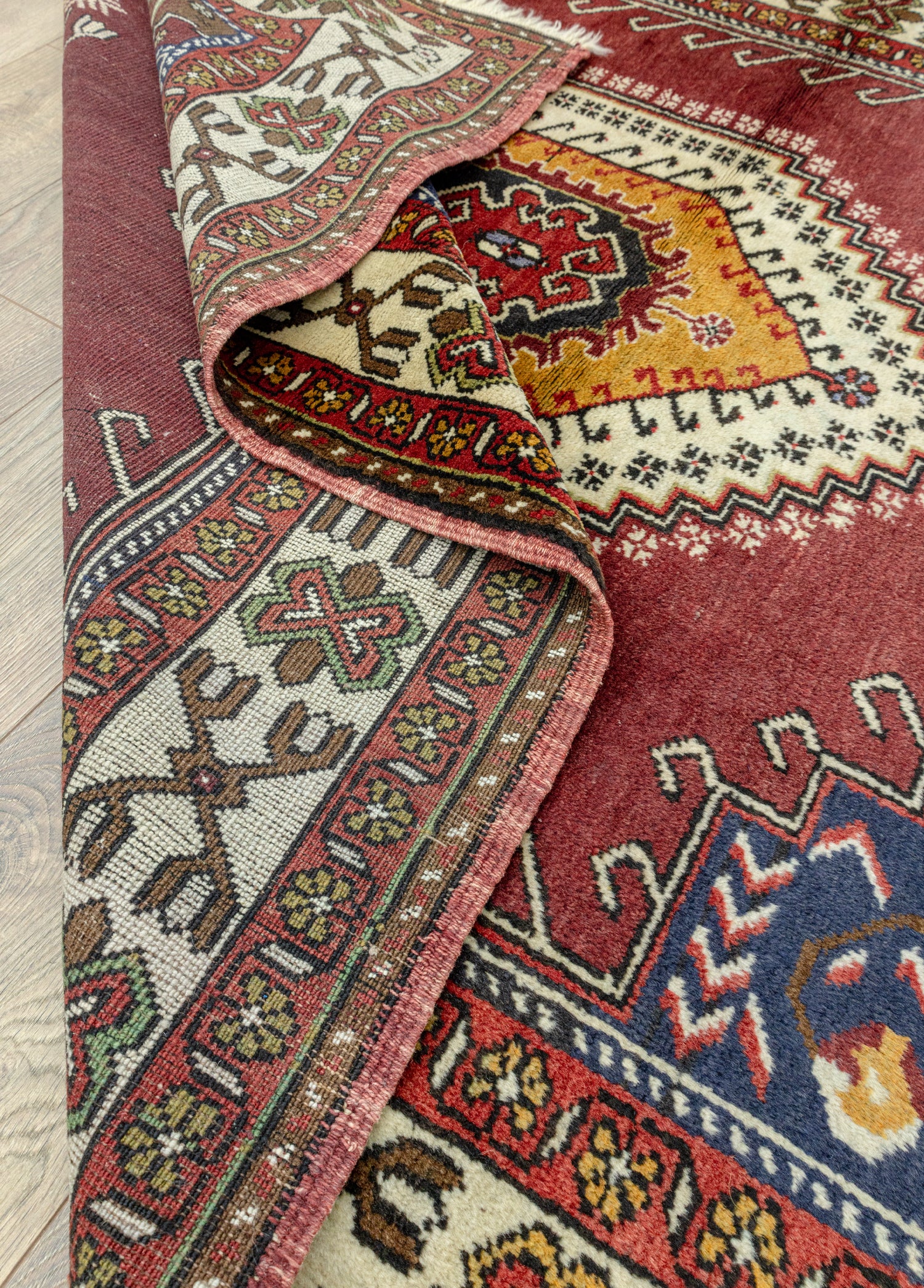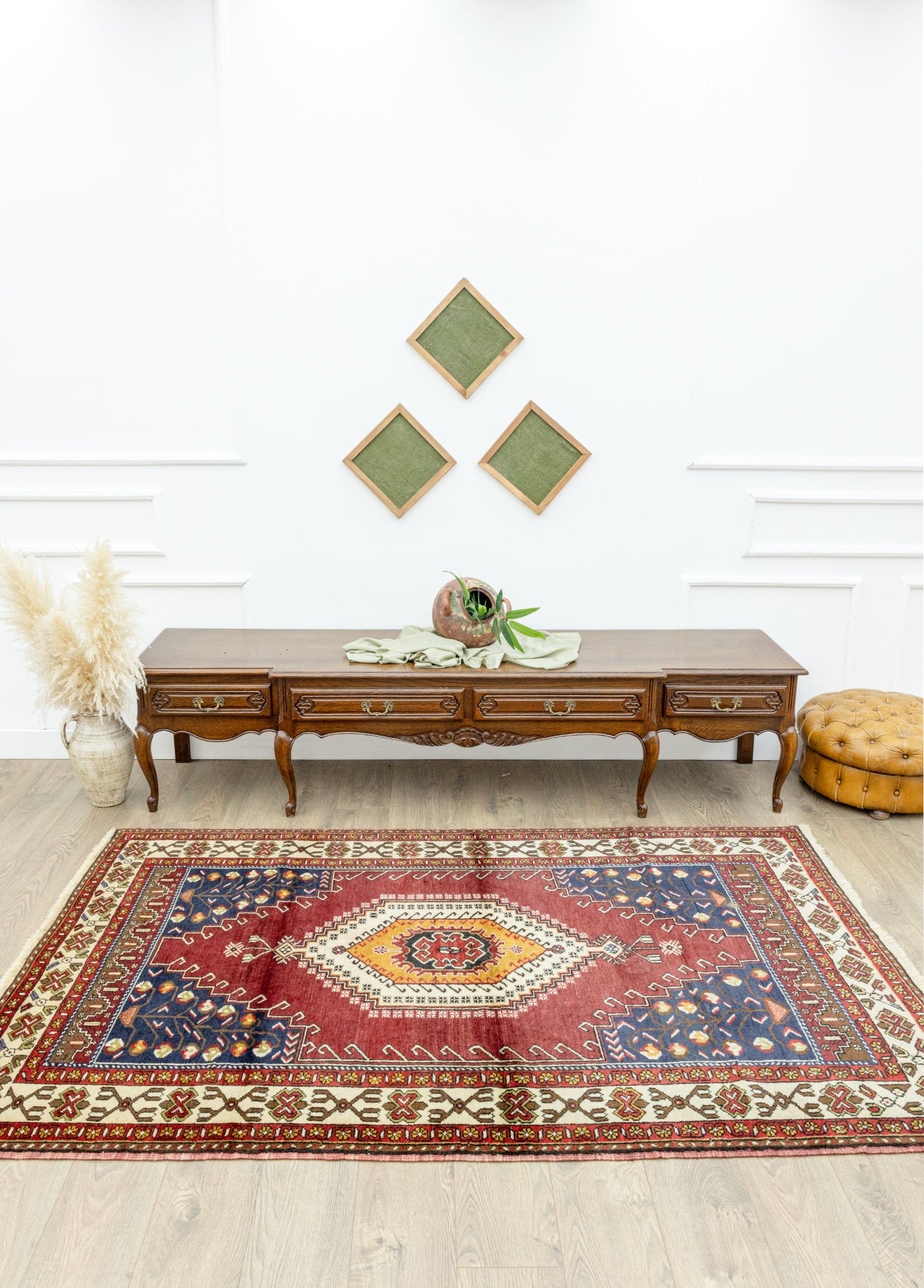 Soho Antiq el dokuma halı ve kilimleri, yaşam alanlarınızanefes katmak için tasarlanmıştır. Bu zarif el dokuma halı, özenle seçilmişyüksek kaliteli yün ipliklerinin ustalıkla bir araya getirilmesiyleoluşturulmuştur. Geleneksel el dokuma teknikleri kullanılarak üretilen halı,evinize sıcaklık ve zarafet katmak amacıyla özel olarak tasarlanmıştır. Renkpaleti, doğanın yumuşak tonlarından ilham alınarak oluşturulmuş olup, bordo ve lacivert renklerinin uyumuyla dikkat çekerken halı içerisinde bulunan diğer renkler ileuyumu yakalamaktadır. Halı, deneyimli el sanatçıları tarafından özenle dokunmuşve Kayseri, Yahyalı yöresine özgü geleneksel tekniklerle 1970’lerde üretilmiştir, bu da halıyakültürel bir derinlik katmaktadır. Halının ebatı 152 x 231 cm olarak ölçülmüştürve bu ölçü, halının farklı yaşam alanlarına kolaylıkla uyum sağlamasını sağlar.Halının kalınlığı ise 1 - 3 cm arasındadır. Estetik değerinin ötesinde, bu eldokuma halı, evinize özgünlük ve geleneksel bir his katma konusunda öneçıkmaktadır.