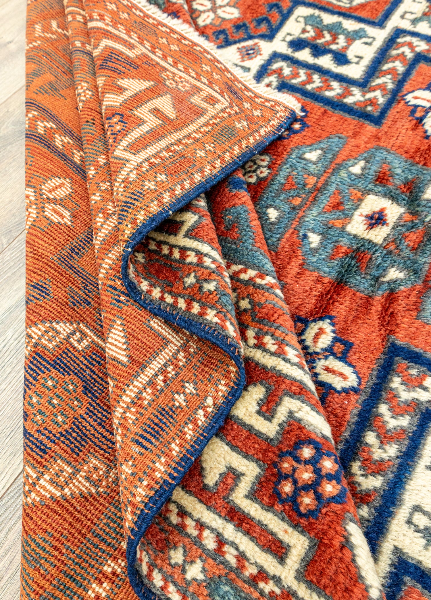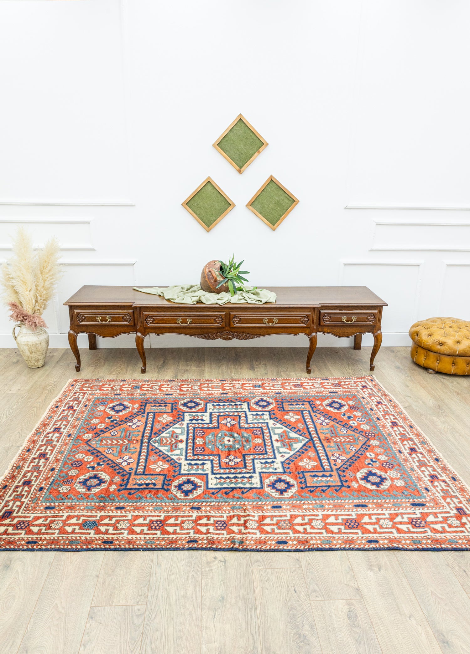 Soho Antiq el dokuma halı ve kilimleri, yaşam alanlarınızanefes katmak için tasarlanmıştır. Bu zarif el dokuma halı, özenle seçilmişyüksek kaliteli yün ipliklerinin ustalıkla bir araya getirilmesiyleoluşturulmuştur. Geleneksel el dokuma teknikleri kullanılarak üretilen halı,evinize sıcaklık ve zarafet katmak amacıyla özel olarak tasarlanmıştır. Renkpaleti, doğanın yumuşak tonlarından ilham alınarak oluşturulmuş olup, kırmızı ve mavi renklerinin uyumuyla dikkat çekerken halı içerisinde bulunan diğer renkler ileuyumu yakalamaktadır. Halı, deneyimli el sanatçıları tarafından özenle dokunmuşve Bergama yöresine özgü geleneksel tekniklerle 1930’larda üretilmiştir, bu da halıyakültürel bir derinlik katmaktadır. Halının ebatı 168 x 222 cm olarak ölçülmüştürve bu ölçü, halının farklı yaşam alanlarına kolaylıkla uyum sağlamasını sağlar.Halının kalınlığı ise 1 - 3 cm arasındadır. Estetik değerinin ötesinde, bu eldokuma halı, evinize özgünlük ve geleneksel bir his katma konusunda öneçıkmaktadır.