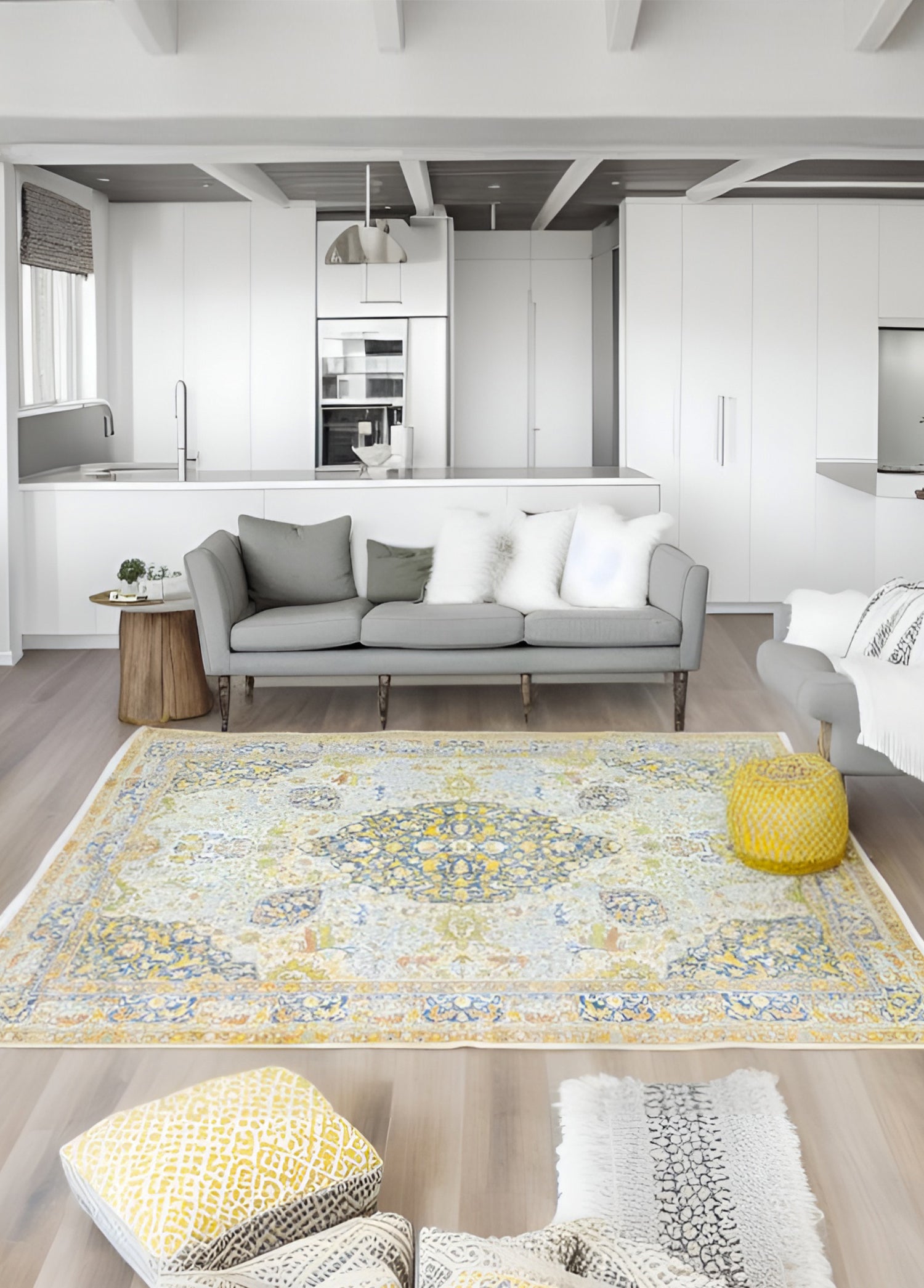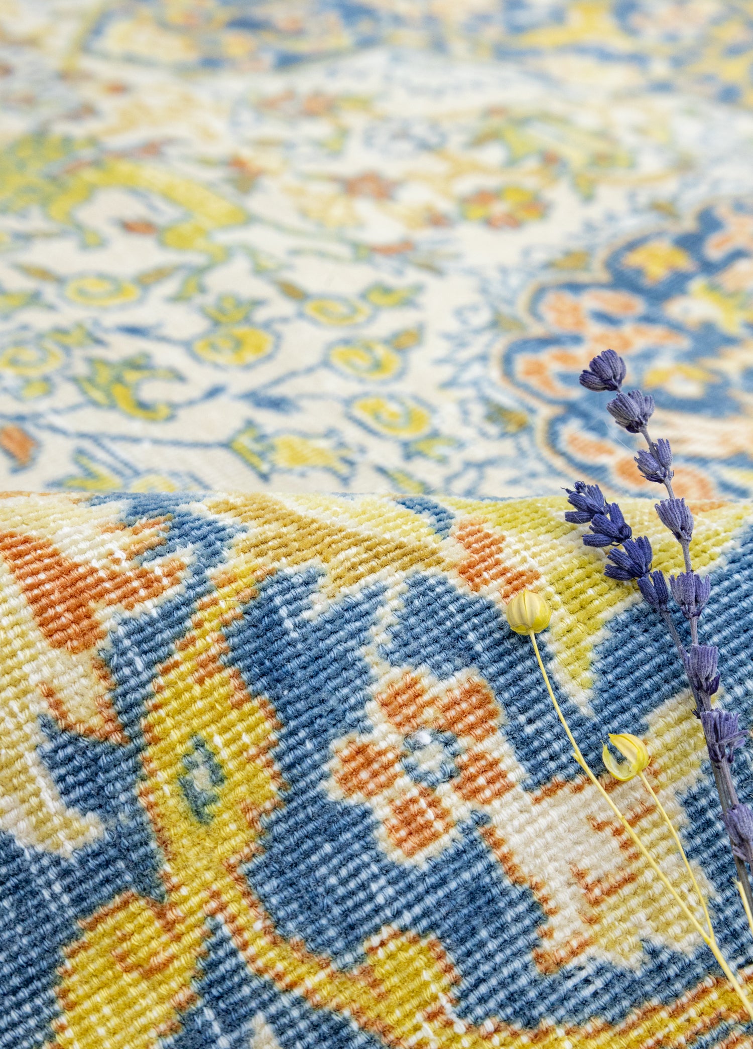 Soho Antiq halımodellerimiz, lüks ve estetik tasarımlarıyla yaşam alanınıza yeni bir atmosferkazandırmak için mükemmel seçenekler sunuyor. Uzun ömürlü olan halılarımız,tamamen doğal yün ve pamuk kullanılarak el dokuma tekniğiyle tasarlanmaktadır.Bu özel halılar, uzun yıllar boyunca kalitesini koruyan ustalıkla üretilir ve 1- 3 cm arasında değişen bir kalınlığa sahiptir. Boyutları ise 217 x 316 cm'dir.Halılarımızın ana rengi genellikle krem olup, çeşitli renk seçenekleri debulunmaktadır. Ayrıca, halı tasarımında mavi, sarı ve diğer birkaç renk ustacakullanılmıştır.