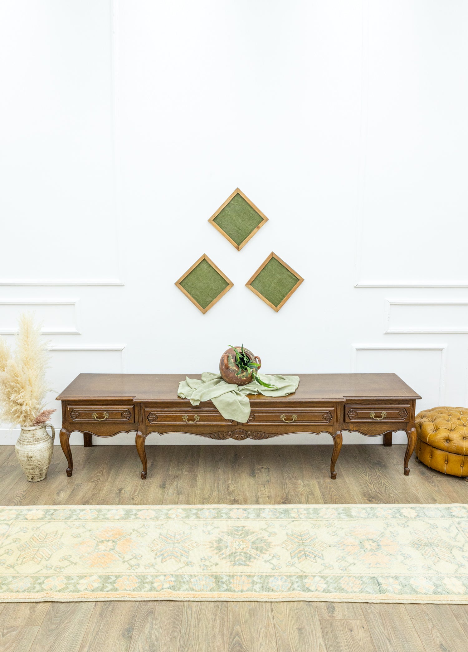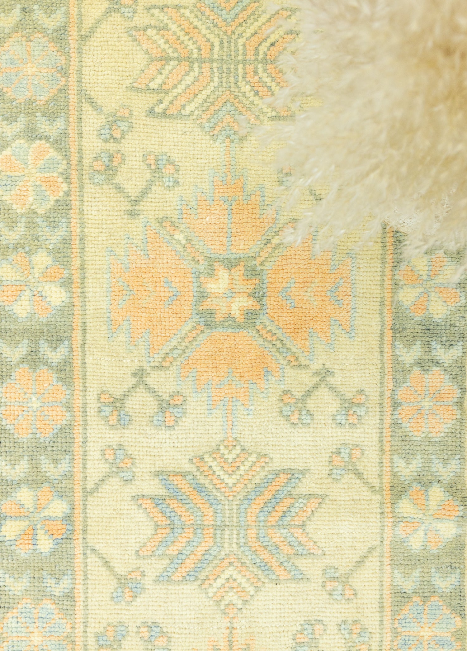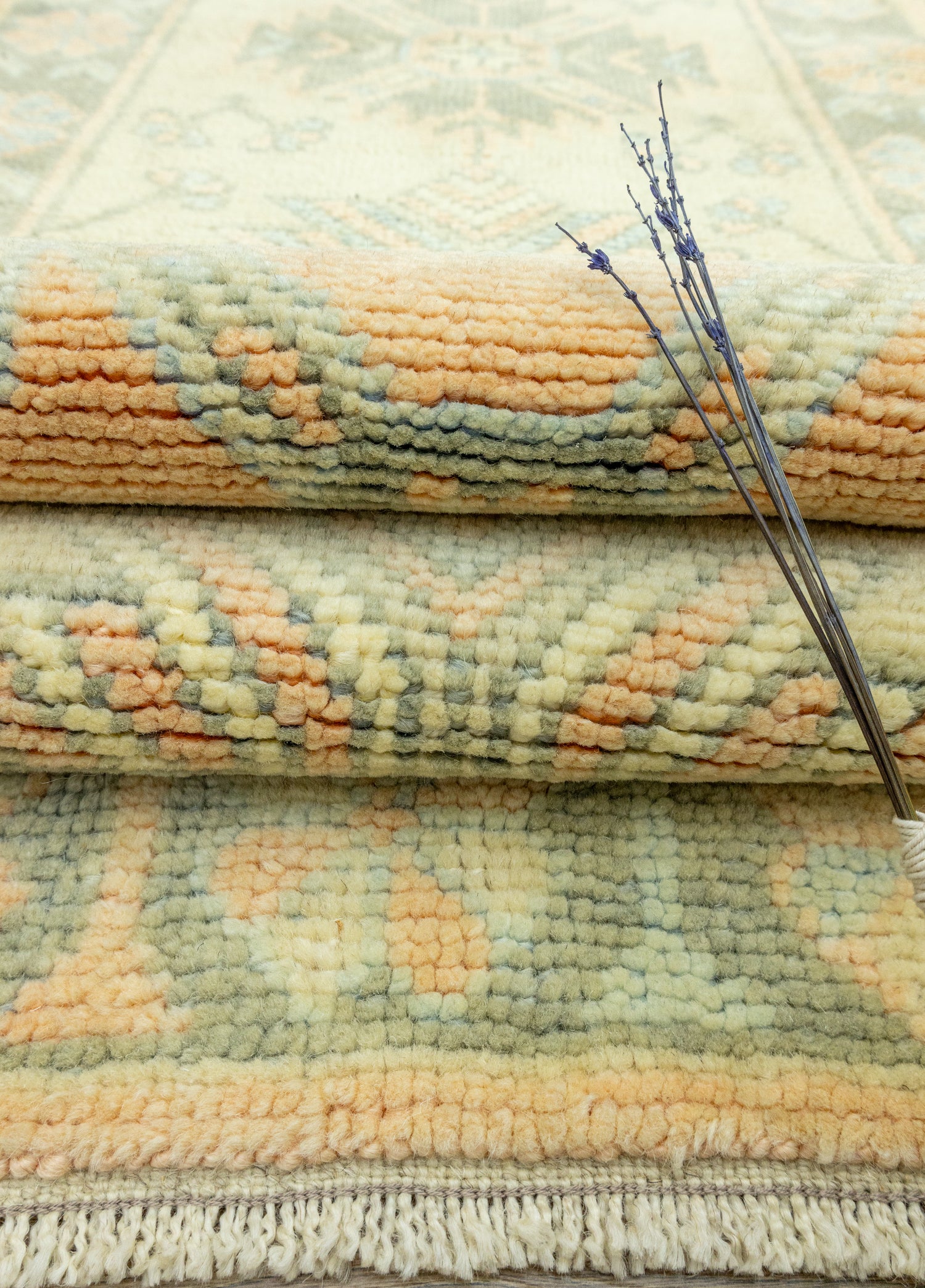 Zamanda yolculuğaçıkaracak, geleneksel halı modelleri Soho Antiq ile sizlerle! Tamamen doğal yünile işlenen bu yolluk halı modeli ayrıca el dokuma ile hazırlanmıştır. Göz alıcıtasarımında bulunan ana renk yeşil tonlarıdır. Ayrıca halı içerisinde bulunan diğerrenkler pastel turuncu ve çok renklidir. Halı modelinde sizi etkileyen o tasarımın kaynağı, Uşakyöresinden gelen geleneksel dokunuşlardandır. Öte yandan Ege Bölgesi’nin karakteristiközelliklerini bu halı modelinde bulmak mümkün. Halının boyu 79 x 270 cm’dir vekalınlığı 1-3 cm arasındadır. Soho Antiq, halı modelleri ile yaşam alanınızafarklılık katar.