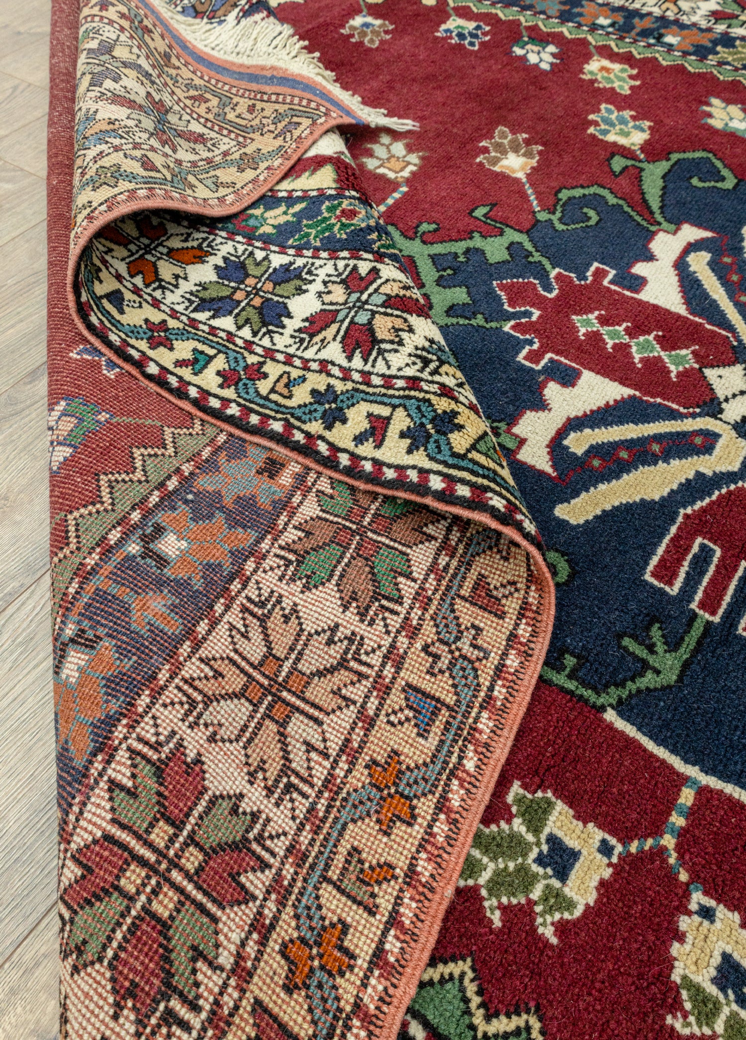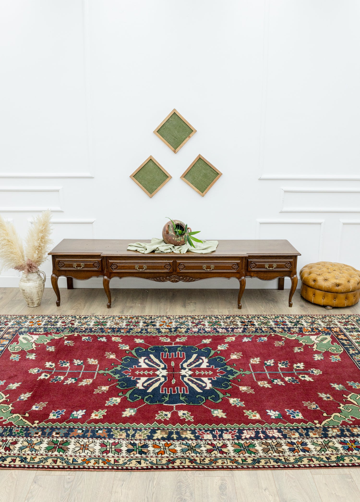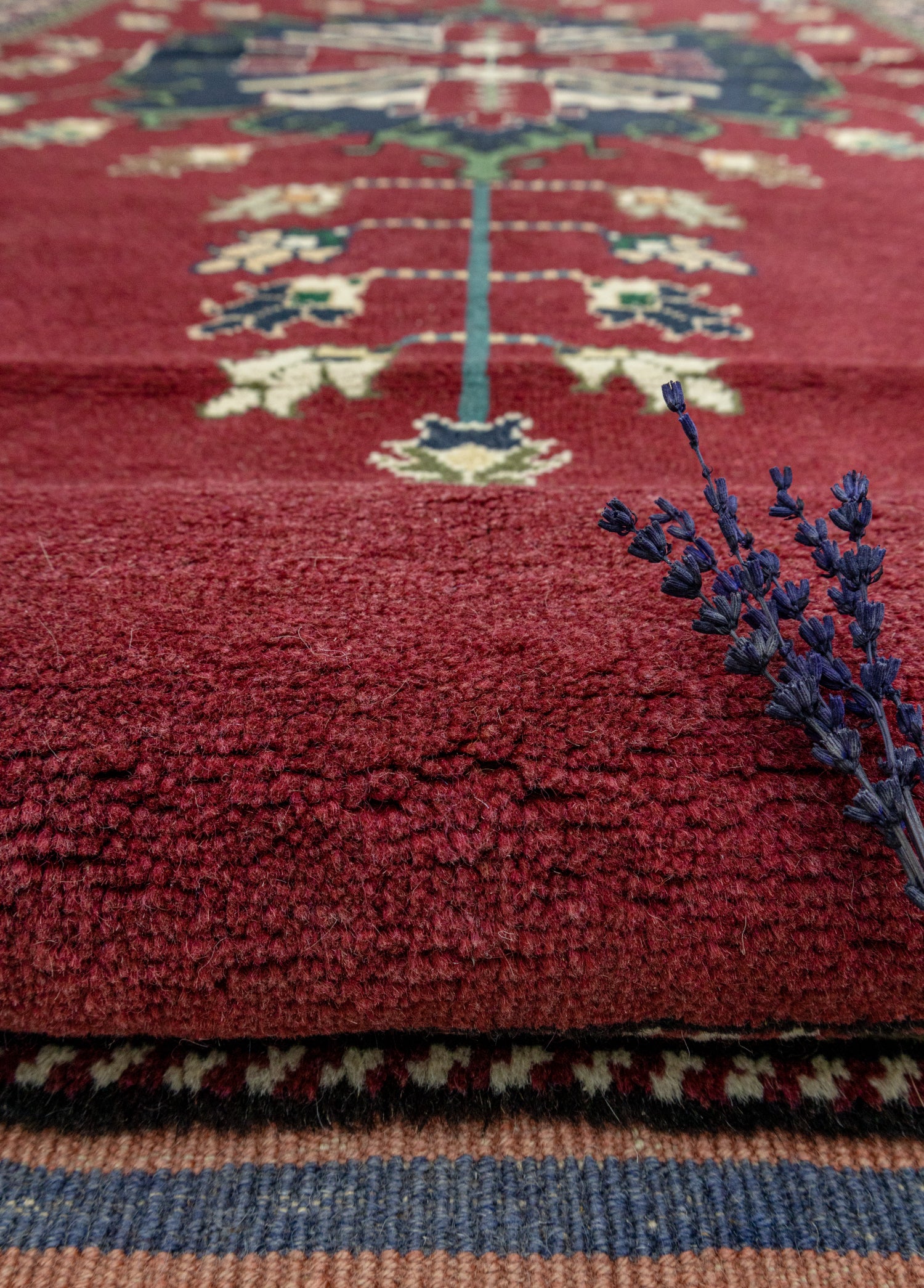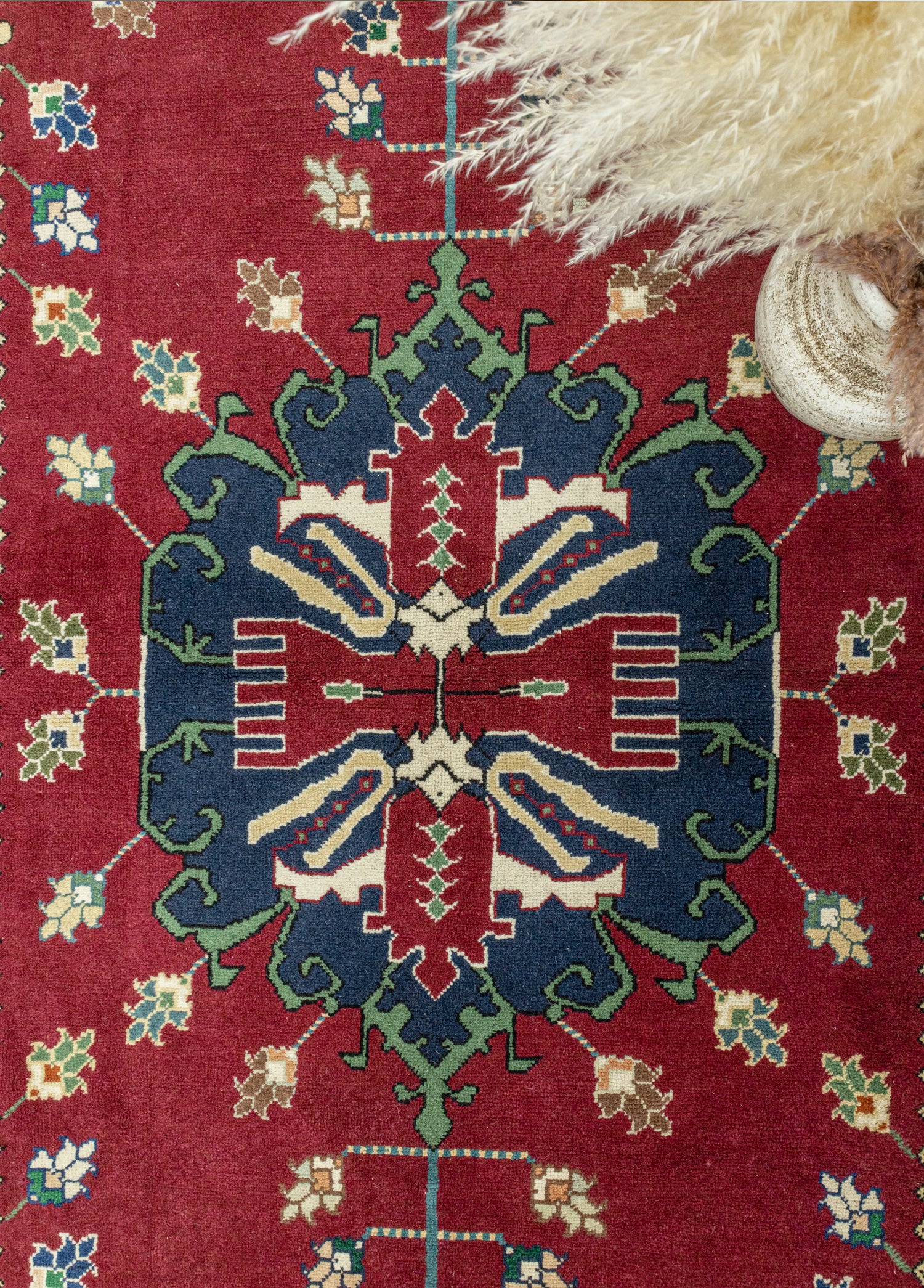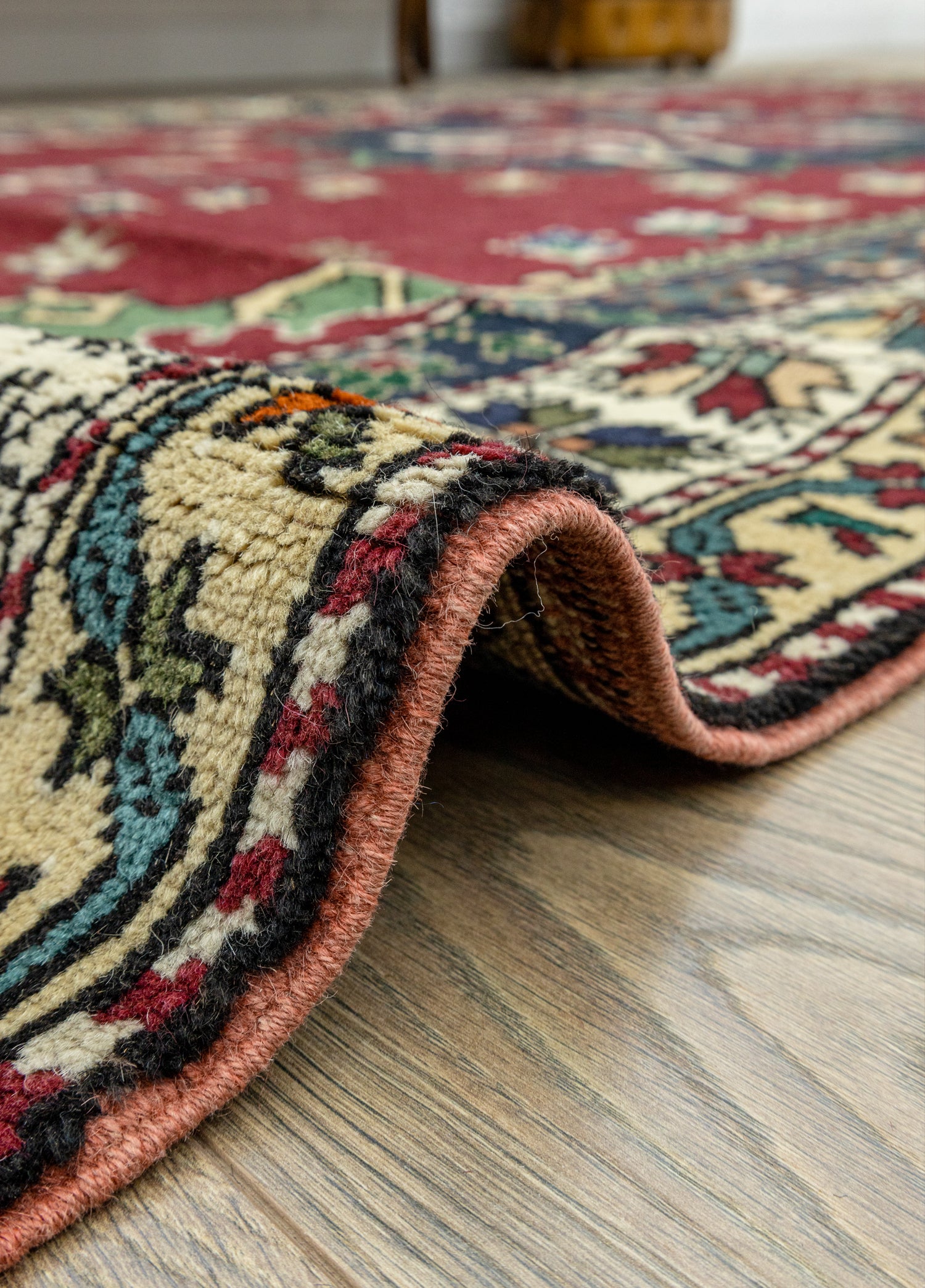 Soho Antiq el dokuma halı ve kilimleri, yaşam alanlarınızanefes katmak için tasarlanmıştır. Bu zarif el dokuma halı, özenle seçilmişyüksek kaliteli yün ipliklerinin ustalıkla bir araya getirilmesiyleoluşturulmuştur. Geleneksel el dokuma teknikleri kullanılarak üretilen halı,evinize sıcaklık ve zarafet katmak amacıyla özel olarak tasarlanmıştır. Renkpaleti, doğanın yumuşak tonlarından ilham alınarak oluşturulmuş olup, kırmızı ile krem renklerinin uyumuyla dikkat çekerken halı içerisinde bulunan diğer renkler ileuyumu yakalamaktadır. Halı, deneyimli el sanatçıları tarafından özenle dokunmuşve Afyon, Dazkırı yöresine özgü geleneksel tekniklerle 1980’lerde üretilmiştir, bu da halıyakültürel bir derinlik katmaktadır. Halının ebatı 183 x 330 cm olarak ölçülmüştürve bu ölçü, halının farklı yaşam alanlarına kolaylıkla uyum sağlamasını sağlar.Halının kalınlığı ise 1 - 3 cm arasındadır. Estetik değerinin ötesinde, bu eldokuma halı, evinize özgünlük ve geleneksel bir his katma konusunda öneçıkmaktadır.