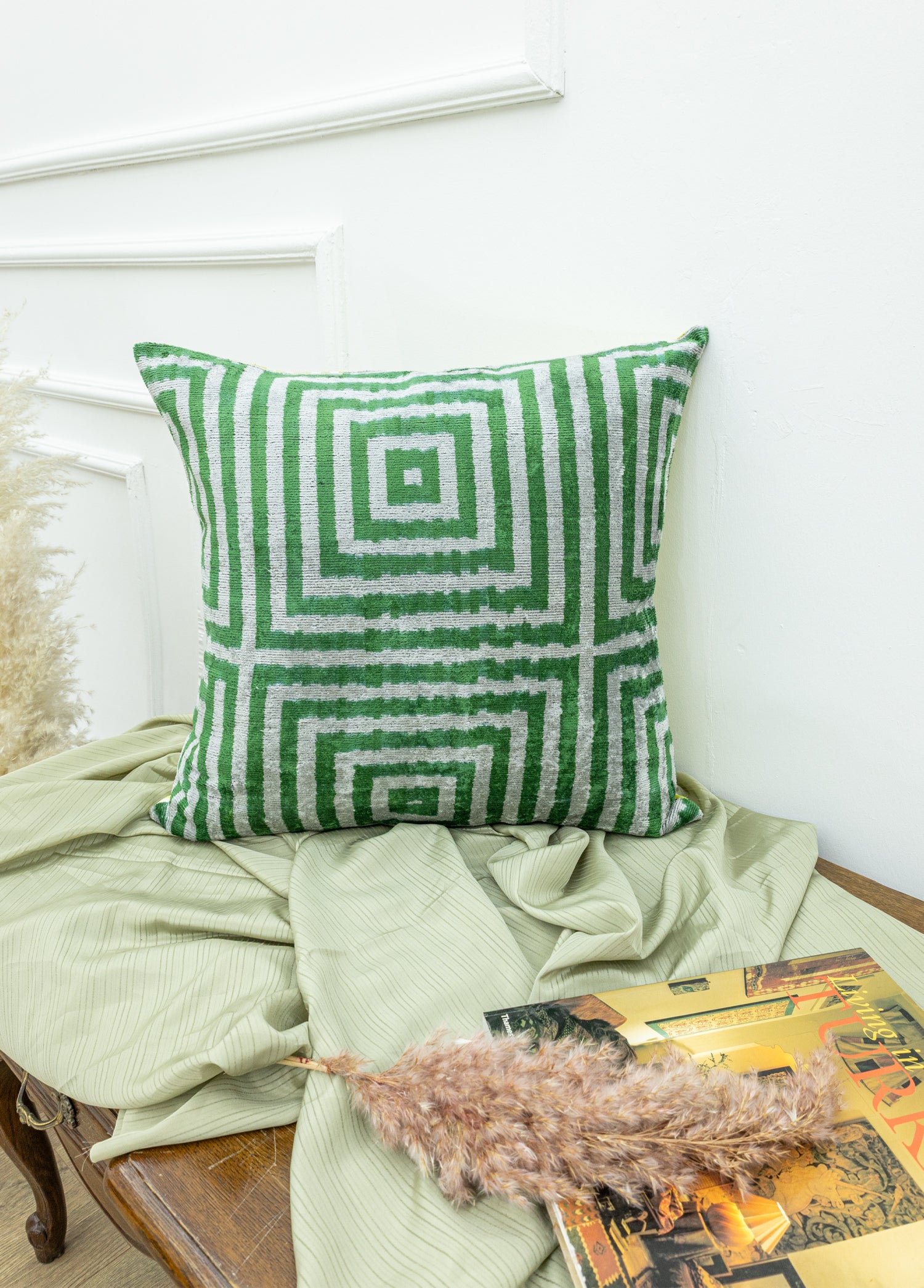 İkat kadife yastıklar, ikat desenleme tekniğiyle üretilen ve kadife kumaş kullanılarak yapılan yastıklardır. Bu yastıklar, hem ikat deseninin görsel çekiciliğini taşırken hem de kadife kumaşın yumuşaklık ve lüks hissini sunar.