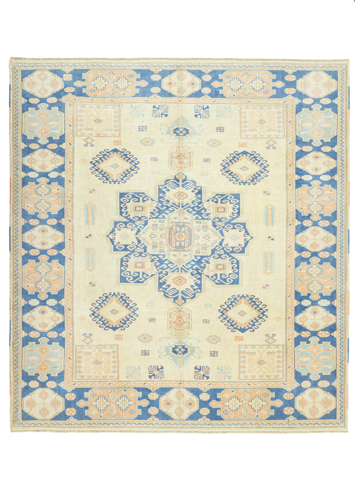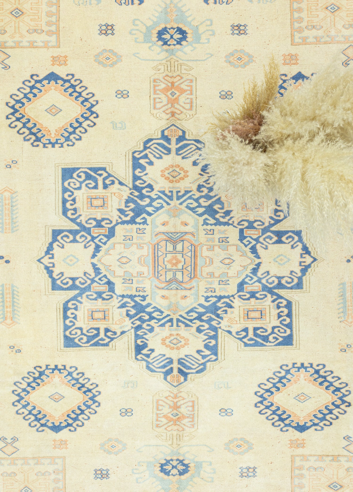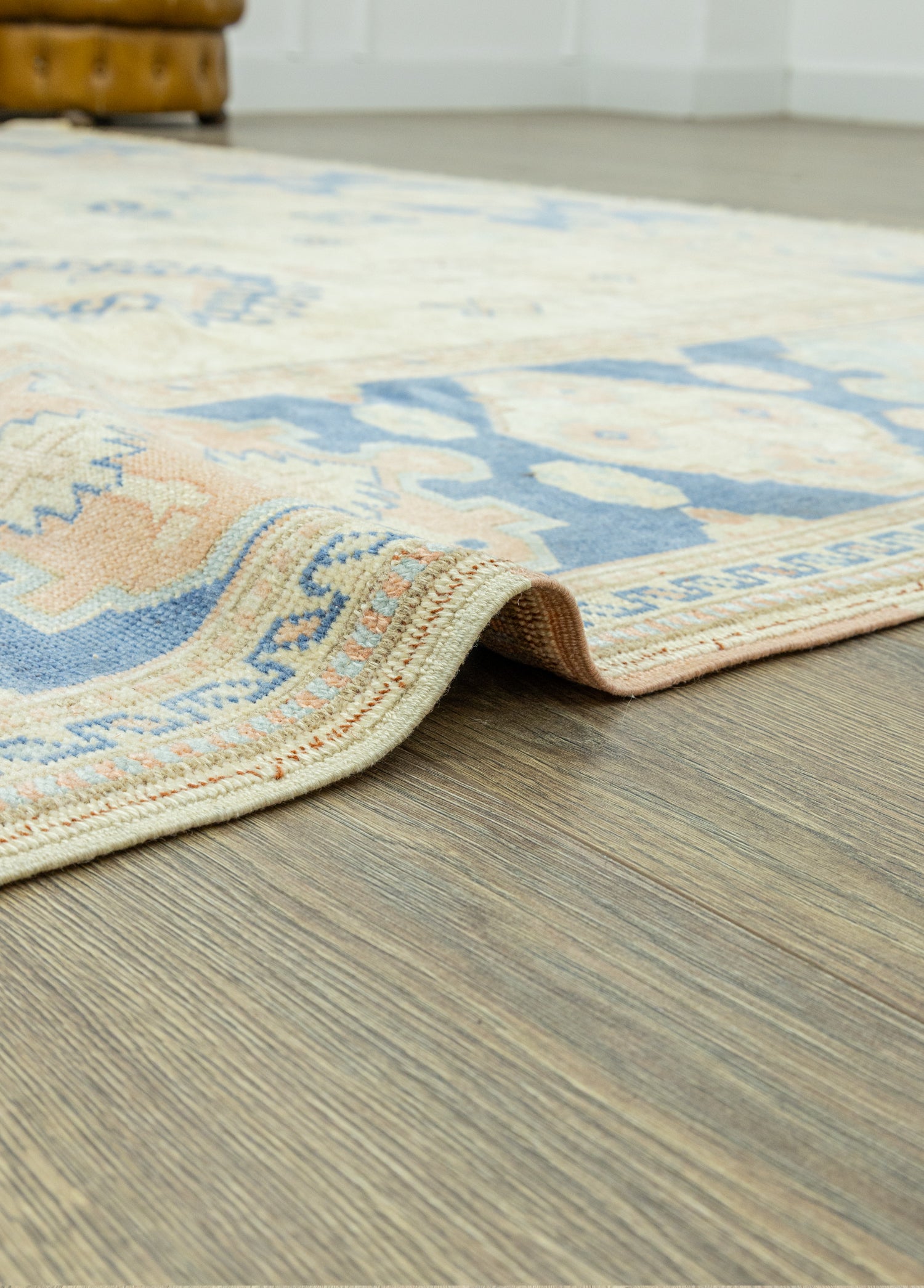 Soho Antiq el dokuma halı ve kilimleri, yaşam alanlarınıza nefes katmak için tasarlanmıştır. Bu zarif el dokuma halı, özenle seçilmiş yüksek kaliteli yün ipliklerinin ustalıkla bir araya getirilmesiyle oluşturulmuştur. Geleneksel el dokuma teknikleri kullanılarak üretilen halı, evinize sıcaklık ve zarafet katmak amacıyla özel olarak tasarlanmıştır. Renk paleti, doğanın yumuşak tonlarından ilham alınarak oluşturulmuş olup, krem ile mavi renklerinin uyumuyla dikkat çekerken halı içerisinde bulunan diğer renkler ile uyumu yakalamaktadır. Halı, deneyimli el sanatçıları tarafından özenle dokunmuş ve Ege yöresine özgü geleneksel tekniklerle 1970’lerde üretilmiştir, bu da halıya kültürel bir derinlik katmaktadır. Halının ebatı 265 x 297 cm olarak ölçülmüştür ve bu ölçü, halının farklı yaşam alanlarına kolaylıkla uyum sağlamasını sağlar. Halının kalınlığı ise 1 - 3 cm arasındadır. Estetik değerinin ötesinde, bu el dokuma halı, evinize özgünlük ve geleneksel bir his katma konusunda öne çıkmaktadır.