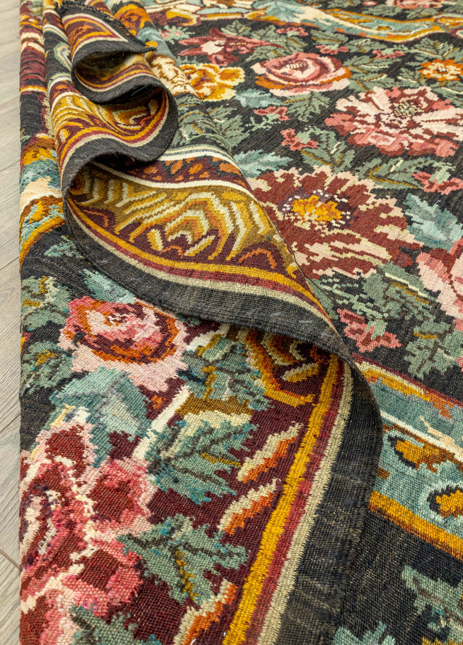 Bu kilim Karabağ kilim dokumatekniği ile hazırlanmıştır. Karabağ kilim dokuma tekniği, düz dokuma tekniğiolarak bilinir. Bu tekniğe göre, dikey iplikler çözgü olarak adlandırılırken,yatay iplikler atkı olarak adlandırılır. Ağır duruşlu ancak hafifyapıda olan Karabağ kilimi bu işlevsel özelliği ile de sıklıkla tercihedilir. Dantel gibi özenle işlenen Karabağ kilim modelleri işlendiği yöre vedesenlere göre ön plana çıkar.