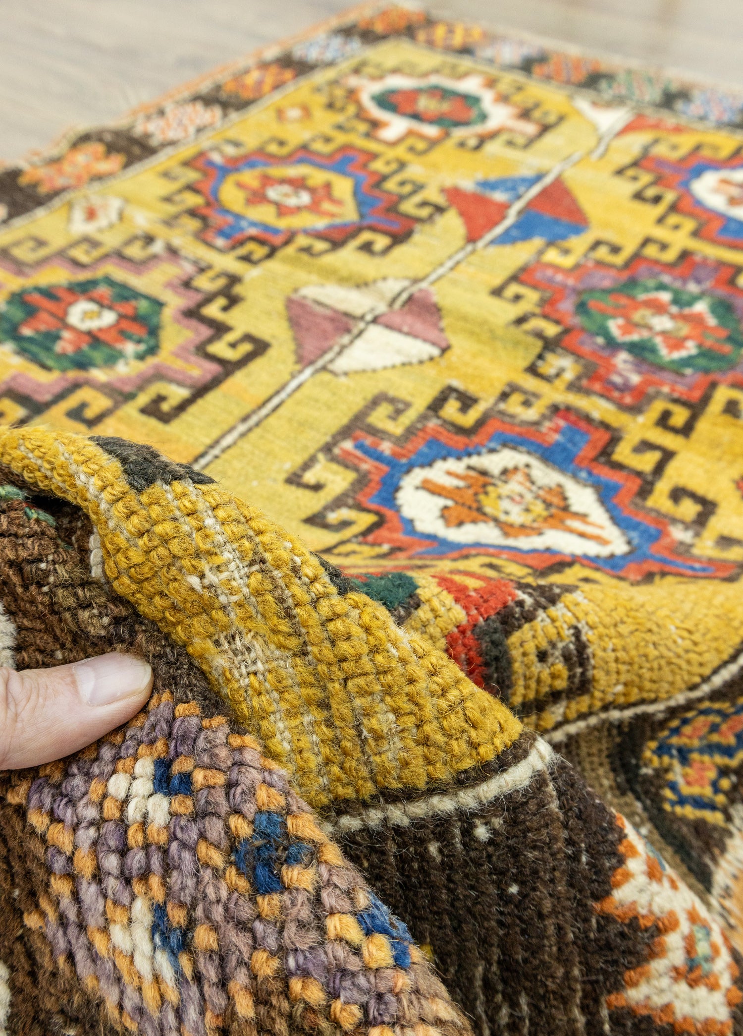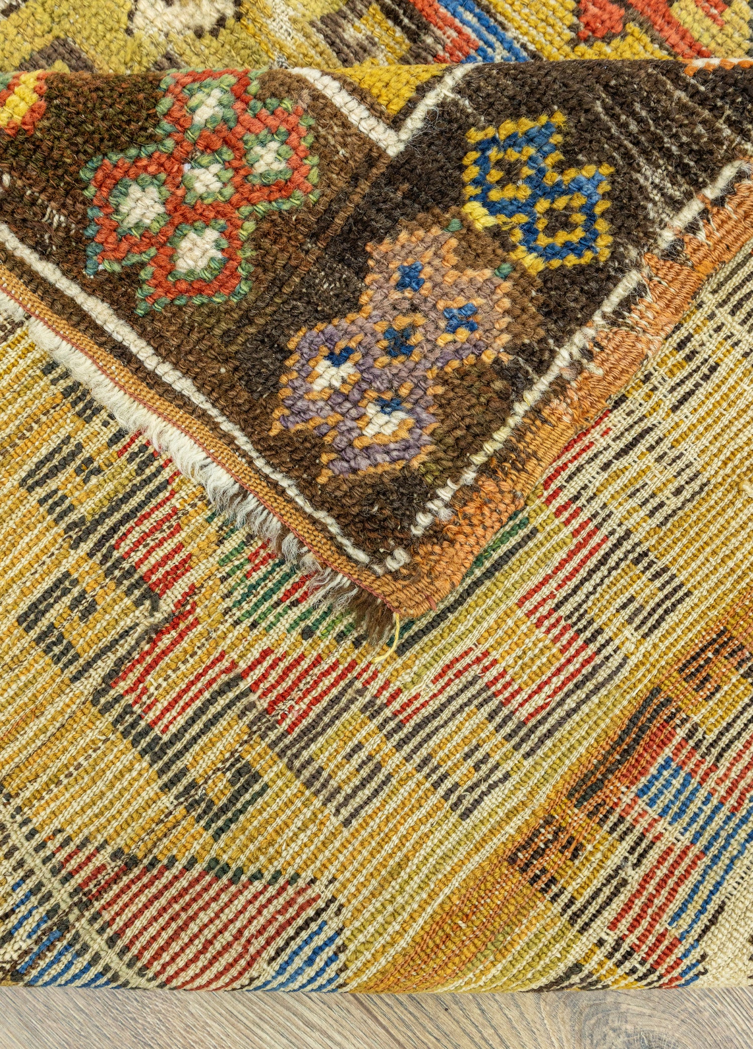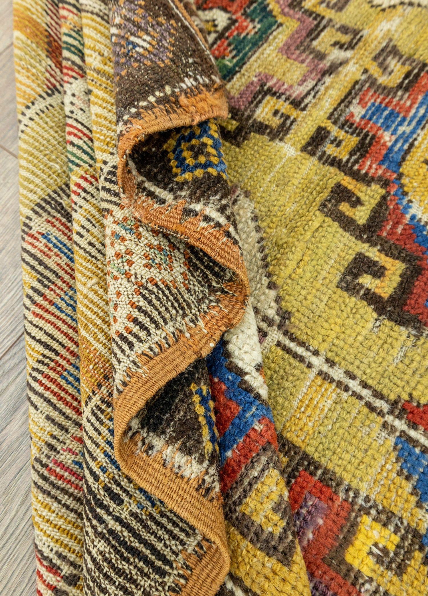 Orta iyi kondisyonlu antika halının desenleri ilkel desenler içermektedir. Dokumasında organik yün ve renklendirilmesinde doğal kök boyalar kullanılmıştır. Kalınlığı ise 10 - 30 mm arasındadır.
