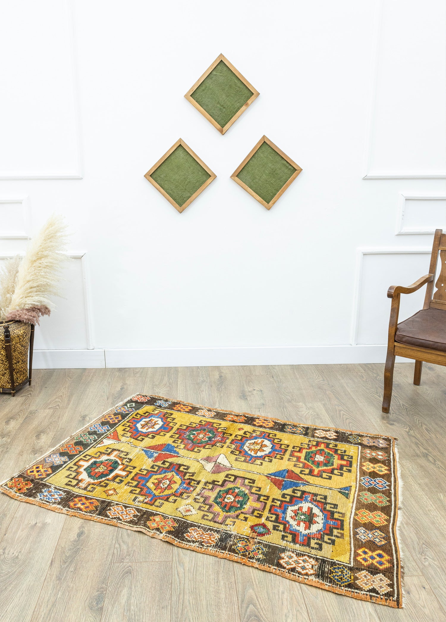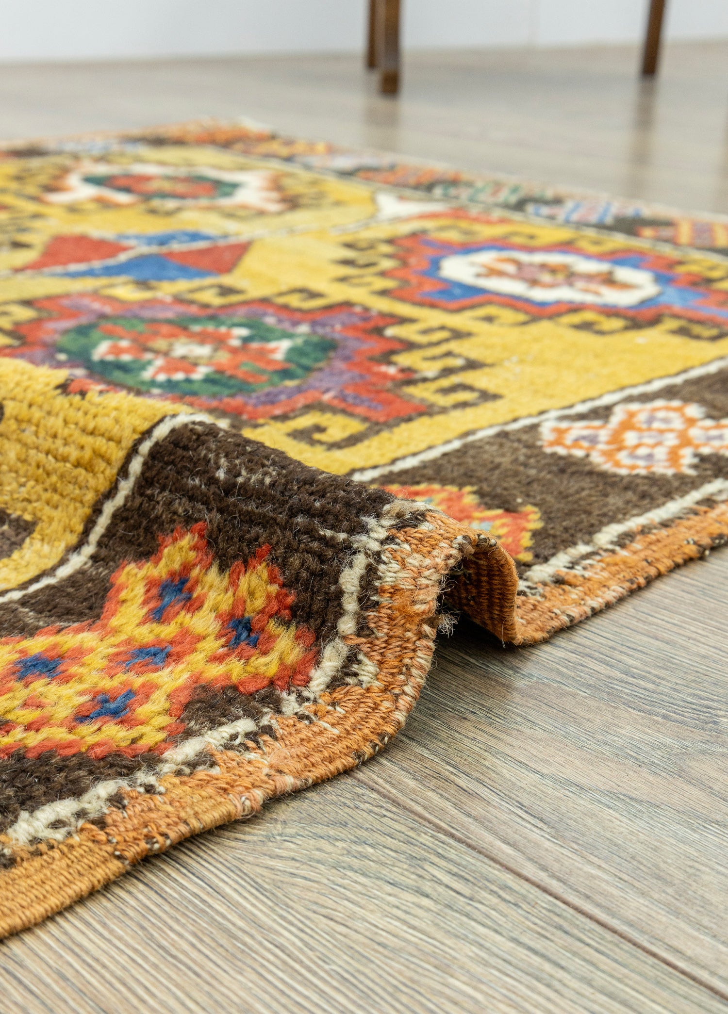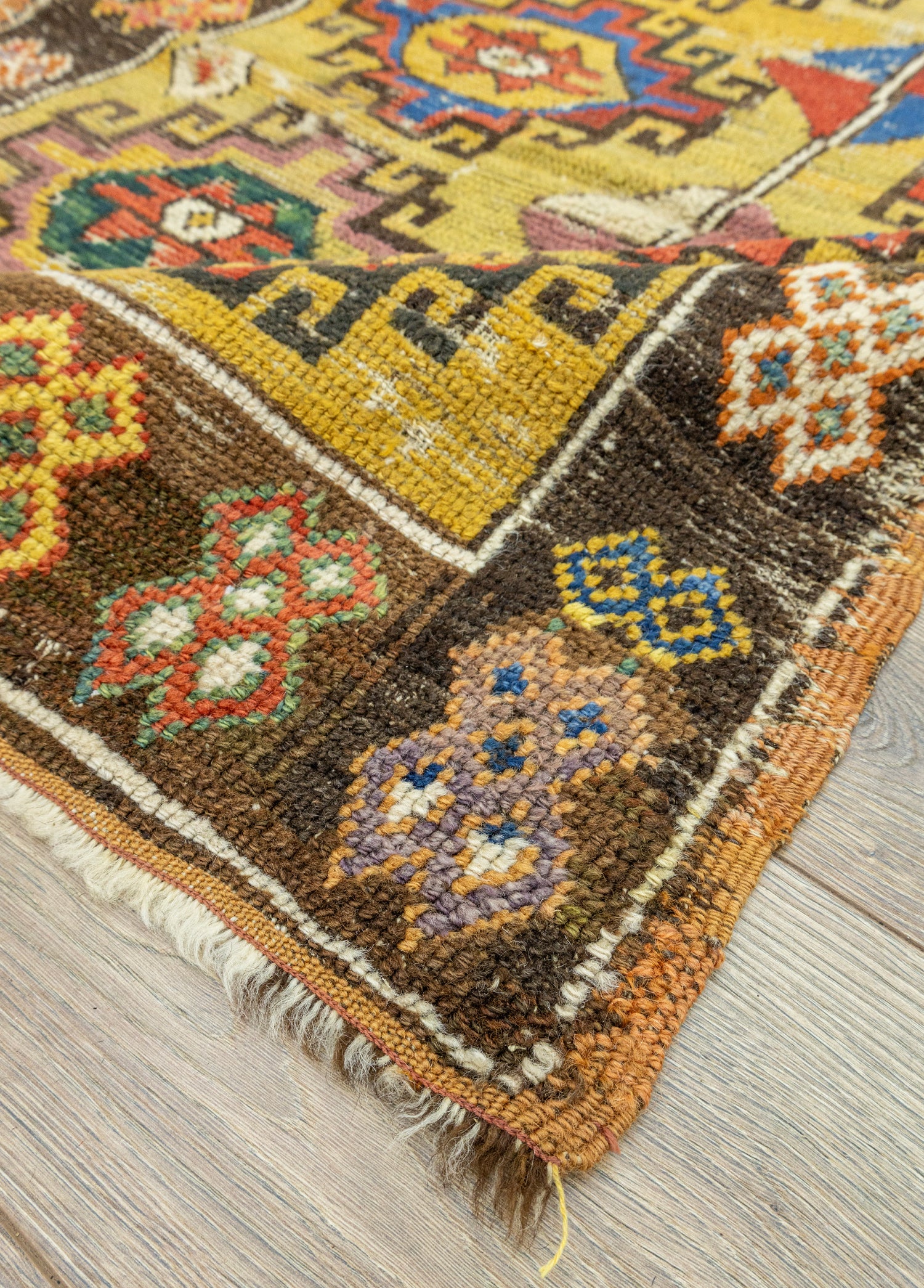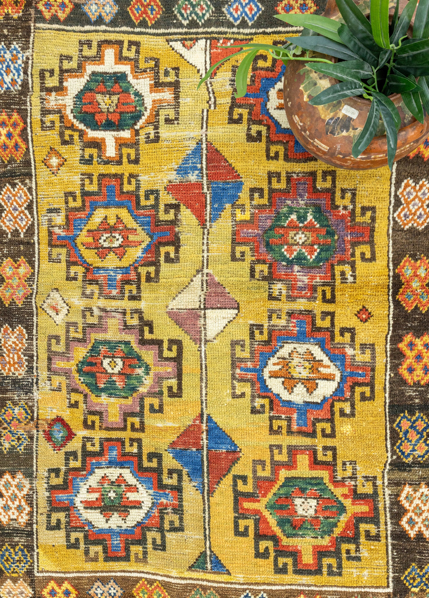 Orta iyi kondisyonlu antika halının desenleri ilkel desenler içermektedir. Dokumasında organik yün ve renklendirilmesinde doğal kök boyalar kullanılmıştır. Kalınlığı ise 10 - 30 mm arasındadır.