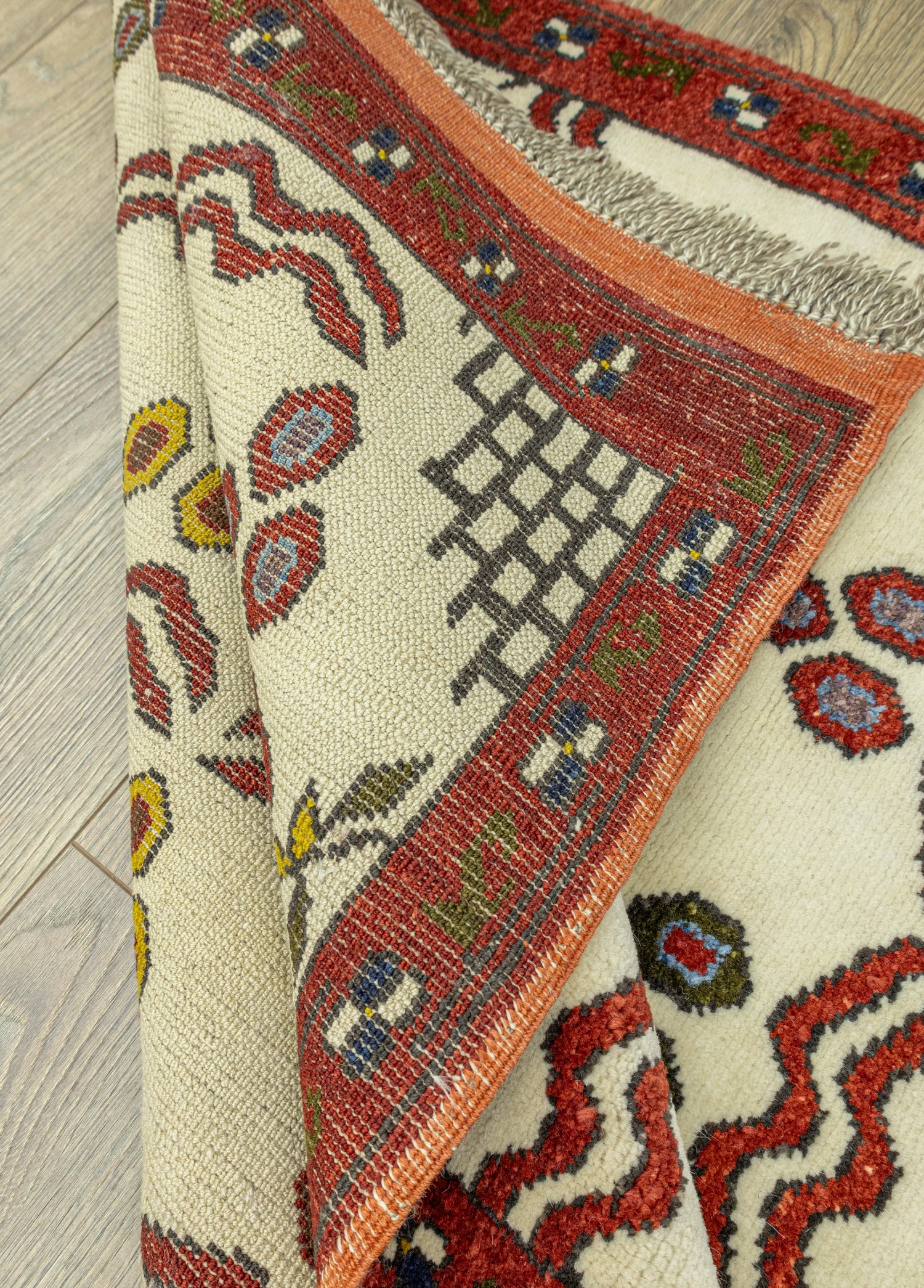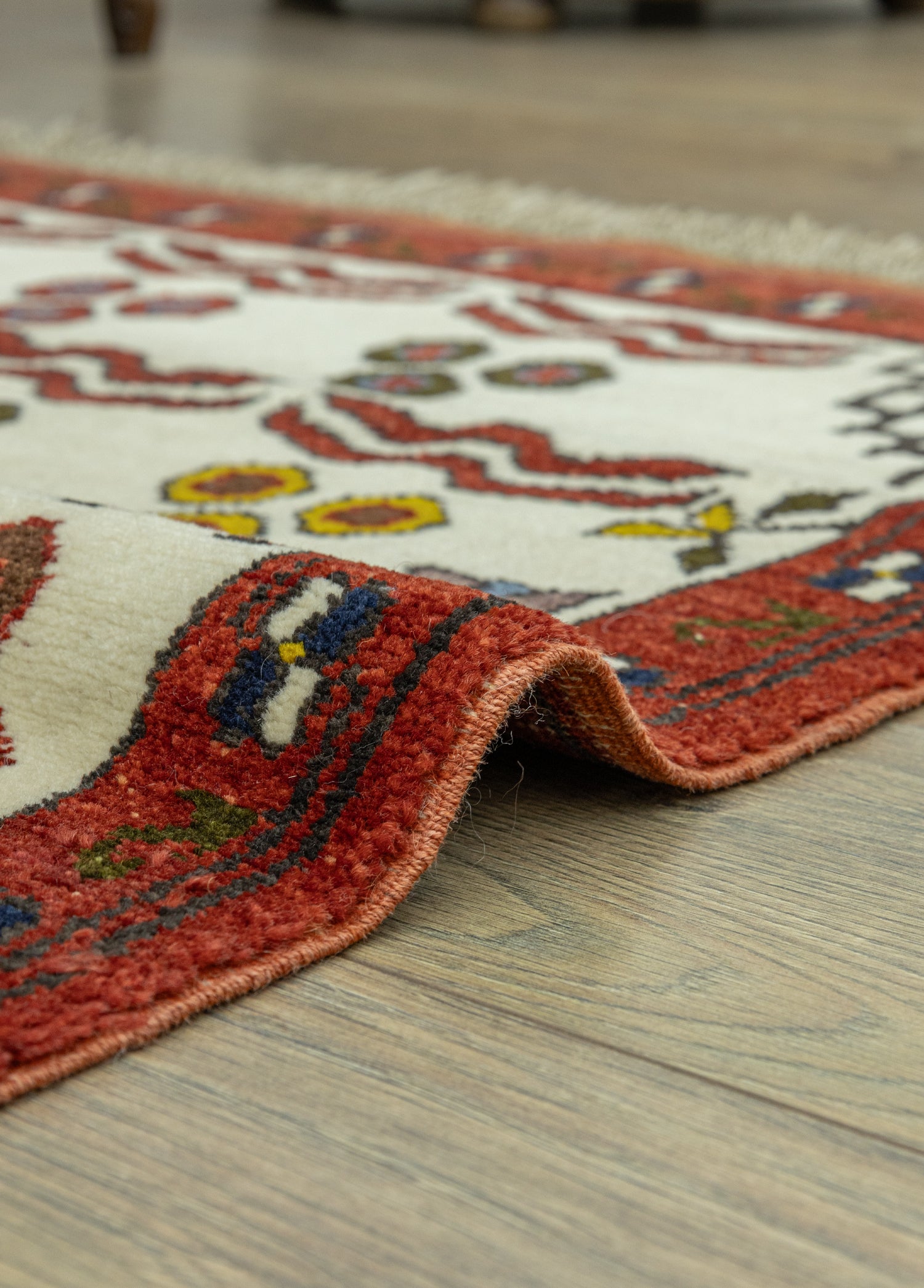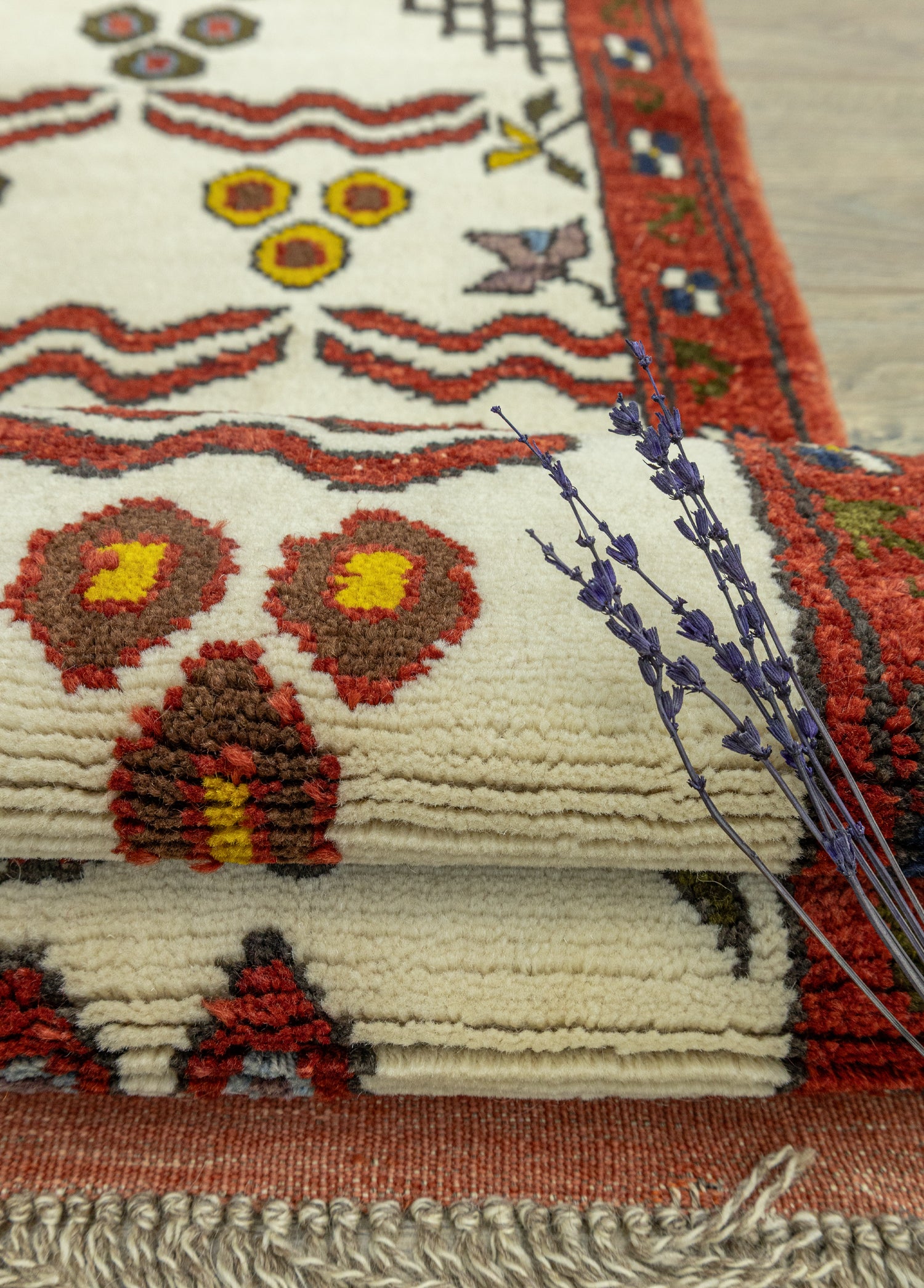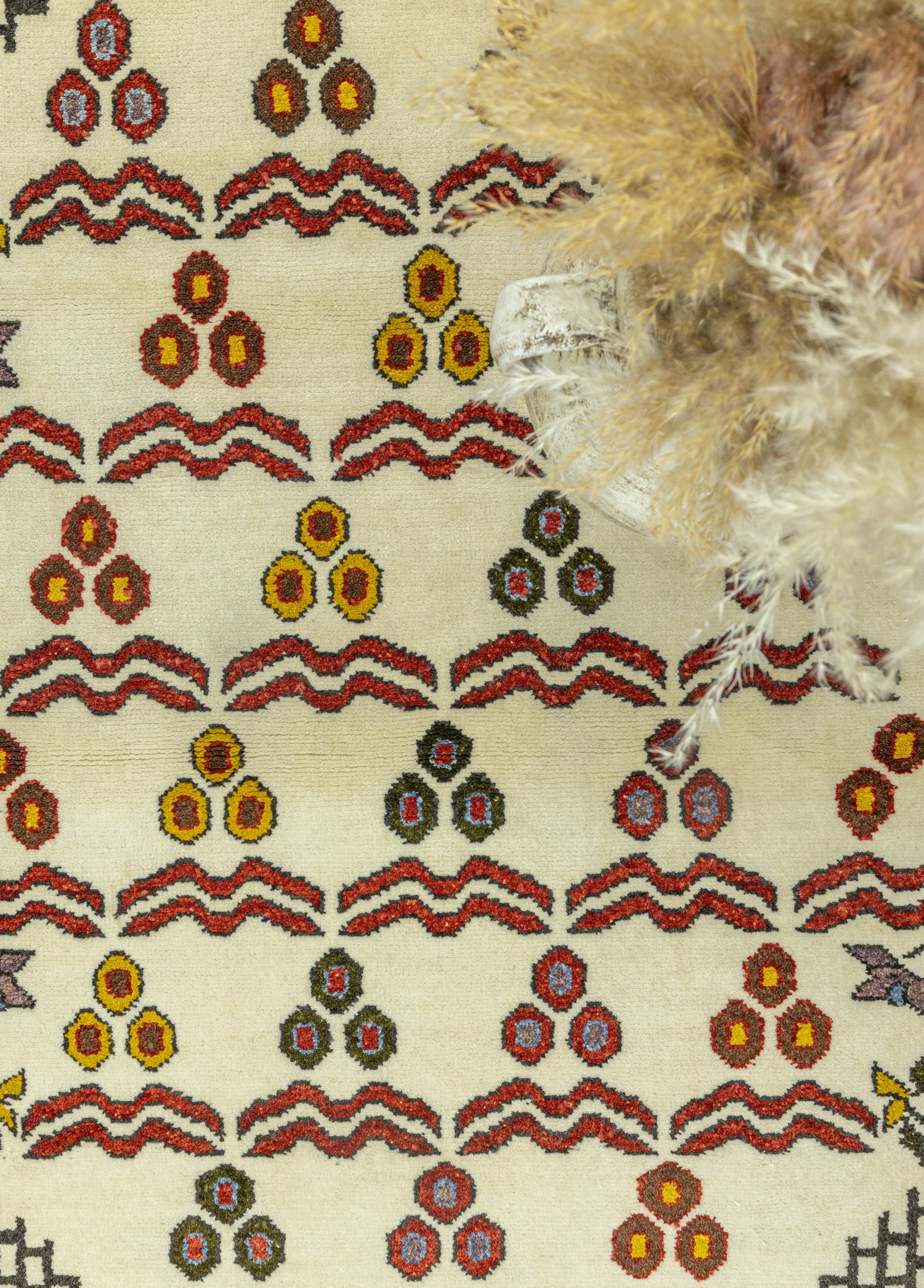 Yaşam alanınızafarklılık katacak olan Soho Antiq geleneksel halı modellerimizle karşınızdayız!Özel olarak tasarlanan bu halılar, her türlü alana uyum sağlamak üzere eldokuma tekniği ile özenle hazırlanmıştır ve tamamen doğal yünden oluşmaktadır.Bu da halıları diğerlerinden farklı kılan birçok özellikten sadece birtanesidir. Doğal kök boyalar ile renklendirilmiş halının ana rengi krem olan çintemani modelimizde, kırmızı ve sarı gibi yan renklerbulunmaktadır. Bu uyumlu renk kombinasyonlarıyla estetik bir halıya sahipolabilirsiniz.