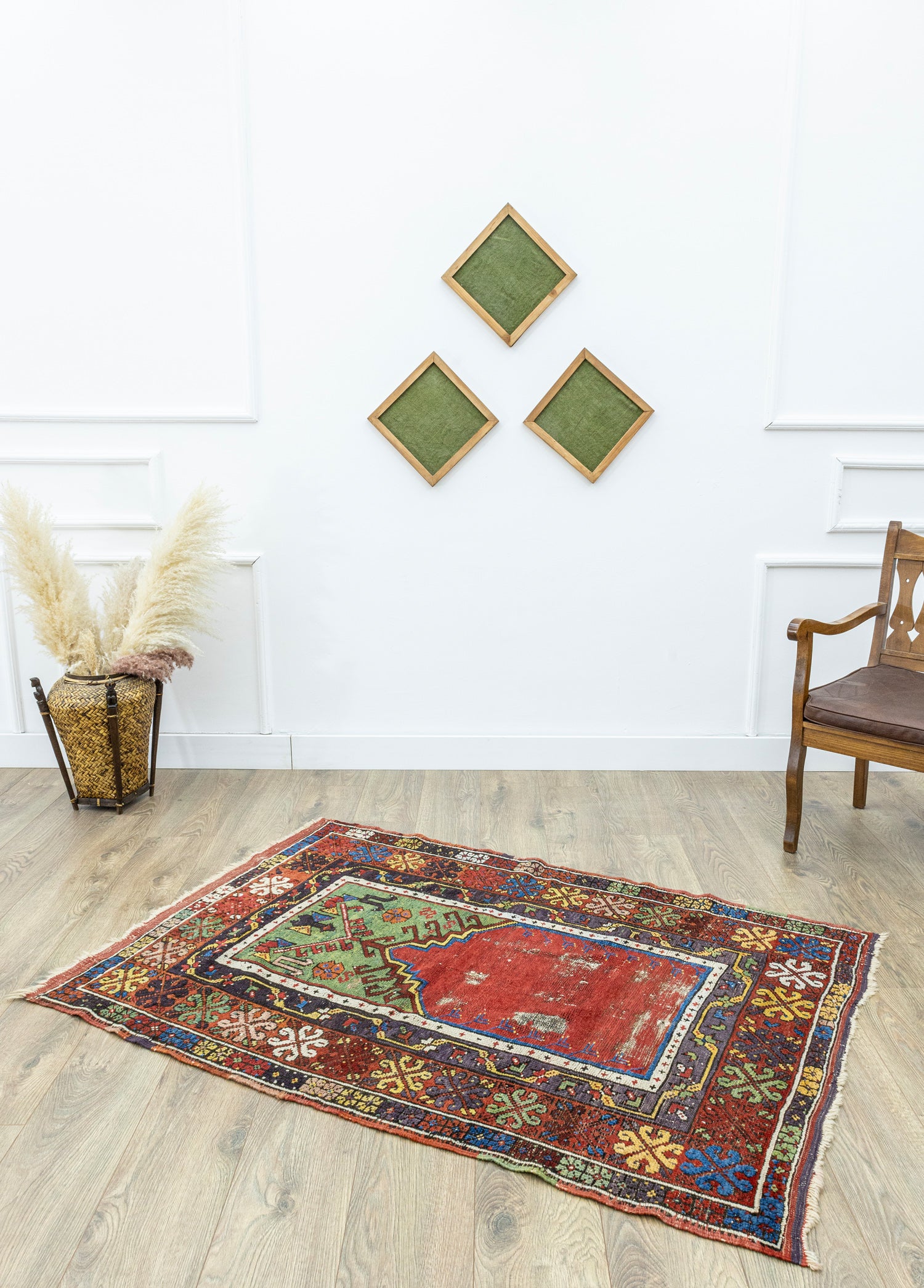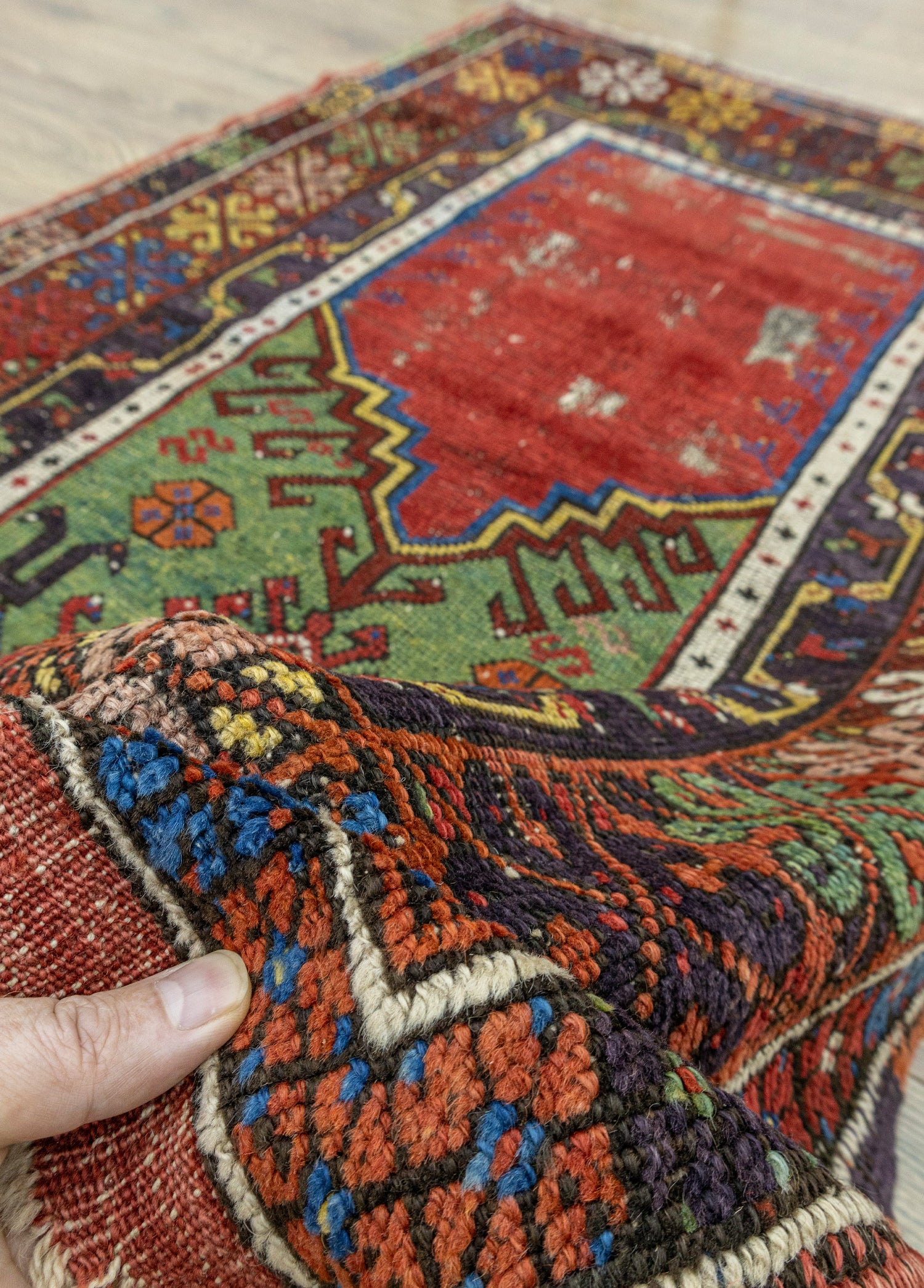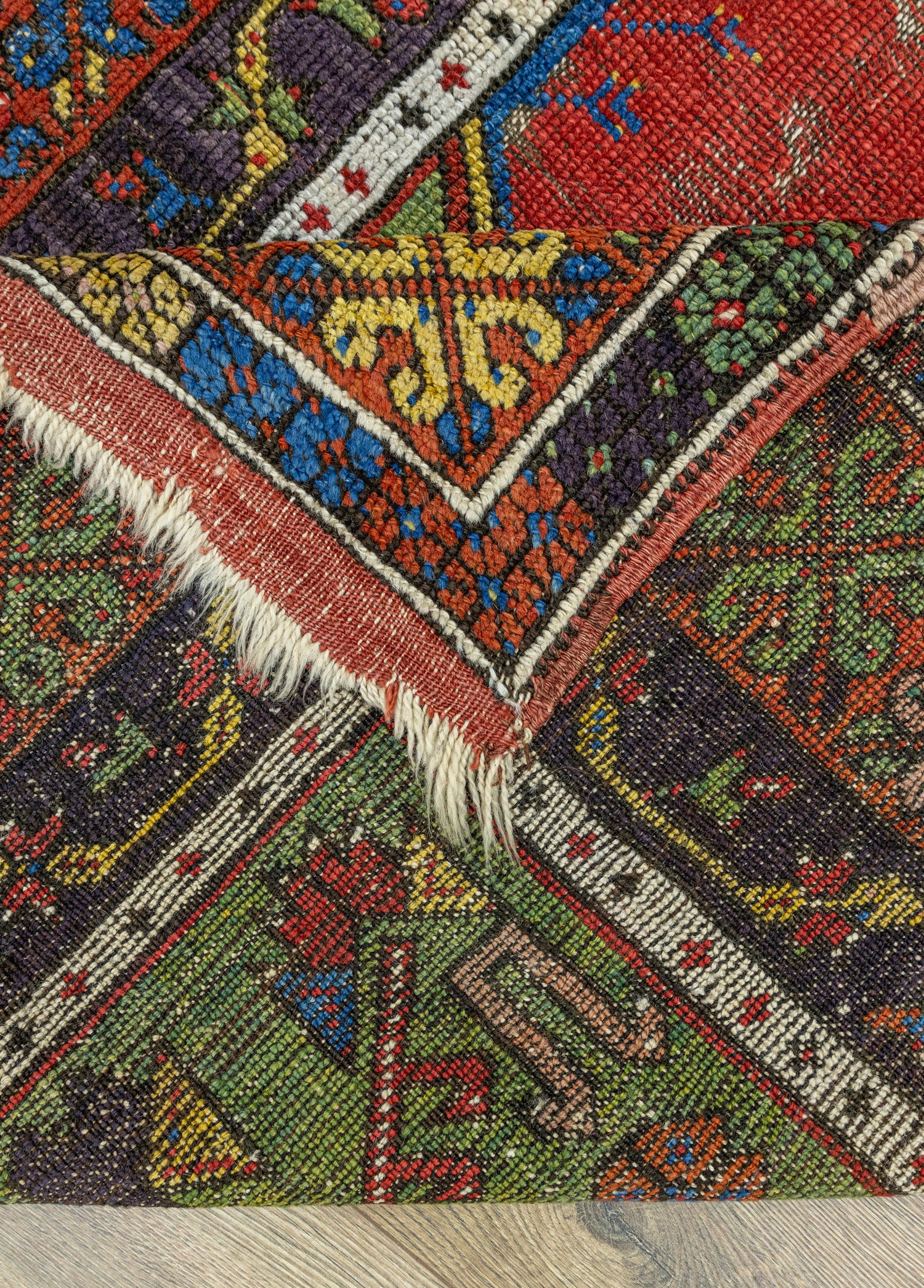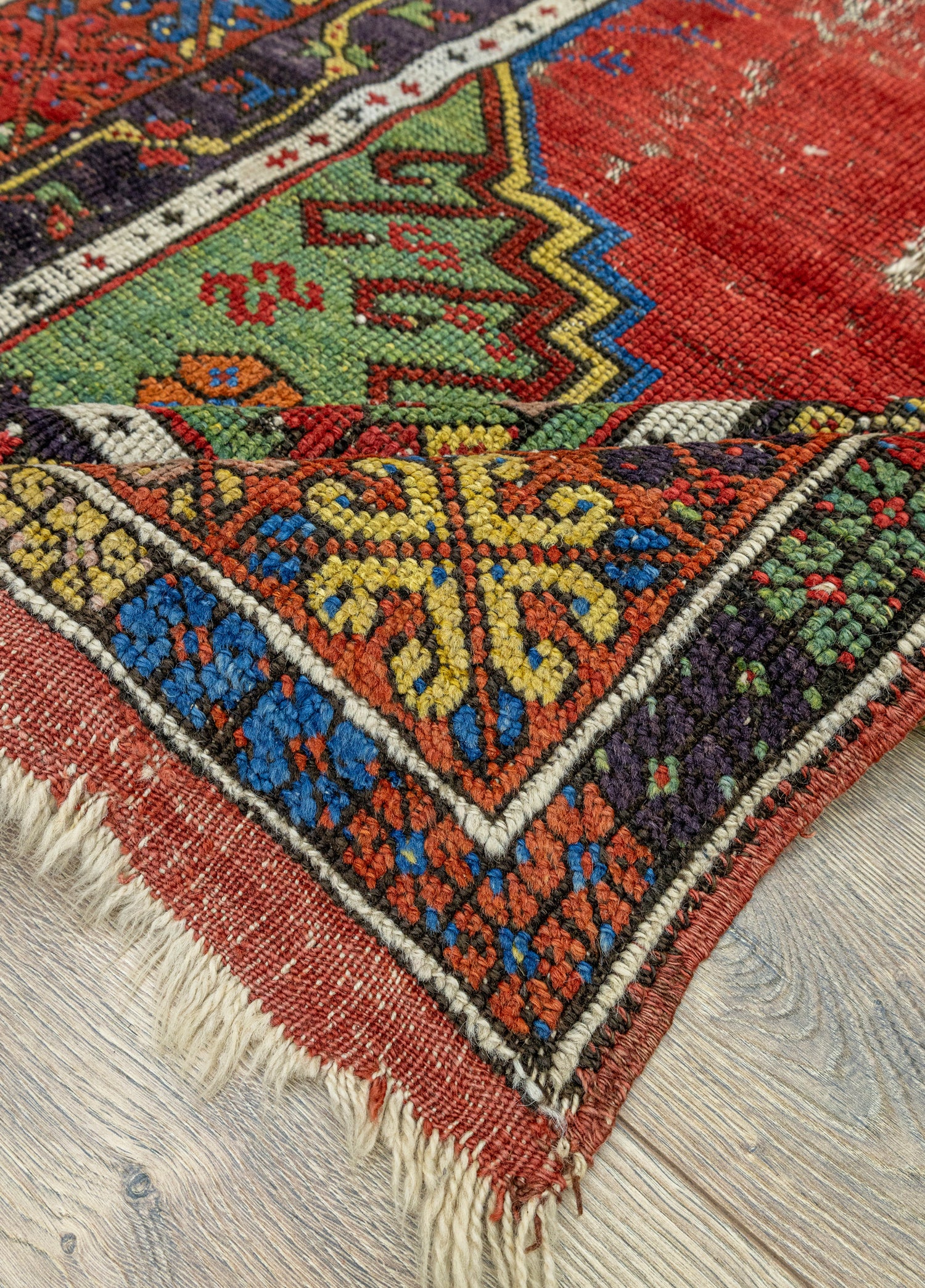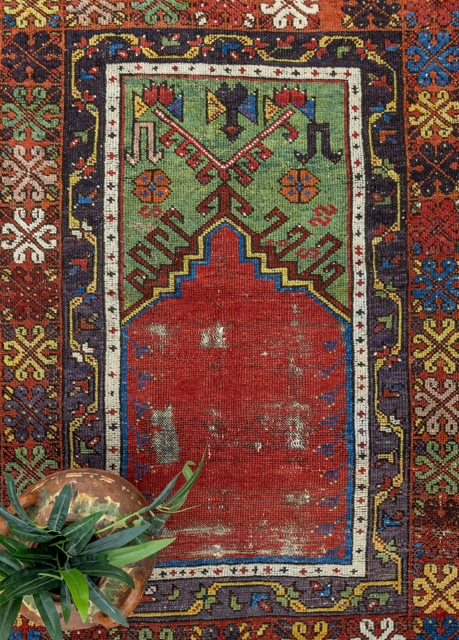 Mihrap tasarımlı antika halının dokuma iplikleri kök boyalarla renklendirilmiştir ve dokumasında doğal yün kullanılmıştır. Orta iyi kondisyona sahip antika halının kalınlığı 10 - 30 mm arasındadır.