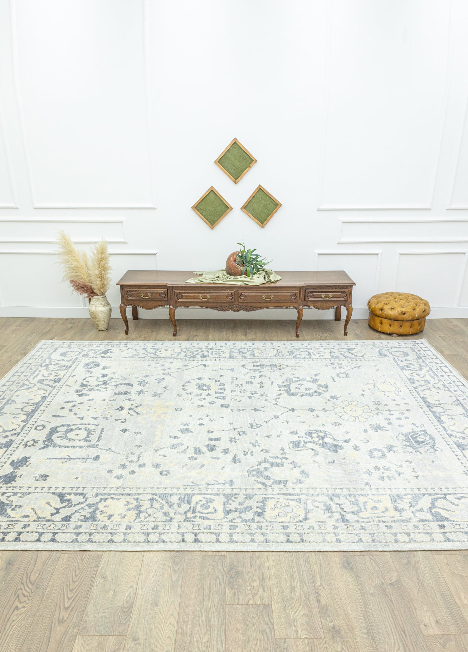 Gösterişli ve estetik tasarımlarıyla Soho Antiqhalı modellerimiz, yaşam alanınıza yeni bir hava katacak! Uzun ömürlü halımodelimiz tamamen yünden oluşur ve özel el dokuma tekniği ile dokunmaktadır.Halı modelini özel yapan ve yıllar geçse de kaliteyi korumasını sağlayanbecerilerle ürettiğimiz bu halı 1 ile 3 cm arası bir kalınlığa sahiptir ve boyu270 x 370 cm’dir. Pek çok renk seçeneğine sahip halı modelleri içerisindenseçtiğiniz halının ana rengi pastel mavidir. Ayrıca halı tasarımında bulunan diğer renkler krem ve mavi tonlarıdır. Soho Antiq içerisinde, kültürel ve geleneksel özelliklere sahiphalılar bulunur. Geçmişten günümüze gelen bu halı modeli Anadolu tarihindenizler taşır ve özellikle Uşak yöresinden kültürel renk ve dokunuşlara sahiptir.Tüm bu geleneksel dokunuşları, halı üzerindeki yöresel uşak halısı deseninde görmekmümkün.