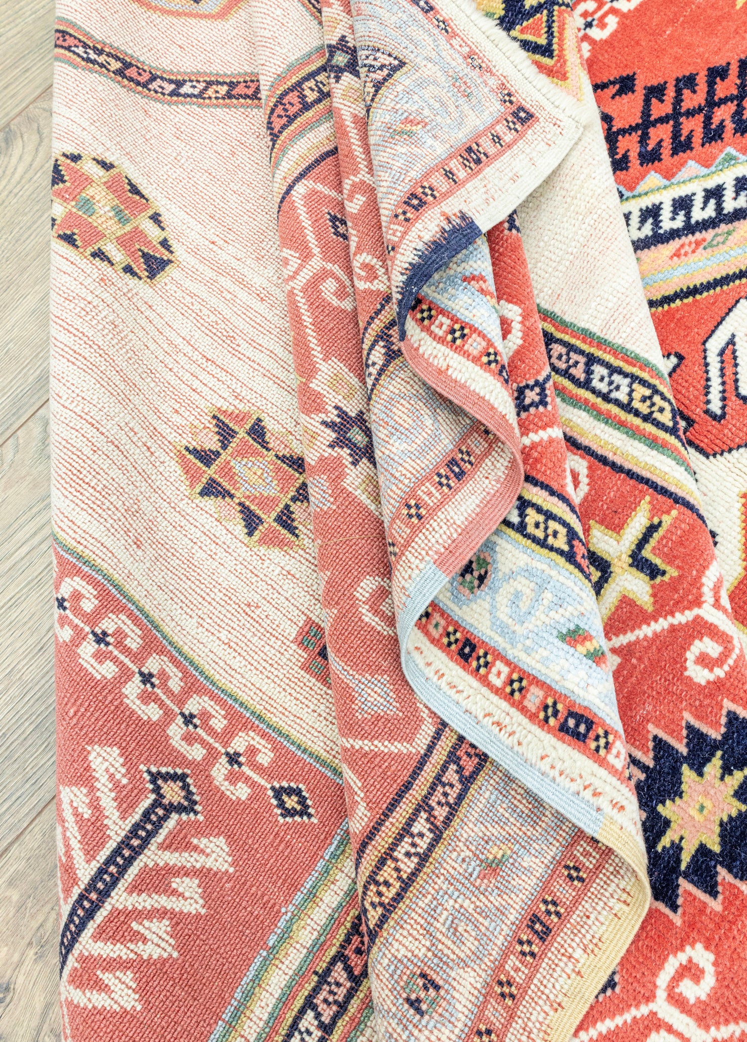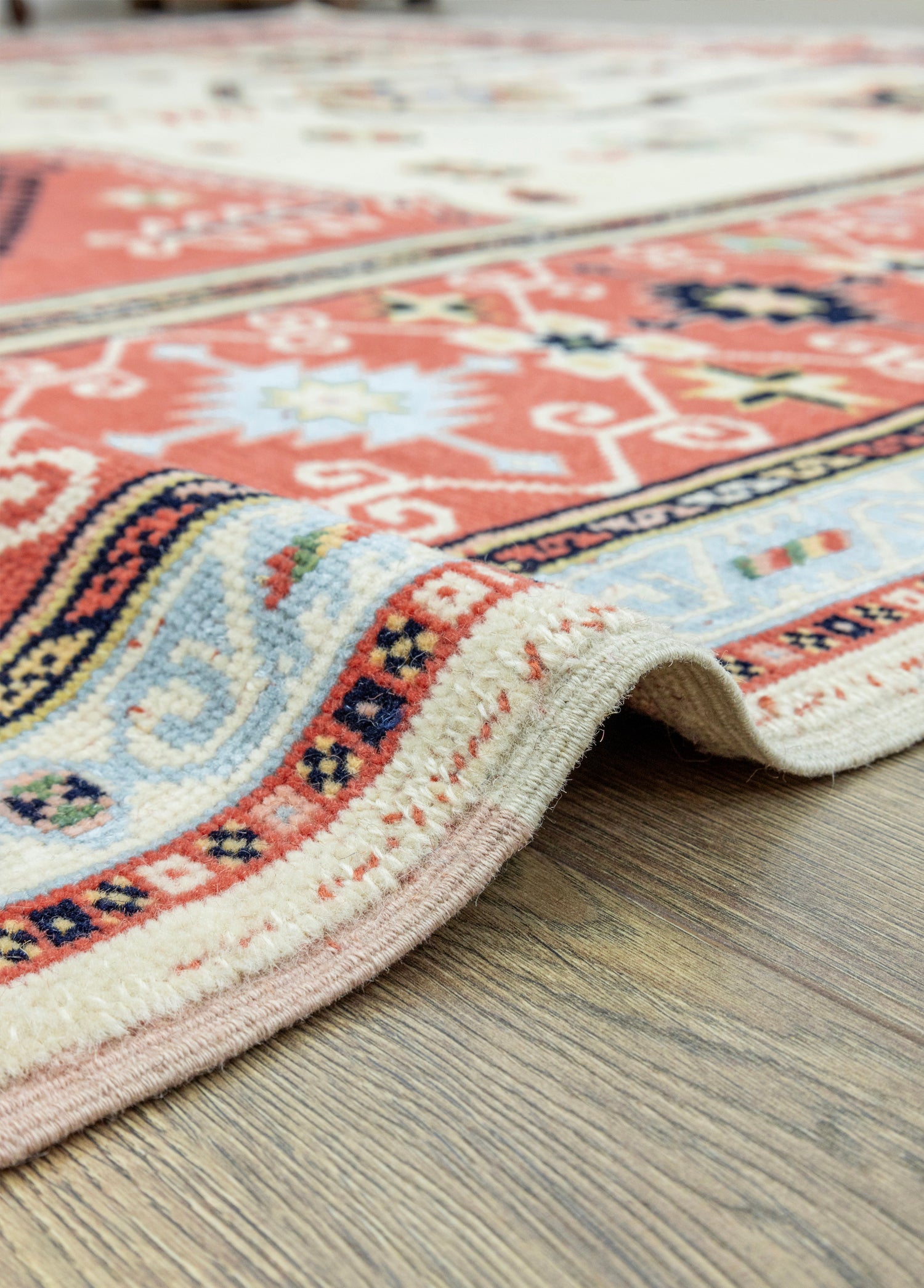 Yaşam alanınıza farklılık katacak olan Soho Antiq geleneksel halımodellerimizle karşınızdayız! Özel olarak tasarlanan bu halılar, her türlüalana uyum sağlamak üzere el dokuma tekniği ile özenle hazırlanmıştır vetamamen doğal yünden oluşmaktadır. Bu da halıları diğerlerinden farklı kılanbirçok özellikten sadece bir tanesidir. Ana rengi krem olan halı modelimizde, pembe tonları, lacivert gibi yan renkler bulunmaktadır. Bu uyumlu renk kombinasyonlarıylaestetik bir halıya sahip olabilirsiniz.