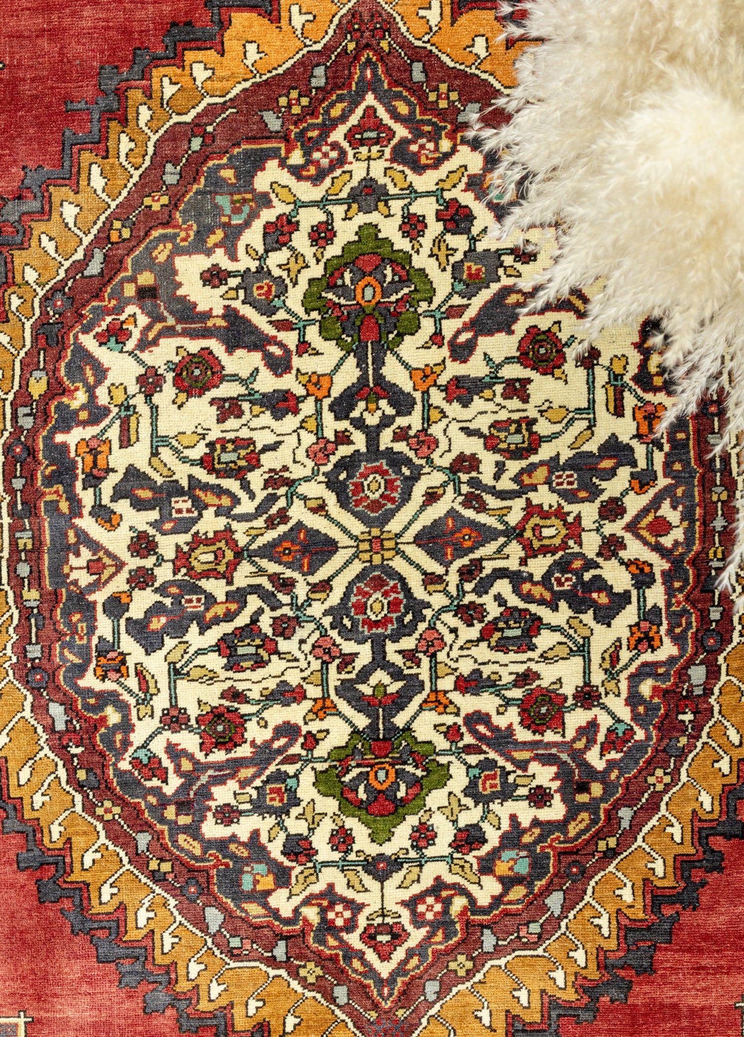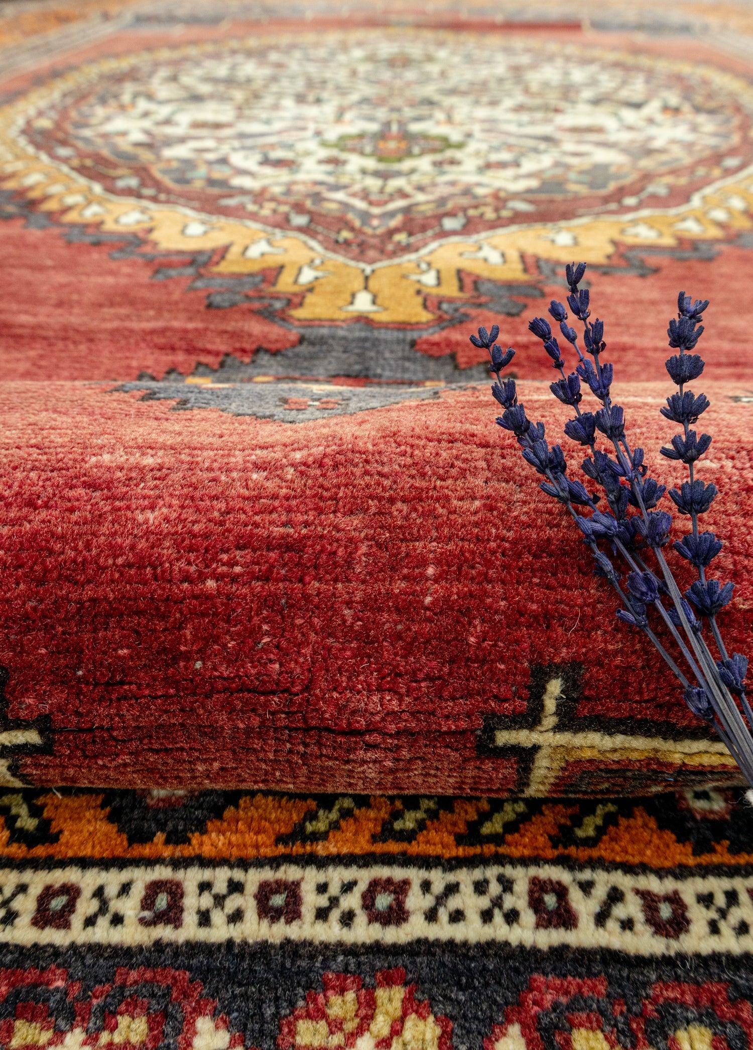 Soho Antiq el dokuma halı ve kilimleri, yaşam alanlarınızanefes katmak için tasarlanmıştır. Bu zarif el dokuma halı, özenle seçilmişyüksek kaliteli yün ipliklerinin ustalıkla bir araya getirilmesiyleoluşturulmuştur. Geleneksel el dokuma teknikleri kullanılarak üretilen halı,evinize sıcaklık ve zarafet katmak amacıyla özel olarak tasarlanmıştır. Renkpaleti, doğanın yumuşak tonlarından ilham alınarak oluşturulmuş olup, turuncu, kırmızı ve lacivert renklerinin uyumuyla dikkat çekerken halı içerisinde bulunan diğer renkler ileuyumu yakalamaktadır. Halı, deneyimli el sanatçıları tarafından özenle dokunmuşve Taşpınar yöresine özgü geleneksel tekniklerle 1950’lerde üretilmiştir, bu da halıyakültürel bir derinlik katmaktadır. Halının ebatı 201 x 333 cm olarak ölçülmüştürve bu ölçü, halının farklı yaşam alanlarına kolaylıkla uyum sağlamasını sağlar.Halının kalınlığı ise 1 - 3 cm arasındadır. Estetik değerinin ötesinde, bu eldokuma halı, evinize özgünlük ve geleneksel bir his katma konusunda öneçıkmaktadır.