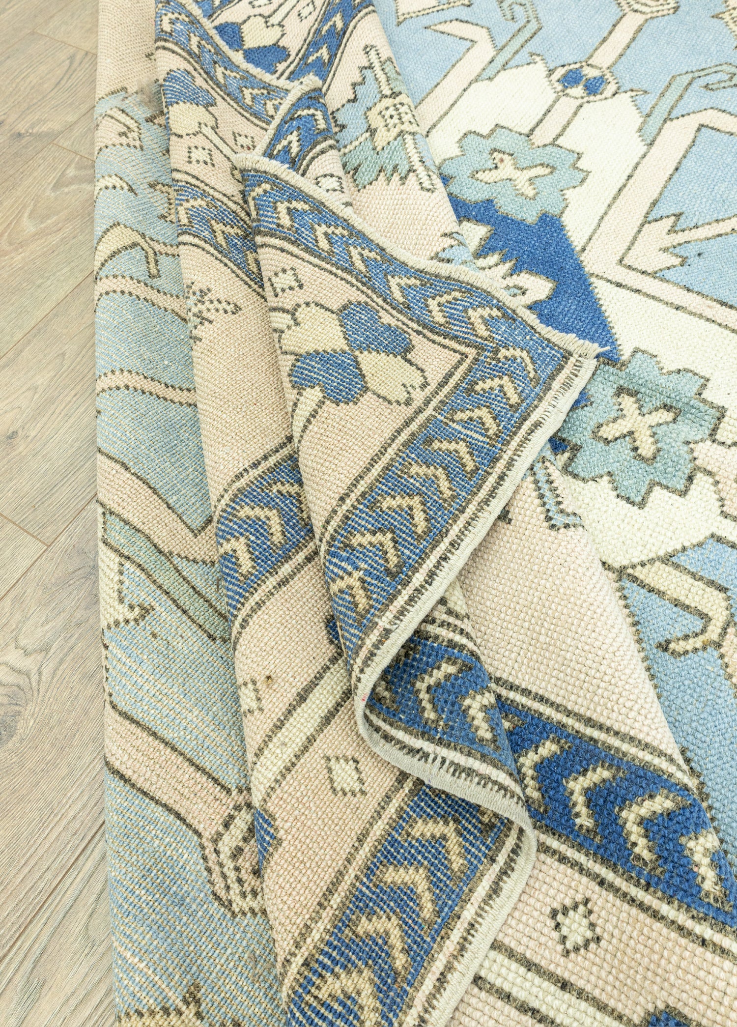 Soho Antiq el dokuma halı ve kilimleri, yaşam alanlarınıza nefes katmak için tasarlanmıştır. Bu zarif el dokuma halı, özenle seçilmiş yüksek kaliteli yün ipliklerinin ustalıkla bir araya getirilmesiyle oluşturulmuştur. Geleneksel el dokuma teknikleri kullanılarak üretilen halı, evinize sıcaklık ve zarafet katmak amacıyla özel olarak tasarlanmıştır. Renk paleti, doğanın yumuşak tonlarından ilham alınarak oluşturulmuş olup, bej ile mavi renklerinin uyumuyla dikkat çekerken halı içerisinde bulunan diğer renkler ile uyumu yakalamaktadır. Halı, deneyimli el sanatçıları tarafından özenle dokunmuş ve Ege yöresine özgü geleneksel tekniklerle 1970’lerde üretilmiştir, bu da halıya kültürel bir derinlik katmaktadır. Halının ebatı 232 x 336 cm olarak ölçülmüştür ve bu ölçü, halının farklı yaşam alanlarına kolaylıkla uyum sağlamasını sağlar. Halının kalınlığı ise 1 - 3 cm arasındadır. Estetik değerinin ötesinde, bu el dokuma halı, evinize özgünlük ve geleneksel bir his katma konusunda öne çıkmaktadır.