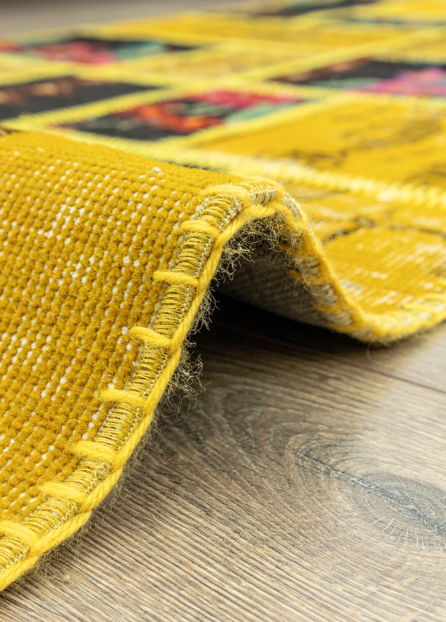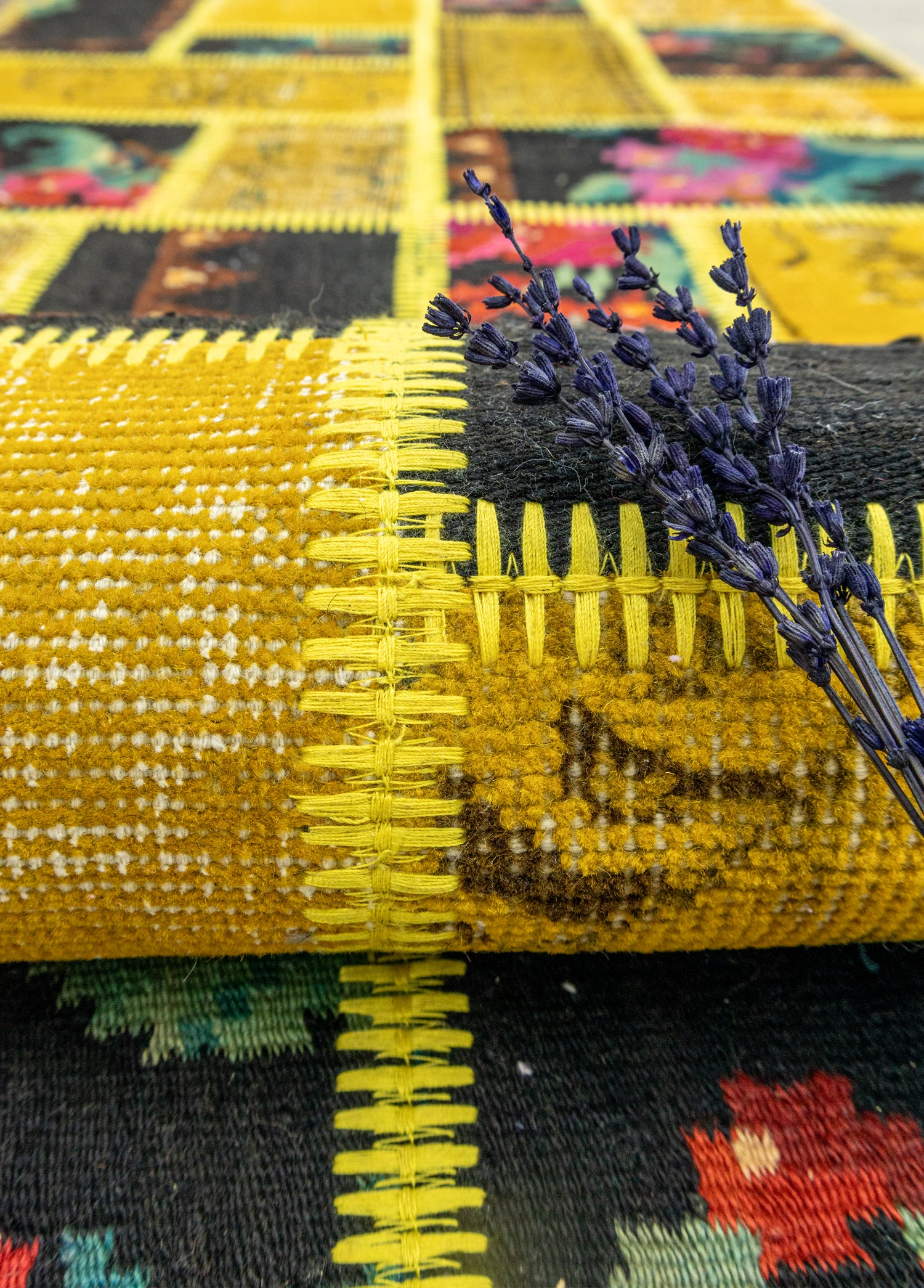 Prunus Karabağ Kilim Parçalı Sarı Patchwork Yolluk 81x309 cm