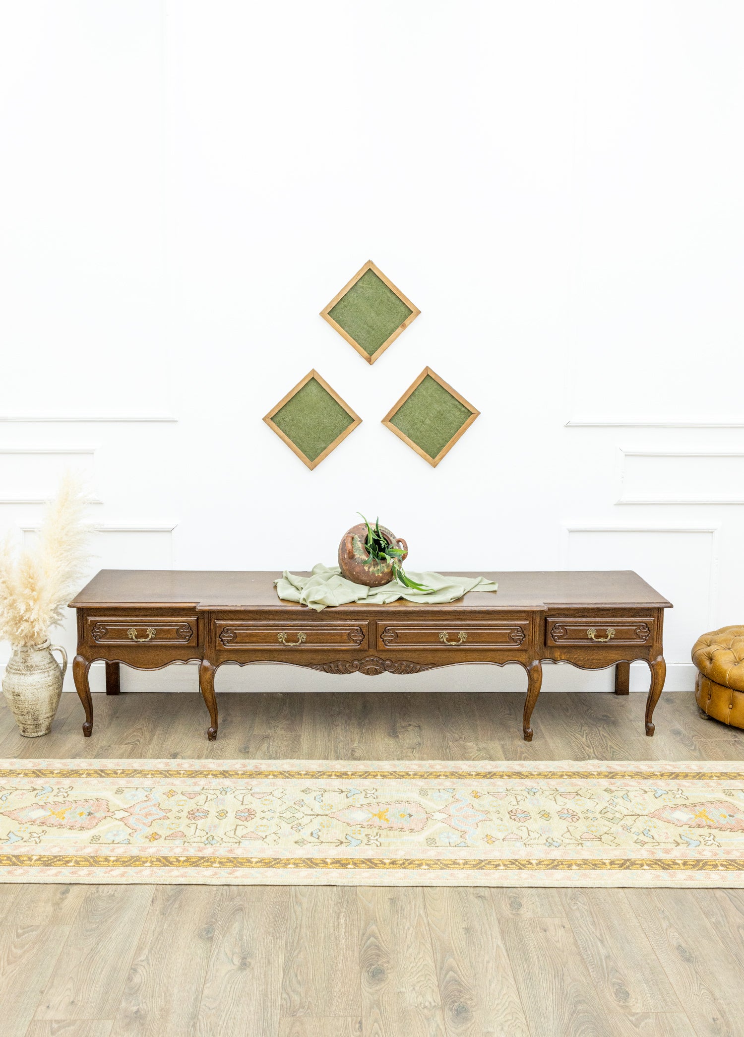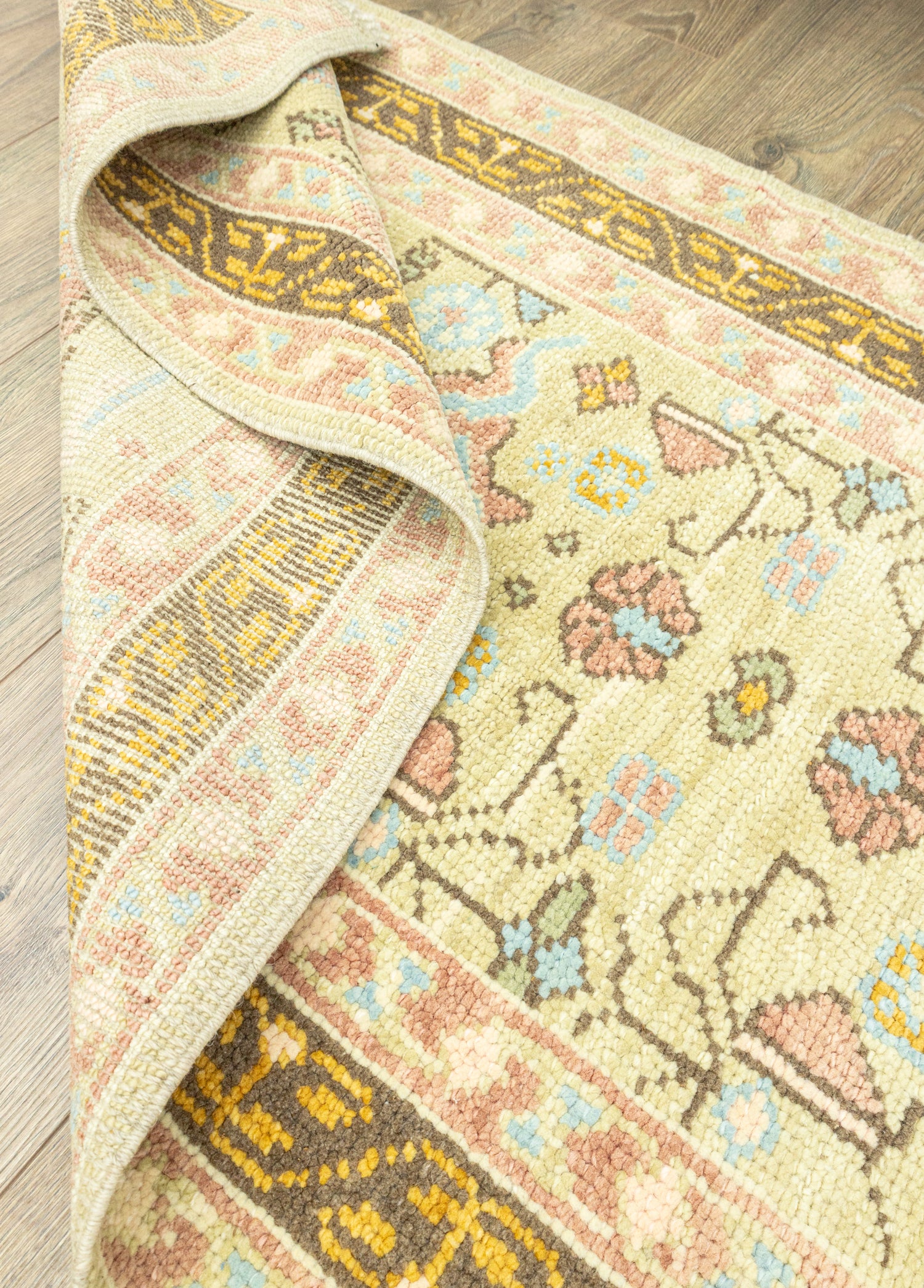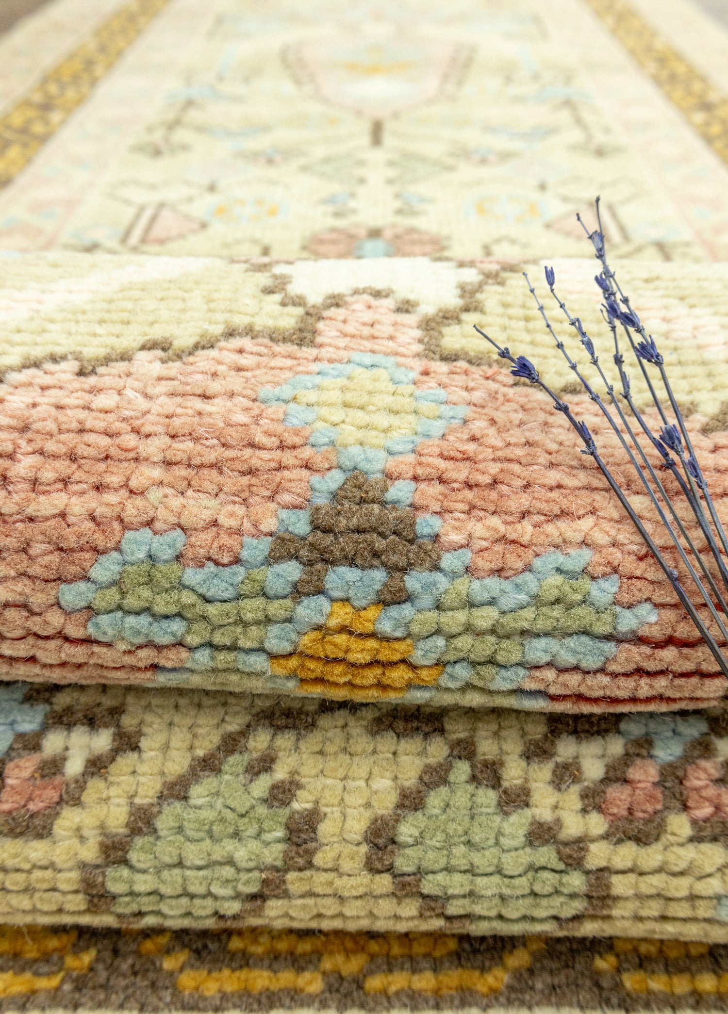 Zamanda yolculuğaçıkaracak, geleneksel halı modelleri Soho Antiq ile sizlerle! Tamamen doğal yünile işlenen bu yolluk halı modeli ayrıca el dokuma ile hazırlanmıştır. Gözalıcı tasarımında bulunan ana renk yeşil tonlarıdır. Ayrıca halı içerisinde bulunandiğer renkler pembe, sarı ve çok renklidir. Halı modelinde sizi etkileyen o tasarımın kaynağı, Uşakyöresinden gelen geleneksel dokunuşlardandır. Öte yandan Ege Bölgesi’nin karakteristiközelliklerini bu halı modelinde bulmak mümkün. Halının boyu 85 x 352cm’dir vekalınlığı 1-3 cm arasındadır. Soho Antiq, halı modelleri ile yaşam alanınızafarklılık katar.