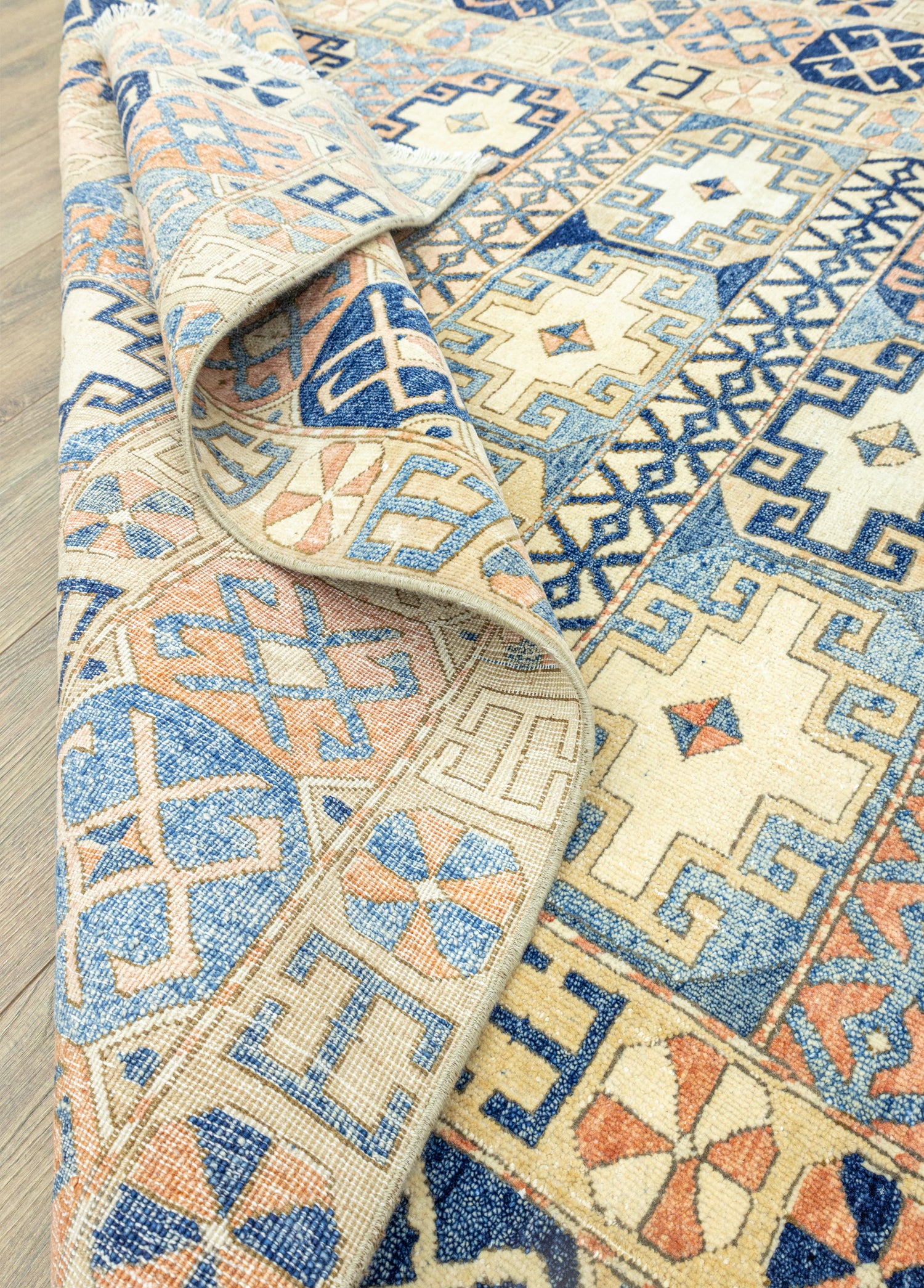 Soho Antiq el dokuma halı ve kilimleri, yaşam alanlarınızanefes katmak için tasarlanmıştır. Bu zarif el dokuma halı, özenle seçilmişyüksek kaliteli yün ve pamuk ipliklerinin ustalıkla bir araya getirilmesiyleoluşturulmuştur. Geleneksel el dokuma teknikleri kullanılarak üretilen halı,evinize sıcaklık ve zarafet katmak amacıyla özel olarak tasarlanmıştır. Renkpaleti, doğanın yumuşak tonlarından ilham alınarak oluşturulmuş olup, mavi ve pastel turuncu renklerinin uyumuyla dikkat çekerken halı içerisinde bulunan diğer renkler ileuyumu yakalamaktadır. Halı, deneyimli el sanatçıları tarafından özenle dokunmuşve Uşak yöresine özgü geleneksel tekniklerle 1980’lerde üretilmiştir, bu da halıyakültürel bir derinlik katmaktadır. Halının ebatı 163 x 255 cm olarak ölçülmüştürve bu ölçü, halının farklı yaşam alanlarına kolaylıkla uyum sağlamasını sağlar.Halının kalınlığı ise 1 - 3 cm arasındadır. Estetik değerinin ötesinde, bu eldokuma halı, evinize özgünlük ve geleneksel bir his katma konusunda öneçıkmaktadır.