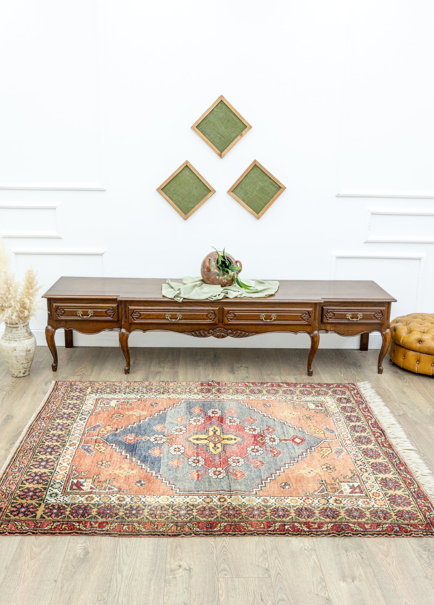 Soho Antiq el dokuma halı ve kilimleri, yaşam alanlarınızanefes katmak için tasarlanmıştır. Bu zarif el dokuma halı, özenle seçilmişyüksek kaliteli yün ipliklerinin ustalıkla bir araya getirilmesiyleoluşturulmuştur. Geleneksel el dokuma teknikleri kullanılarak üretilen halı,evinize sıcaklık ve zarafet katmak amacıyla özel olarak tasarlanmıştır. Renkpaleti, doğanın yumuşak tonlarından ilham alınarak oluşturulmuş olup, pastel kırmızı ve mavi tonları renklerinin uyumuyla dikkat çekerken halı içerisinde bulunan diğer renkler ileuyumu yakalamaktadır. Halı, deneyimli el sanatçıları tarafından özenle dokunmuşve Afyon yöresine özgü geleneksel tekniklerle 1970’lerde üretilmiştir, bu da halıyakültürel bir derinlik katmaktadır. Halının ebatı 153 x 189 cm olarak ölçülmüştürve bu ölçü, halının farklı yaşam alanlarına kolaylıkla uyum sağlamasını sağlar.Halının kalınlığı ise 1 - 3 cm arasındadır. Estetik değerinin ötesinde, bu eldokuma halı, evinize özgünlük ve geleneksel bir his katma konusunda öneçıkmaktadır.