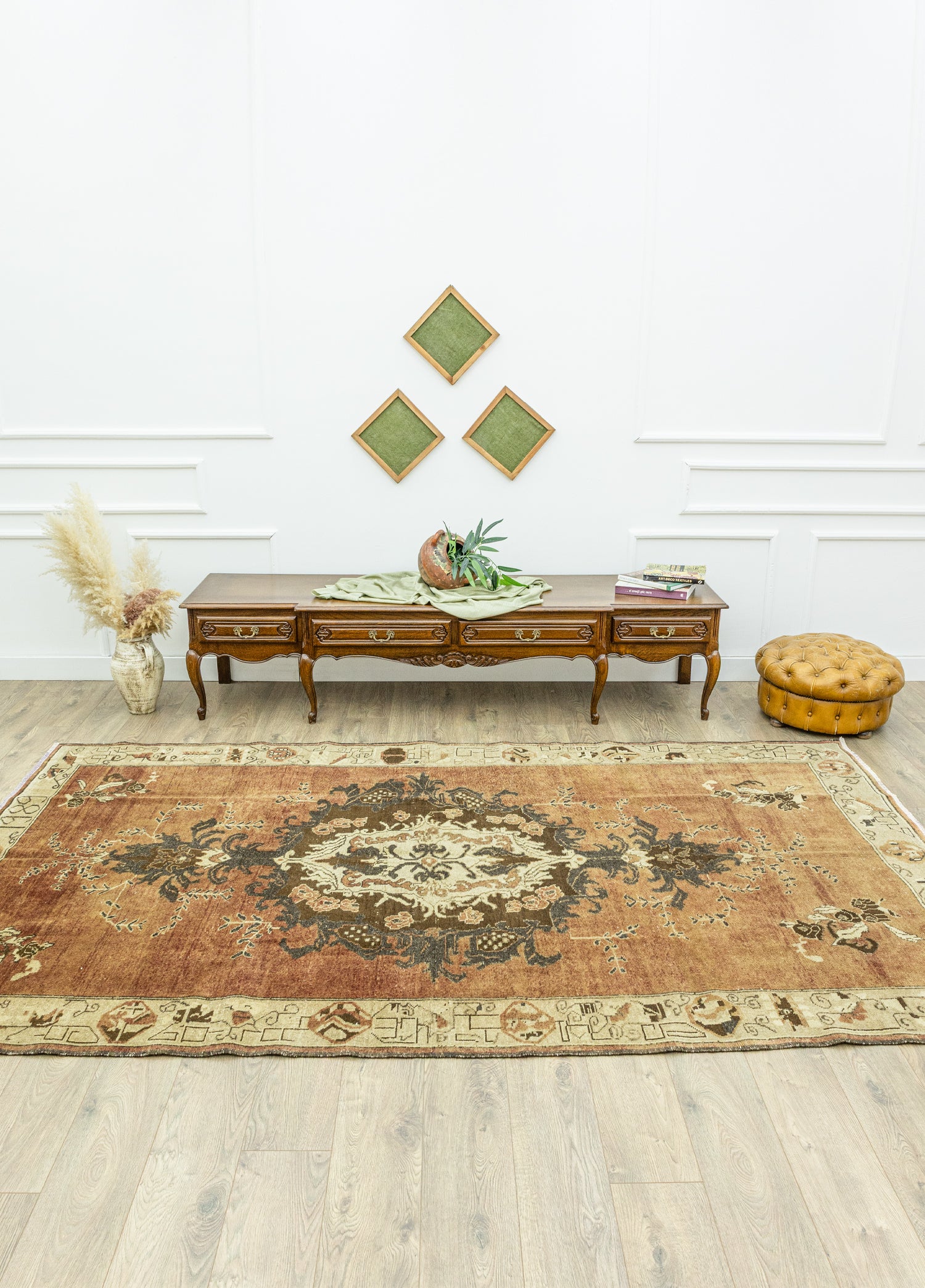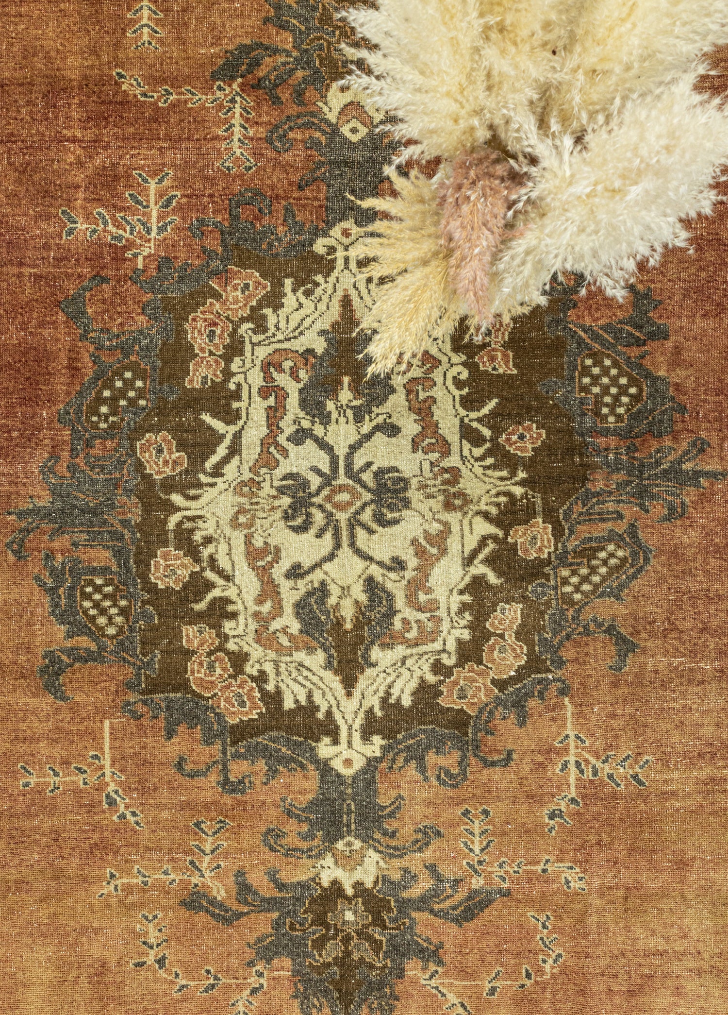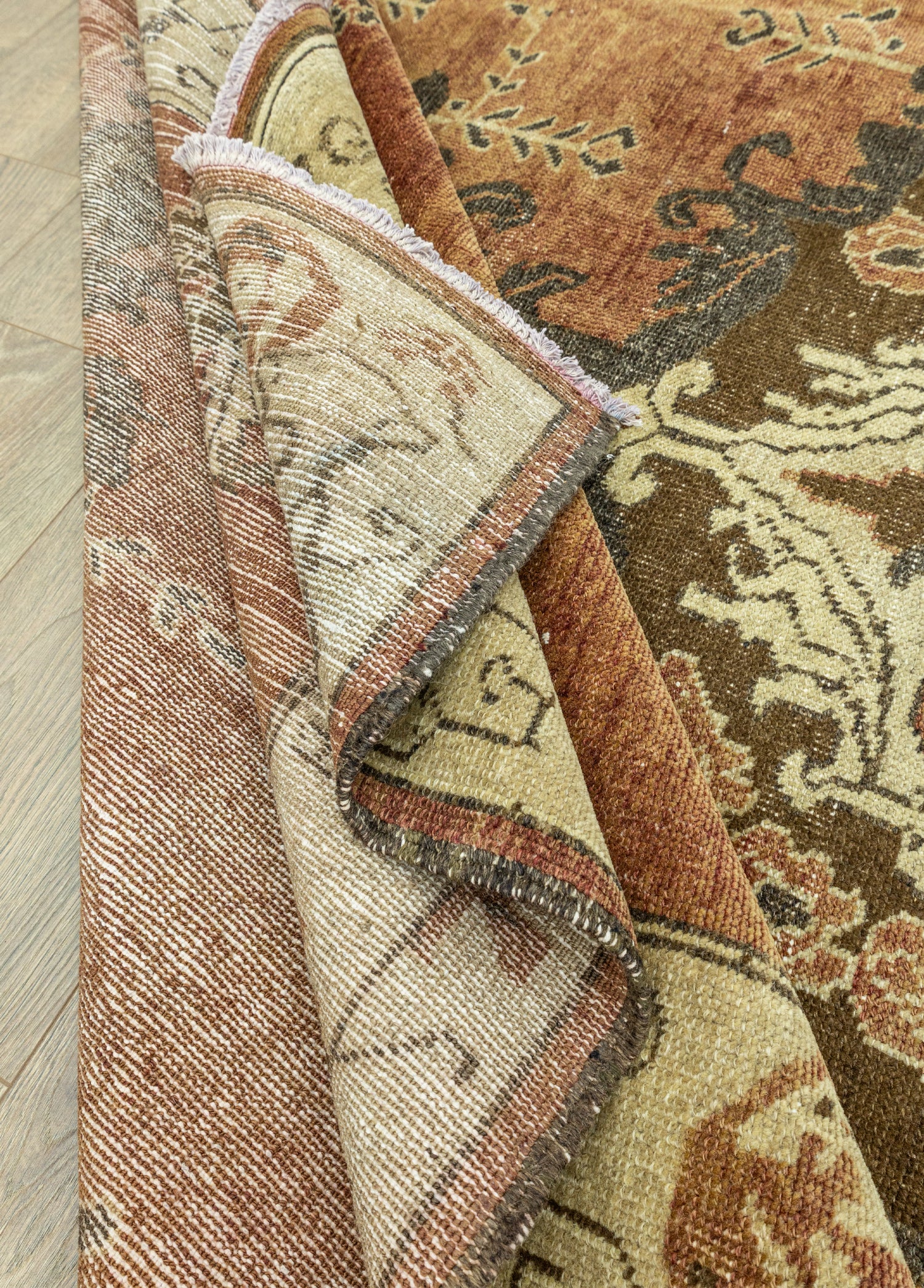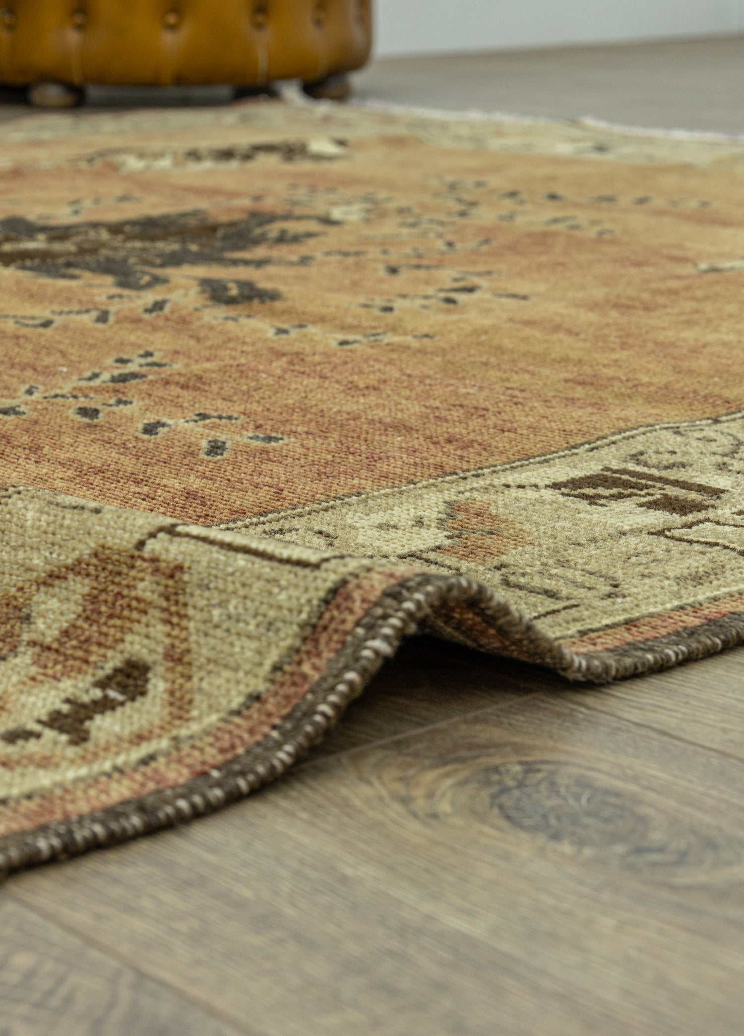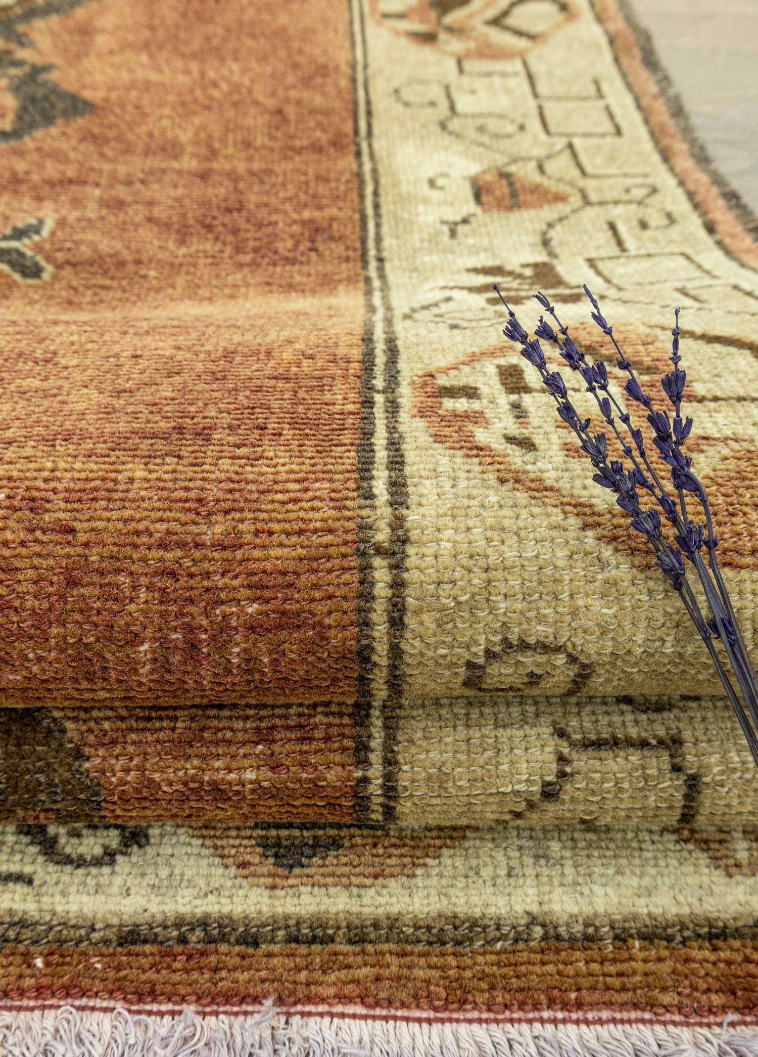 Soho Antiq el dokuma halı ve kilimleri, yaşam alanlarınıza nefes katmak için tasarlanmıştır. Bu zarif el dokuma halı, özenle seçilmi şyüksek kaliteli yün ipliklerinin ustalıkla bir araya getirilmesiyleoluşturulmuştur. Geleneksel el dokuma teknikleri kullanılarak üretilen halı, evinize sıcaklık ve zarafet katmak amacıyla özel olarak tasarlanmıştır. Renk paleti, doğanın yumuşak tonlarından ilham alınarak oluşturulmuş olup, kiremit ve haki renklerinin uyumuyla dikkat çekerken halı içerisinde bulunan diğer renkler ile uyumu yakalamaktadır. Halı, deneyimli el sanatçıları tarafından özenle dokunmuşve Kars yöresine özgü geleneksel tekniklerle 1980’lerde üretilmiştir, bu da halıya kültürel bir derinlik katmaktadır. Halının ebatı 183 x 324 cm olarak ölçülmüştürve bu ölçü, halının farklı yaşam alanlarına kolaylıkla uyum sağlamasını sağlar. Halının kalınlığı ise 1 - 3 cm arasındadır. Estetik değerinin ötesinde, bu el dokuma halı, evinize özgünlük ve geleneksel bir his katma konusunda öneçıkmaktadır.