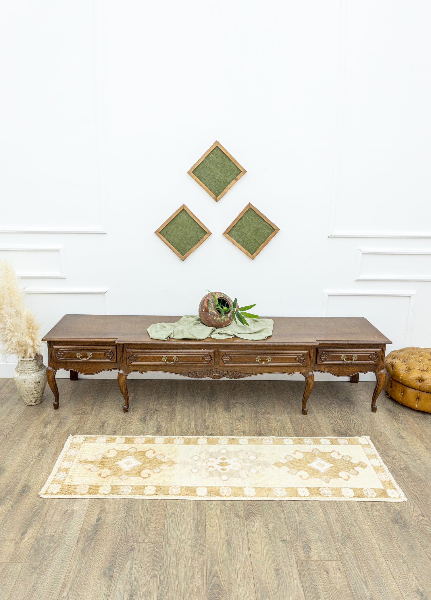 Halının boyutları 57 x 182 cm ve kalınlığı 1-3 cm arasında değişmektedir, bu da hem zarafeti hemde dayanıklılığı bir arada sunmaktadır. Soho Antiq, benzersiz halı modelleriyleyaşam alanınıza özgünlük ve zarafet katmaktadır.