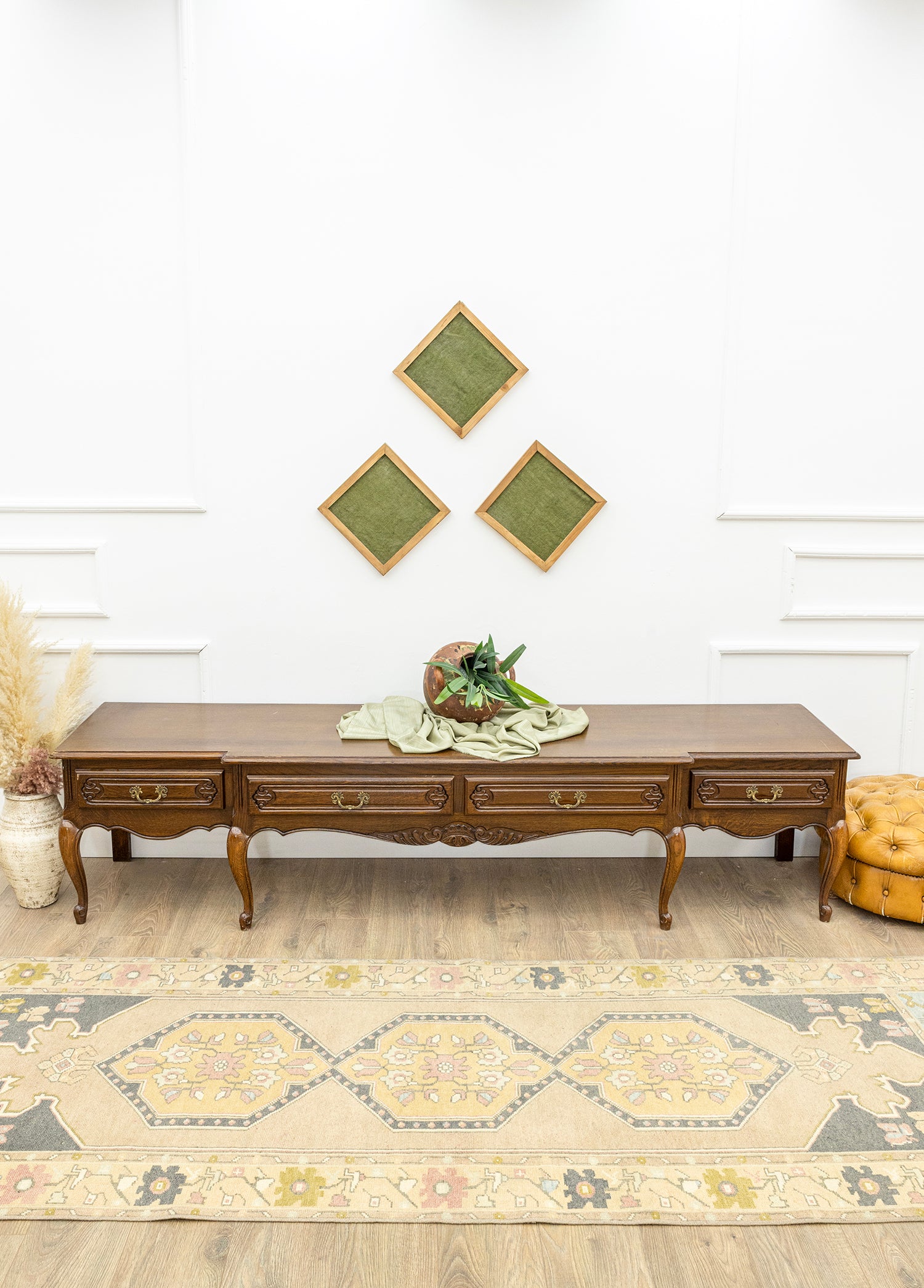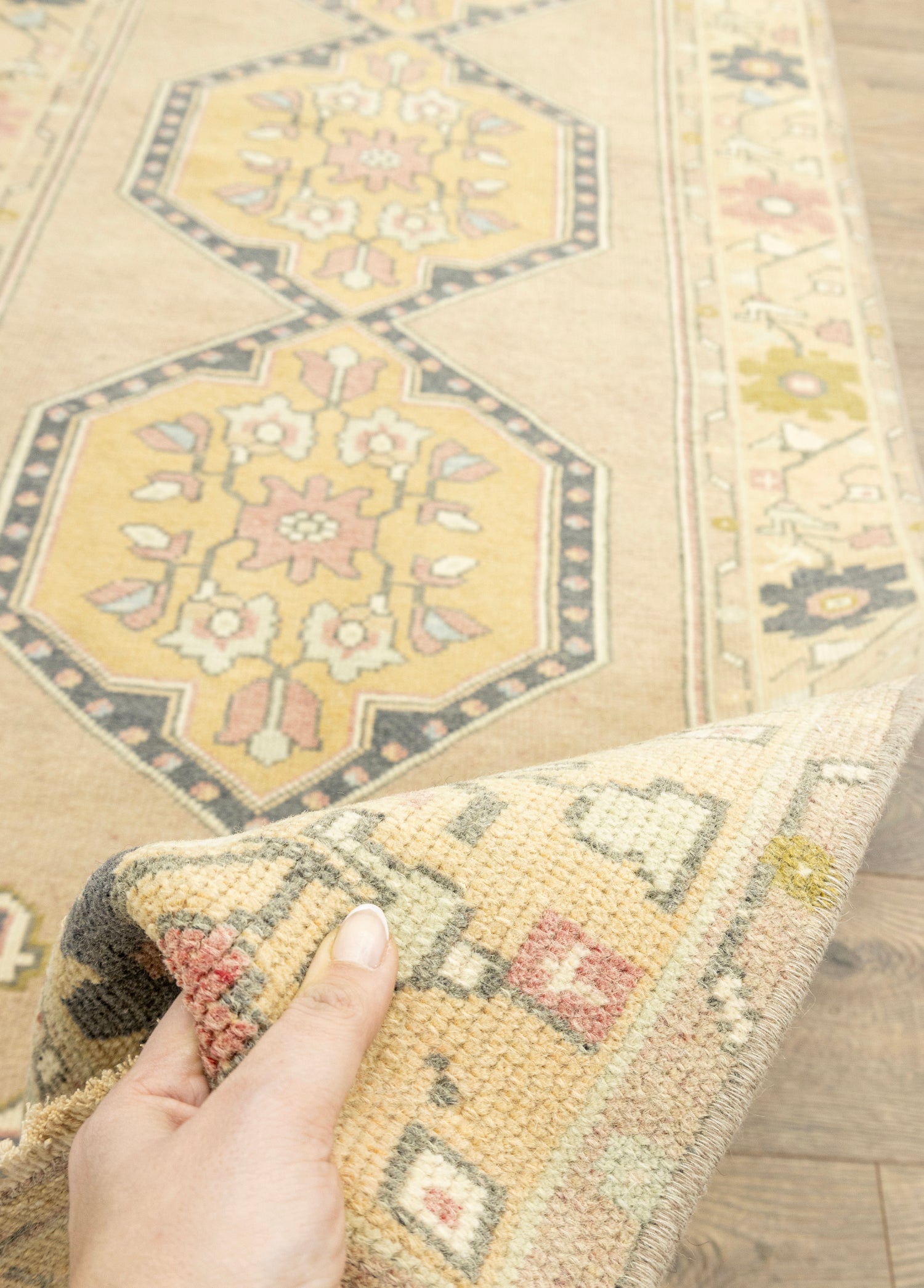 Soho Antiq el dokuma halı ve kilimleri, yaşam alanlarınızanefes katmak için tasarlanmıştır. Bu zarif el dokuma yolluk halı, özenle seçilmişyüksek kaliteli yün ipliklerinin ustalıkla bir araya getirilmesiyleoluşturulmuştur. Geleneksel el dokuma teknikleri kullanılarak üretilen halı,evinize sıcaklık ve zarafet katmak amacıyla özel olarak tasarlanmıştır. Renkpaleti, doğanın yumuşak tonlarından ilham alınarak oluşturulmuş olup, sütlü kahve ile lacivert renklerinin uyumuyla dikkat çekerken halı içerisinde bulunan diğer renkler ile uyumu yakalamaktadır. Halı, deneyimli el sanatçıları tarafındanözenle dokunmuş ve Niğde yöresine özgü geleneksel tekniklerle 1980’lerdeüretilmiştir, bu da halıya kültürel bir derinlik katmaktadır. Halının ebatı 102 x 298 cm olarak ölçülmüştür ve bu ölçü, halının farklı yaşam alanlarınakolaylıkla uyum sağlamasını sağlar. Halının kalınlığı ise 1 - 3 cm arasındadır. Estetik değerinin ötesinde, bu el dokumahalı, evinize özgünlük ve geleneksel bir his katma konusunda öne çıkmaktadır.