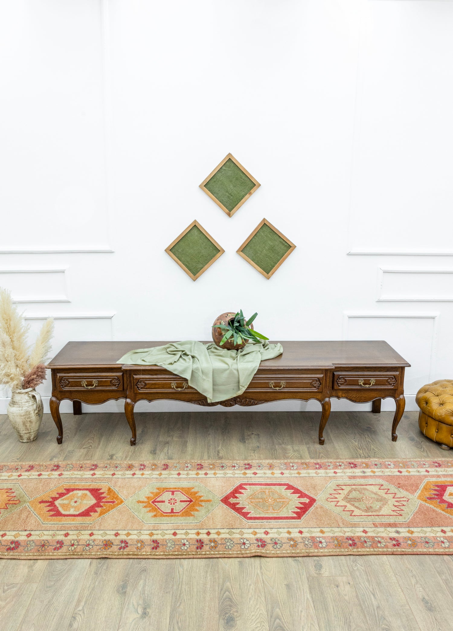 Zamanda yolculuğa çıkaracak, geleneksel ve modern yolluk halı modelleri Soho Antiq ile sizlerle! Tamamen doğal yün ve pamuk ile işlenen bu yolluk modeli ayrıca el dokuma ile hazırlanmıştır. Göz alıcı tasarımında bulunan ana renk kahverengi tonlarıdır. Ayrıca halı içerisinde bulunan diğer renkler pastel pembe, yeşil ve çok renklidir. Halı modelinde sizi etkileyen o tasarımın kaynağı, Doğu Anadolu yöresinden gelen geleneksel dokunuşlardandır. Öte yandan 1980’lerin tüm karakteristik özelliklerini bu halı modelinde bulmak mümkün. Halının boyu 88 x 364 cm’dir ve kalınlığı 1-3 cm arasındadır. Soho Antiq, halı modelleri ile yaşam alanınıza farklılık katar.