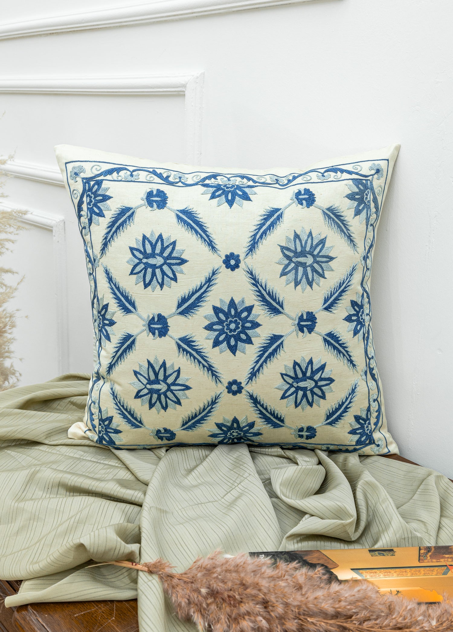 Zerfa Çiçek İşlemeli İpek Kırlent 50x50 cm