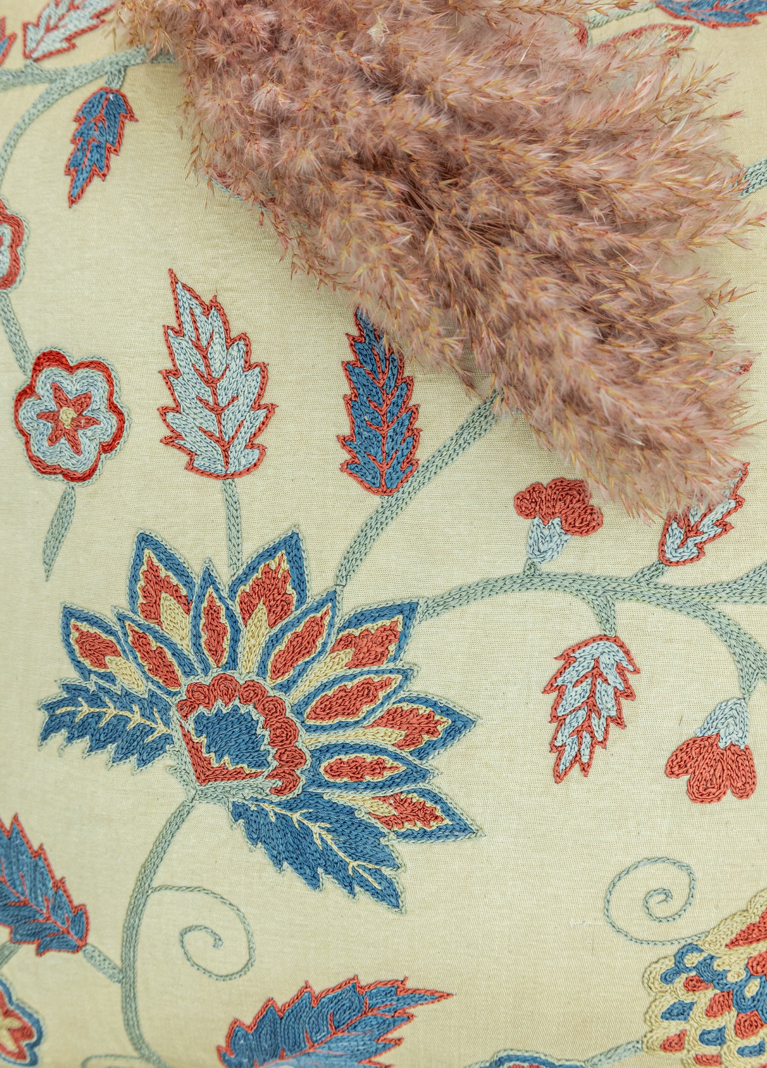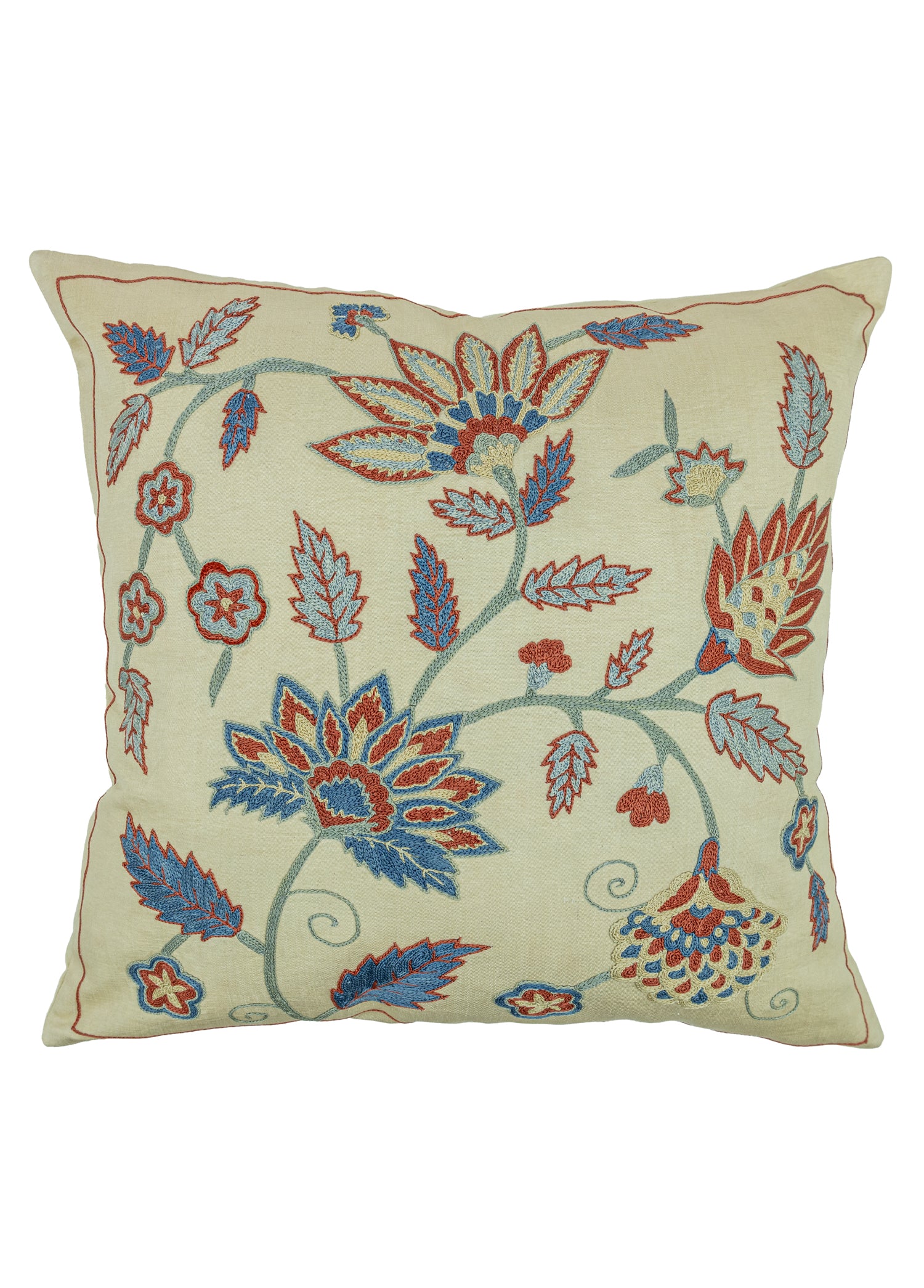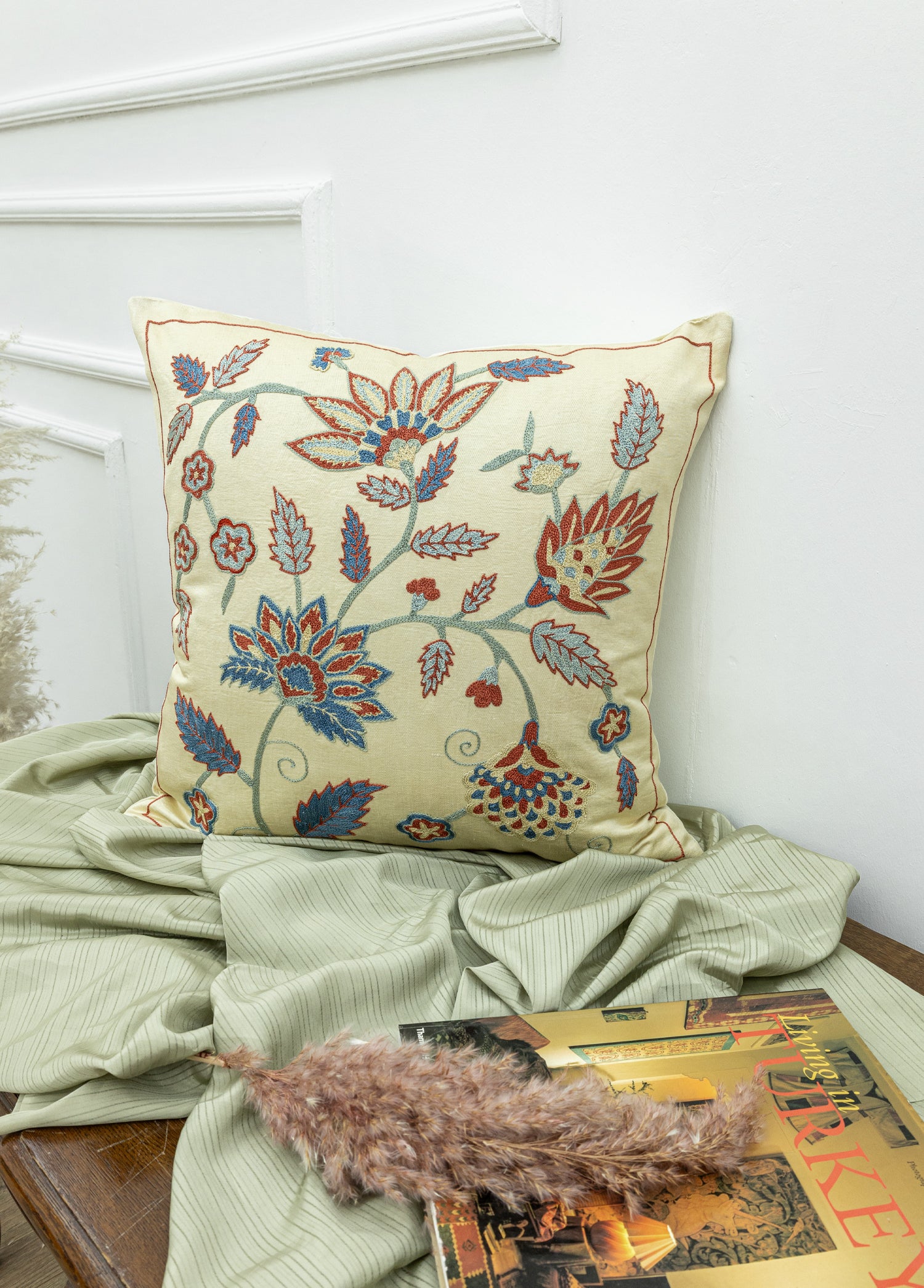 Abike Çiçek İşlemeli İpek Kırlent 50x50 cm