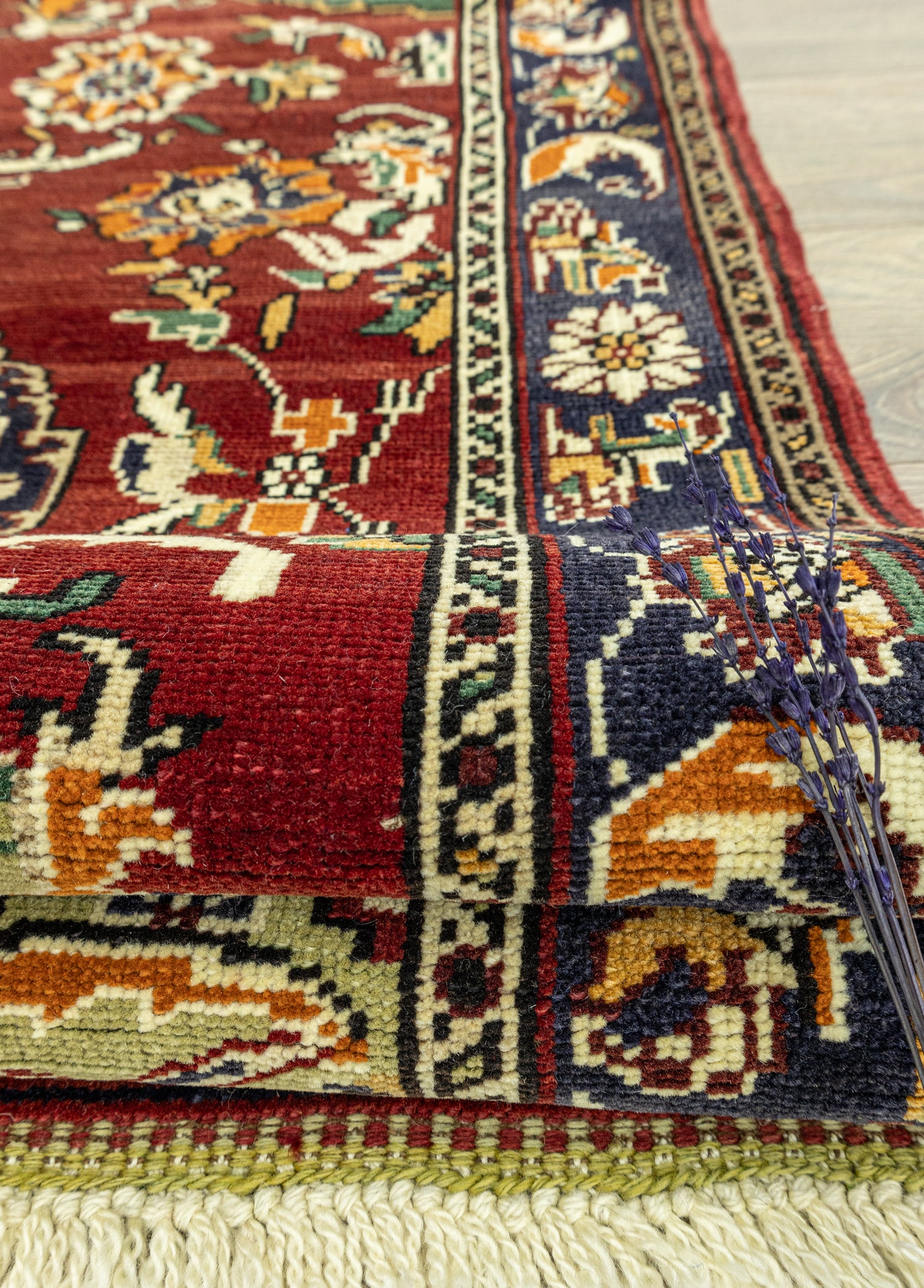 Yaşam alanınıza farklılık katacak olan Soho Antiq geleneksel halı modellerimizle karşınızdayız! Özel olarak tasarlanan bu halılar, her türlü alana uyum sağlamak üzere el dokuma tekniği ile özenle hazırlanmıştır ve tamamen doğal yünden oluşmaktadır. Bu da halıları diğerlerinden farklı kılan birçok özellikten sadece bir tanesidir. Ana rengi koyu kırmızı olan halı modelimizde, yeşil ve lacivert gibi yan renkler bulunmaktadır. Bu uyumlu renk kombinasyonlarıyla estetik bir halıya sahip olabilirsiniz.