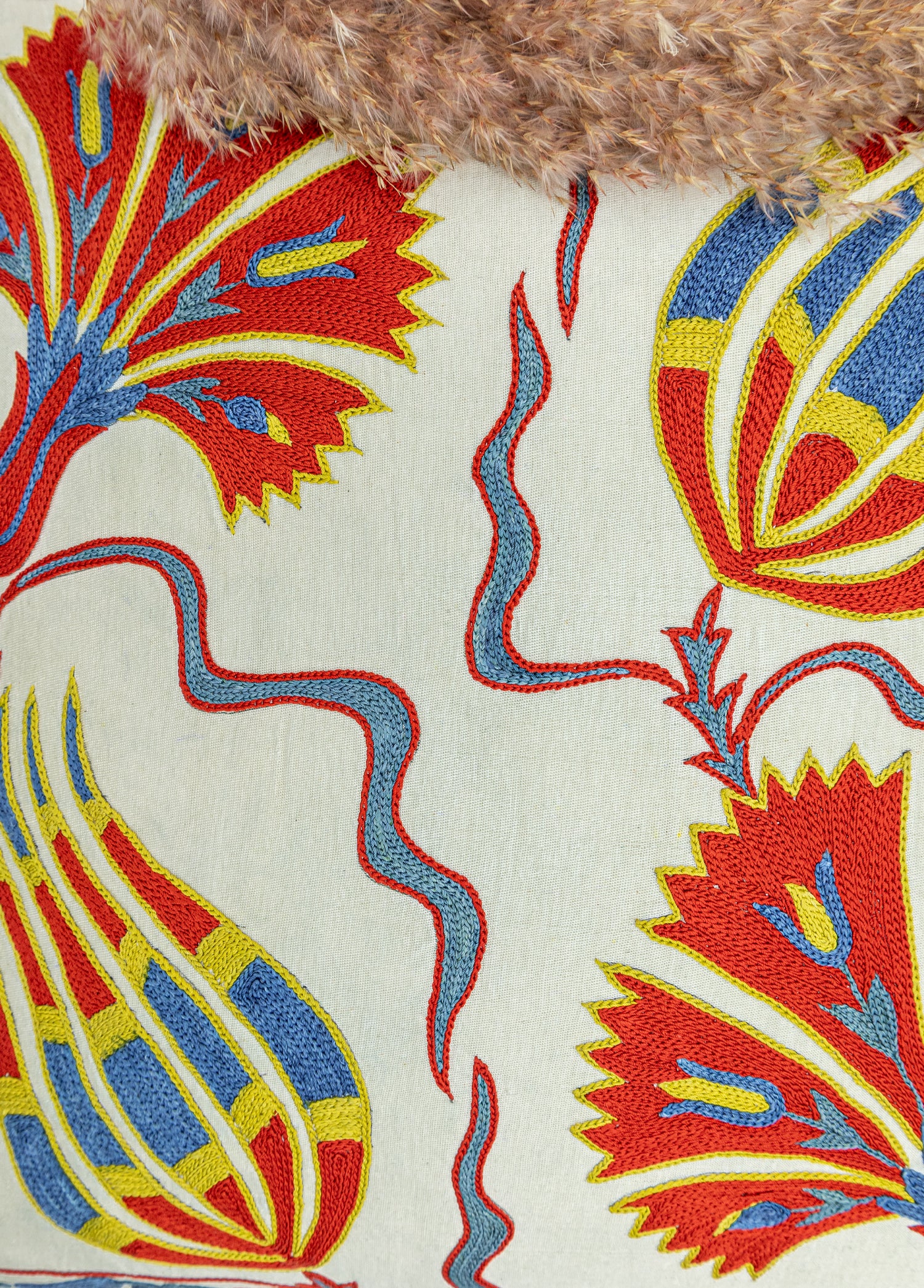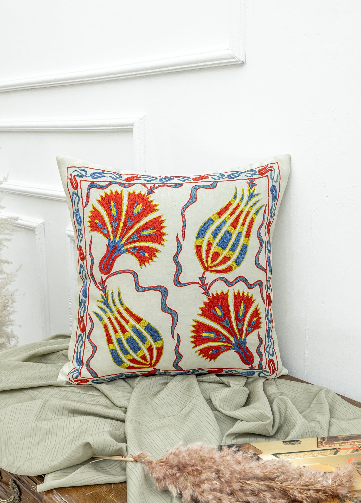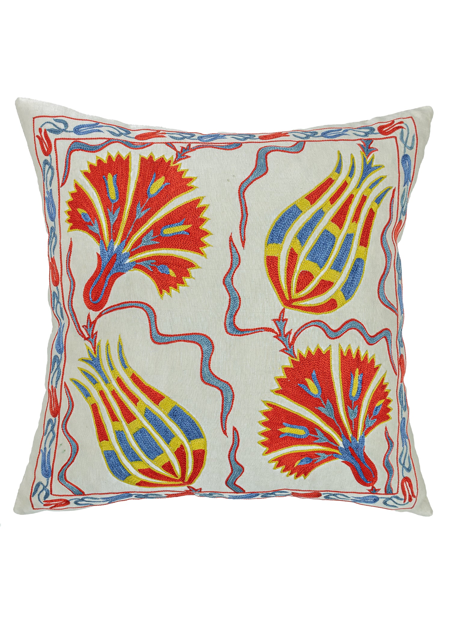 Aras Lale Desenli İpek Kırlent 50x50 cm
