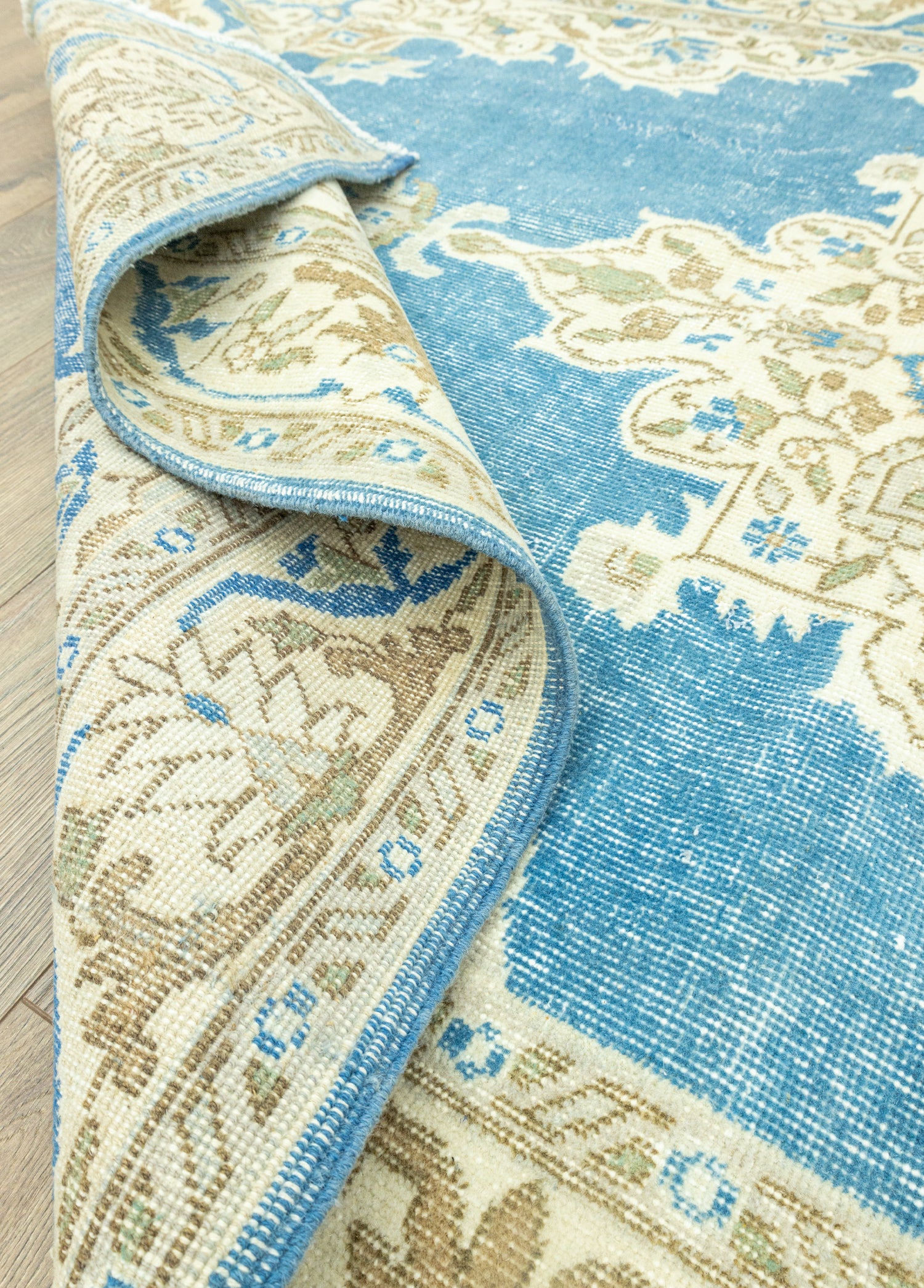 Soho Antiq halımodellerinin içerisinde dilediğiniz konsepte uygun tasarımı bulmak mümkün! SohoAntiq halı modellerimiz tamamen doğal yün ile pamuktan oluşur ve tamamı eldokumasıdır. Halı, 1 ile 3 cm arası bir kalınlığa sahiptir ve boyu 167 x 280 cm’dir. Halı kataloğumuzda bulunan çeşitli renk seçeneklerinden biri olan mavi halının ana rengidir. Ayrıca halı modelindeki diğer renkler krem ve kahverengidir. Soho Antiq,tarihi ve yöresel dokunuşlarıyla halı modellerini bir üst seviyeye taşır. Halıüzerindeki desenler madalyon desen denilen tasarımlara sahiptir. Isparta yöresinde dokunmuşolan bu halımız 1970’lerin dokunuşlarına sahiptir ve dokuma sonrası halıyauygulanan tıraşlama işlemi sayesinde hav yüksekliği minimum seviyeyeindirilmiştir, bu da halıya pürüzsüz ve modern bir görünüm kazandırmıştır. Soho Antiq halılarımız tamamen özel eldokuma teknikleri ile tasarlanır.