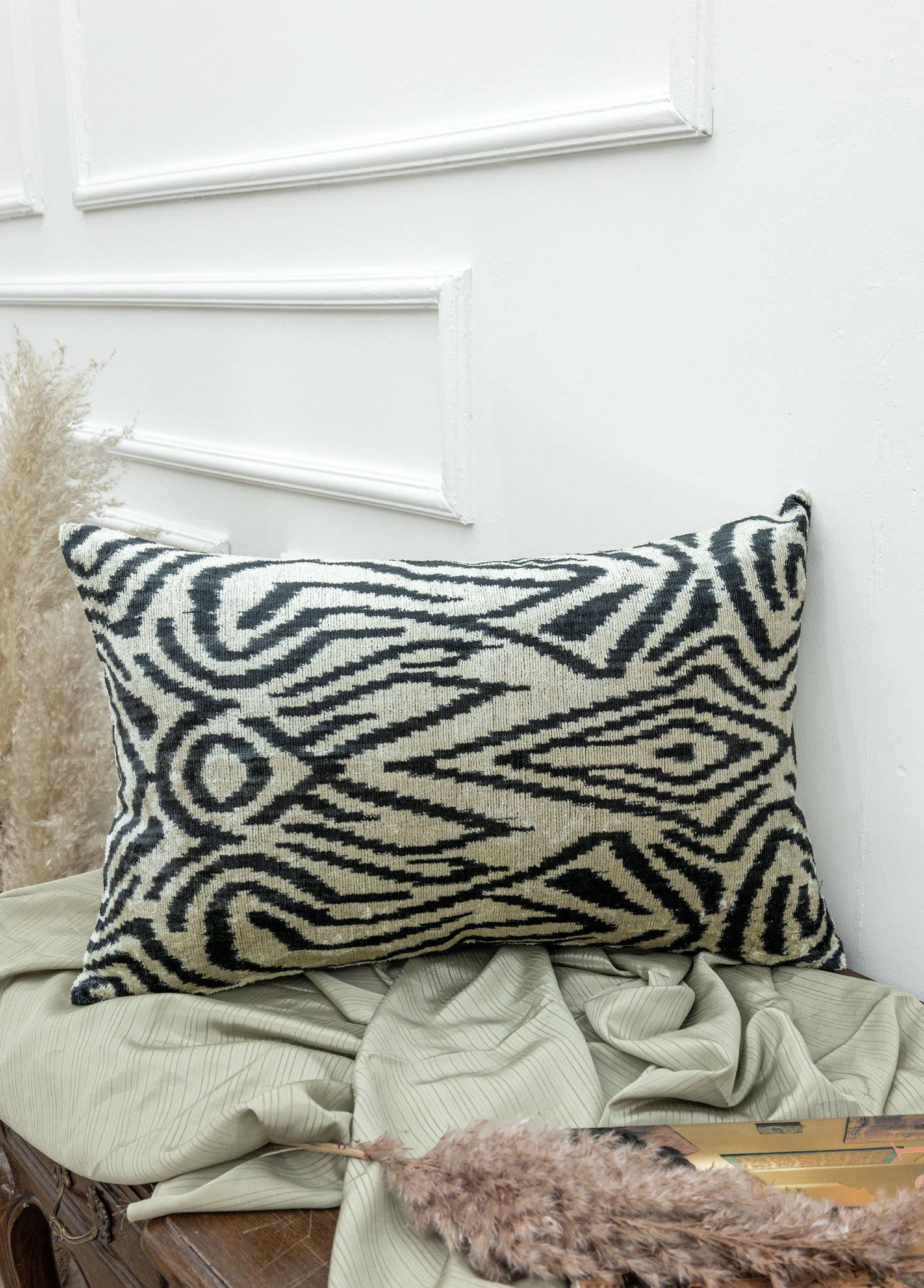 İkat kadife yastıklar, ikat desenleme tekniğiyle üretilen ve kadife, kumaş kullanılarak yapılan yastıklardır. Bu yastıklar, hem ikat deseninin görsel çekiciliğini taşırken hem de kadife kumaşın yumuşaklık ve lüks hissini sunar.