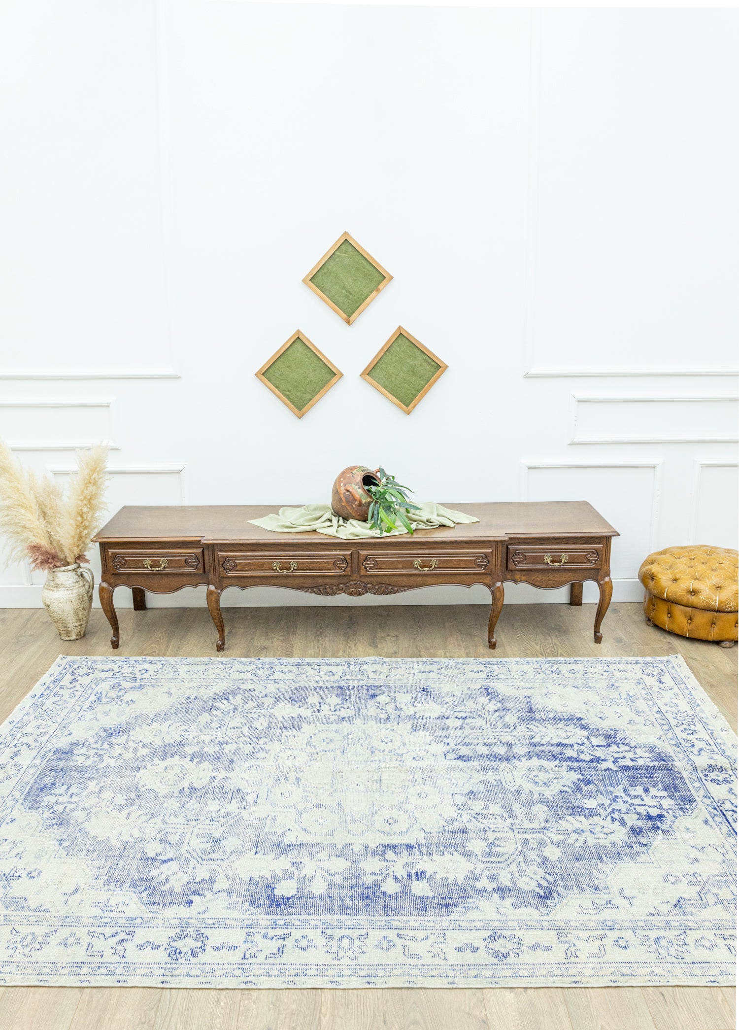 Soho Antiq halımodellerinin içerisinde dilediğiniz konsepte uygun tasarımı bulmak mümkün! SohoAntiq halı modellerimiz tamamen doğal yün ile pamuktan oluşur ve tamamı eldokumasıdır. Halı, 1 ile 3 cm arası bir kalınlığa sahiptir ve boyu 180 x 271 cm’dir. Halı kataloğumuzda bulunan çeşitli renk seçeneklerinden biri olan mavi halının ana rengidir. Ayrıca halı modelindeki diğer renkler gri, krem ve çok renklidir. Soho Antiq,tarihi ve yöresel dokunuşlarıyla halı modellerini bir üst seviyeye taşır. Halıüzerindeki desenler rustik desen denilen tasarımlara sahiptir. Manisa, Demirci yöresinde dokunmuşolan bu halımız 1960’ların dokunuşlarına sahiptir ve dokuma sonrası halıyauygulanan tıraşlama işlemi sayesinde hav yüksekliği minimum seviyeyeindirilmiştir, bu da halıya pürüzsüz ve modern bir görünüm kazandırmıştır. Soho Antiq halılarımız tamamen özel eldokuma teknikleri ile tasarlanır.