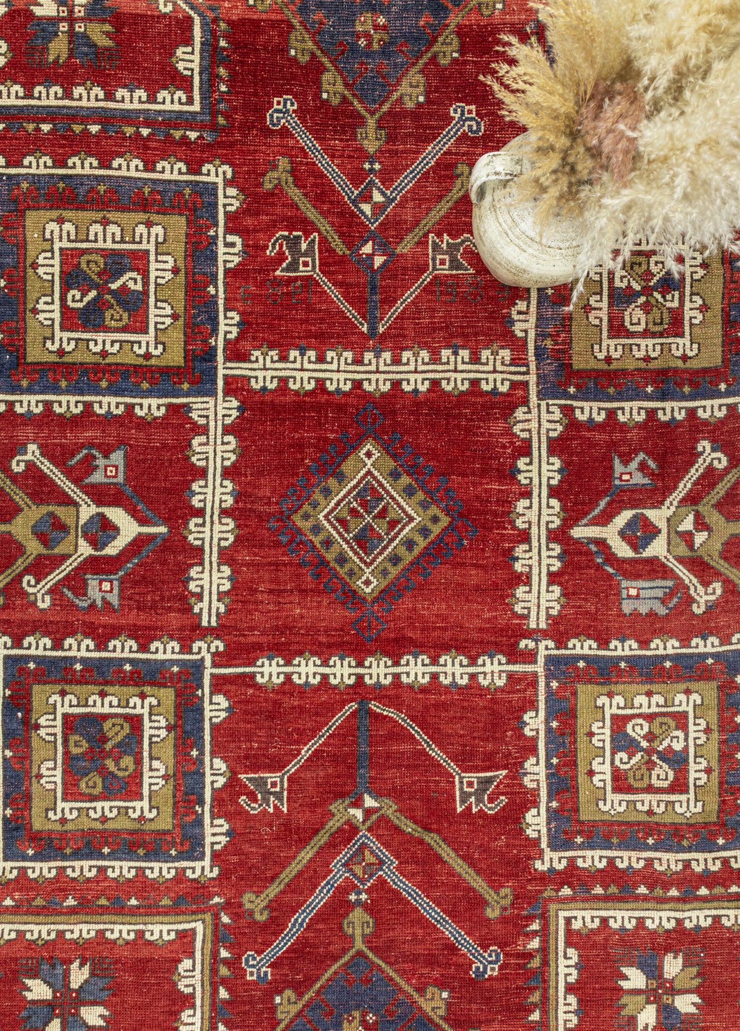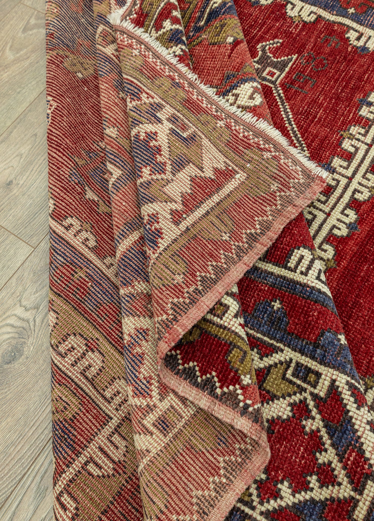 Soho Antiq el dokuma halı ve kilimleri, yaşam alanlarınıza nefes katmak için tasarlanmıştır. Bu zarif el dokuma halı, özenle seçilmiş yüksek kaliteli yün ipliklerinin ustalıkla bir araya getirilmesiyle oluşturulmuştur. Geleneksel el dokuma teknikleri kullanılarak üretilen halı, evinize sıcaklık ve zarafet katmak amacıyla özel olarak tasarlanmıştır. Renk paleti, doğanın yumuşak tonlarından ilham alınarak oluşturulmuş olup, kırmızı ile lacivert renklerinin uyumuyla dikkat çekerken halı içerisinde bulunan diğer renkler ile uyumu yakalamaktadır. Halı, deneyimli el sanatçıları tarafından özenle dokunmuş ve Çanakkale yöresine özgü geleneksel tekniklerle 1970’lerde üretilmiştir, bu da halıya kültürel bir derinlik katmaktadır. Halının ebatı 219 x 350 cm olarak ölçülmüştür ve bu ölçü, halının farklı yaşam alanlarına kolaylıkla uyum sağlamasını sağlar. Halının kalınlığı ise 1 - 3 cm arasındadır. Estetik değerinin ötesinde, bu el dokuma halı, evinize özgünlük ve geleneksel bir his katma konusunda öne çıkmaktadır.