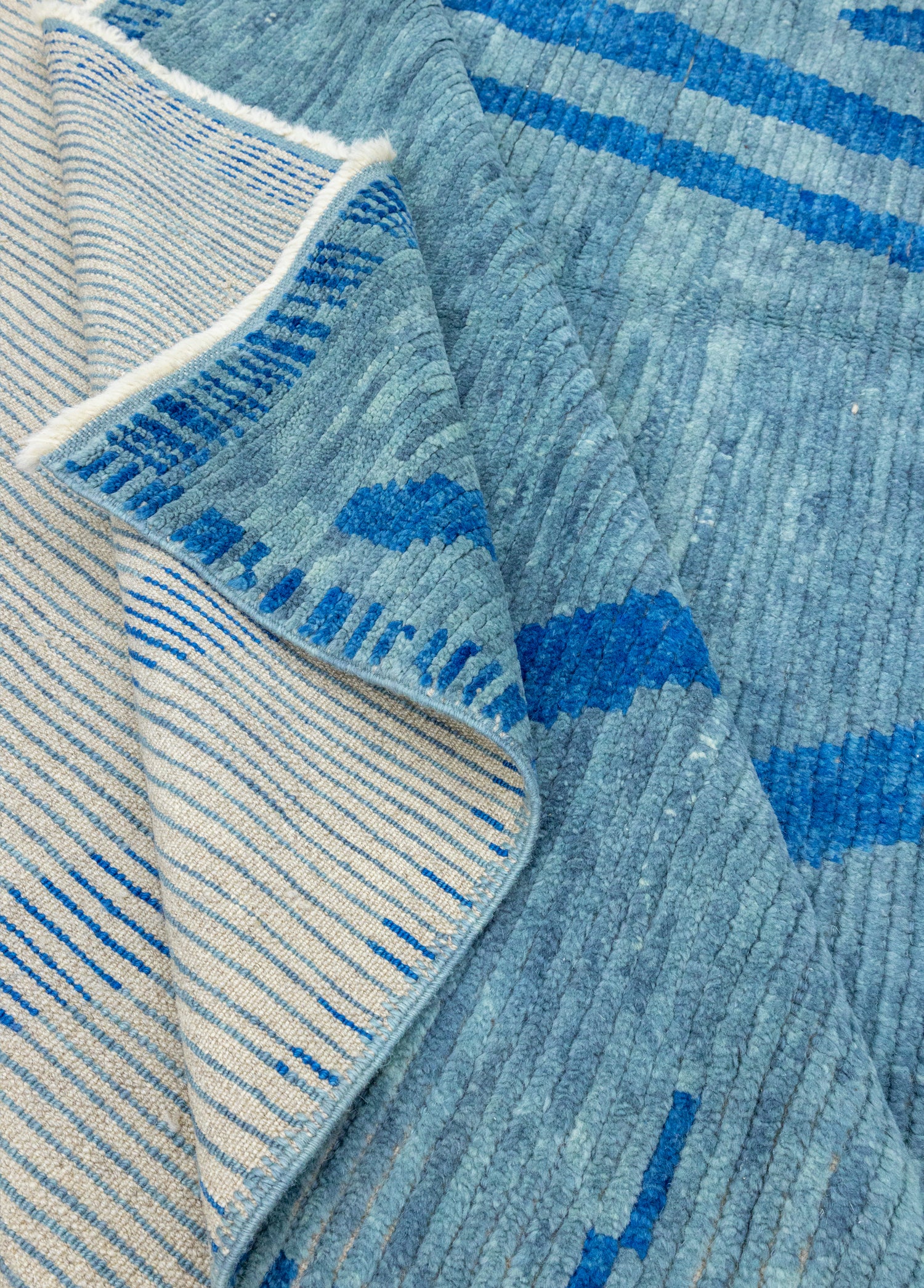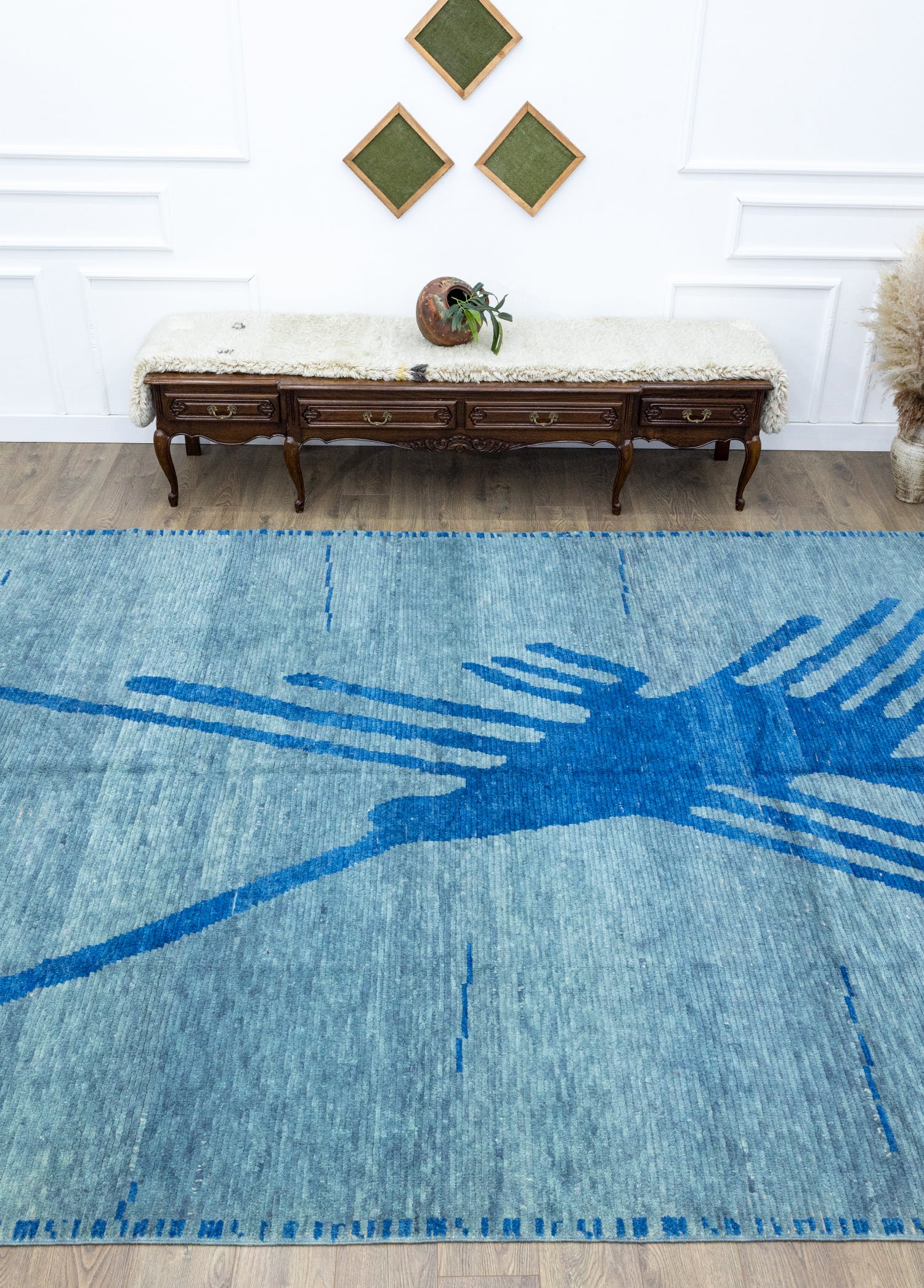 Faralya Mavi Figürlü Tülü El Dokuma Yün Halı 278x443 cm