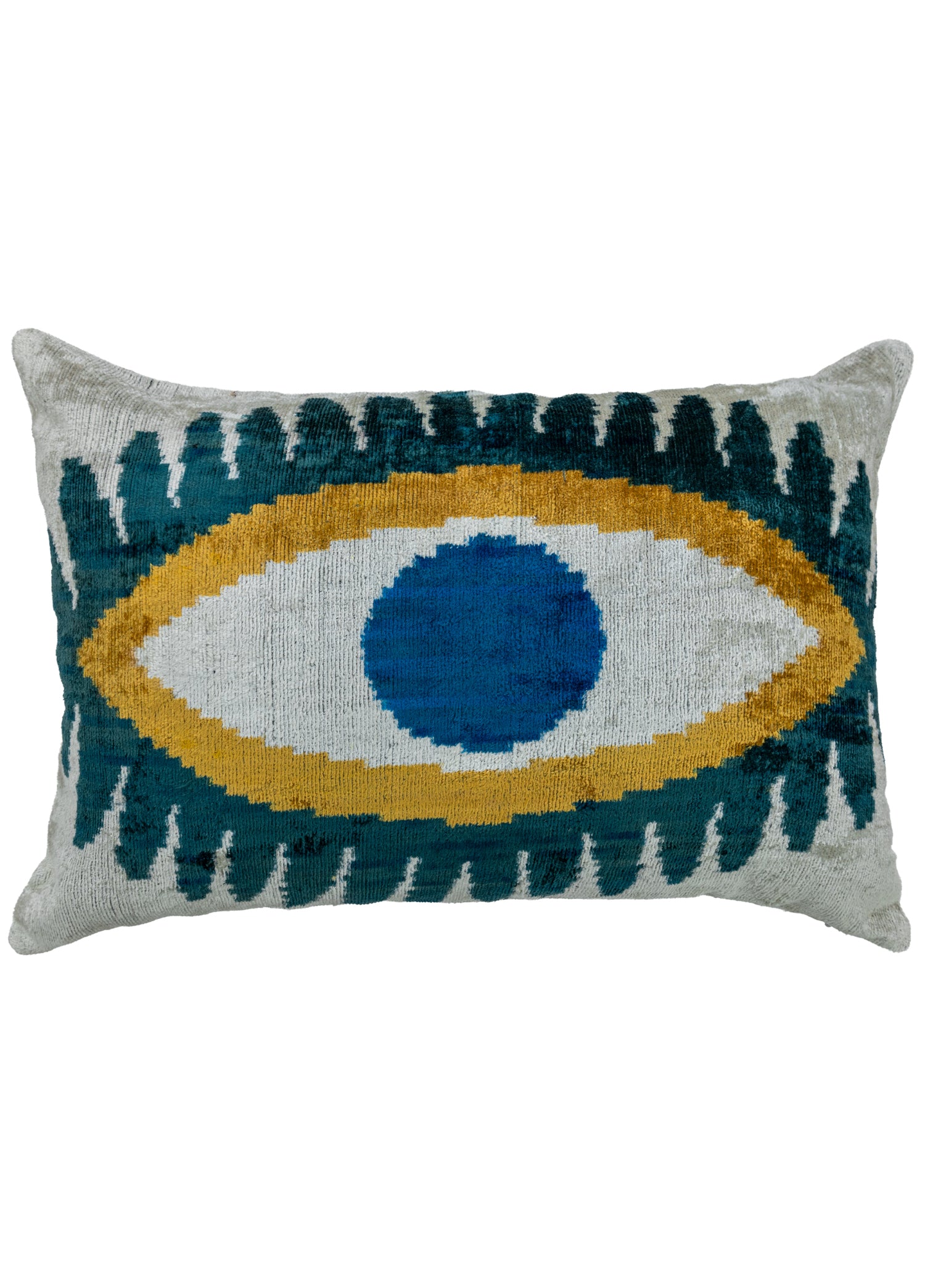 İkat kadife yastıklar, ikat desenleme tekniğiyle üretilen ve kadife, kumaş kullanılarak yapılan yastıklardır. Bu yastıklar, hem ikat deseninin görsel çekiciliğini taşırken hem de kadife kumaşın yumuşaklık ve lüks hissini sunar.