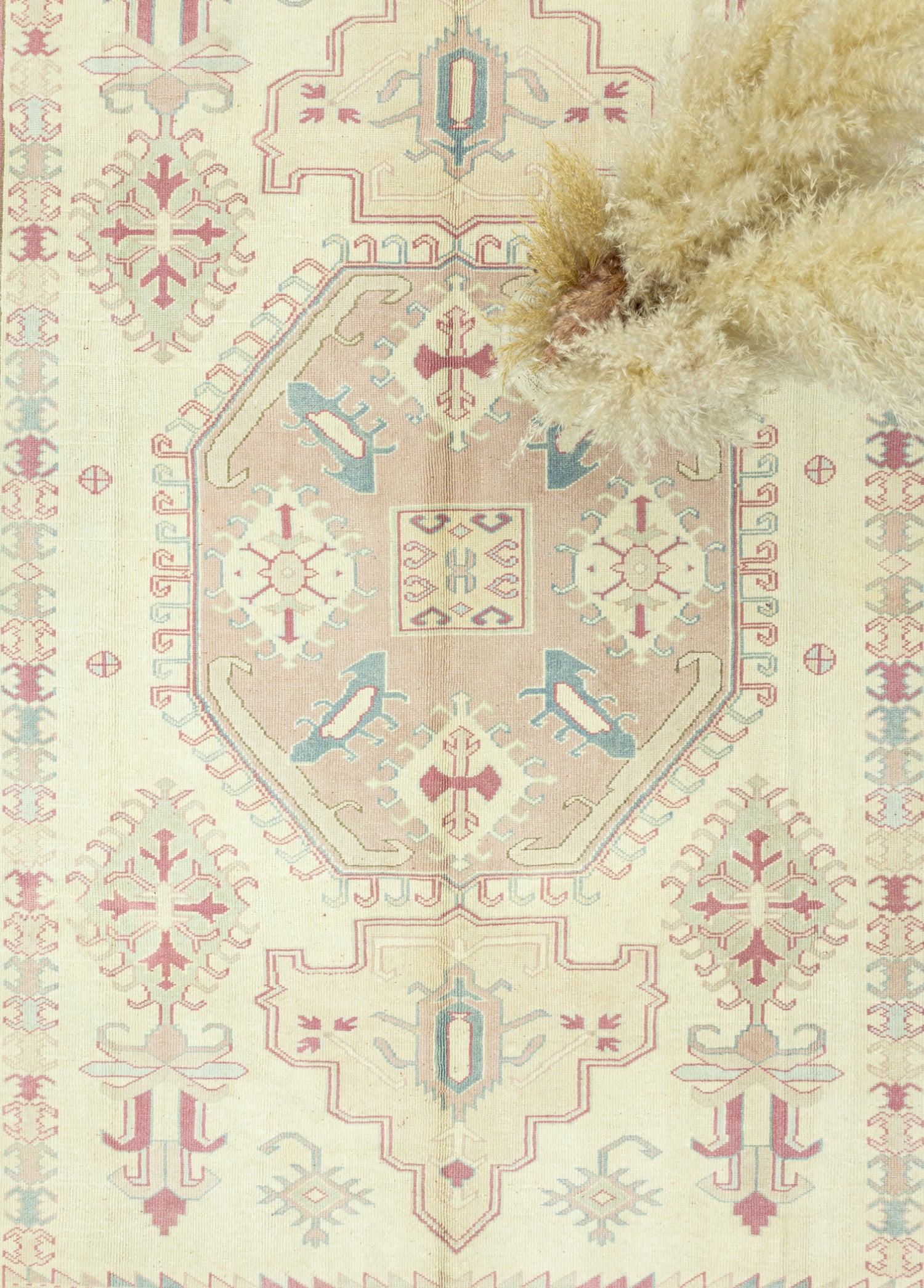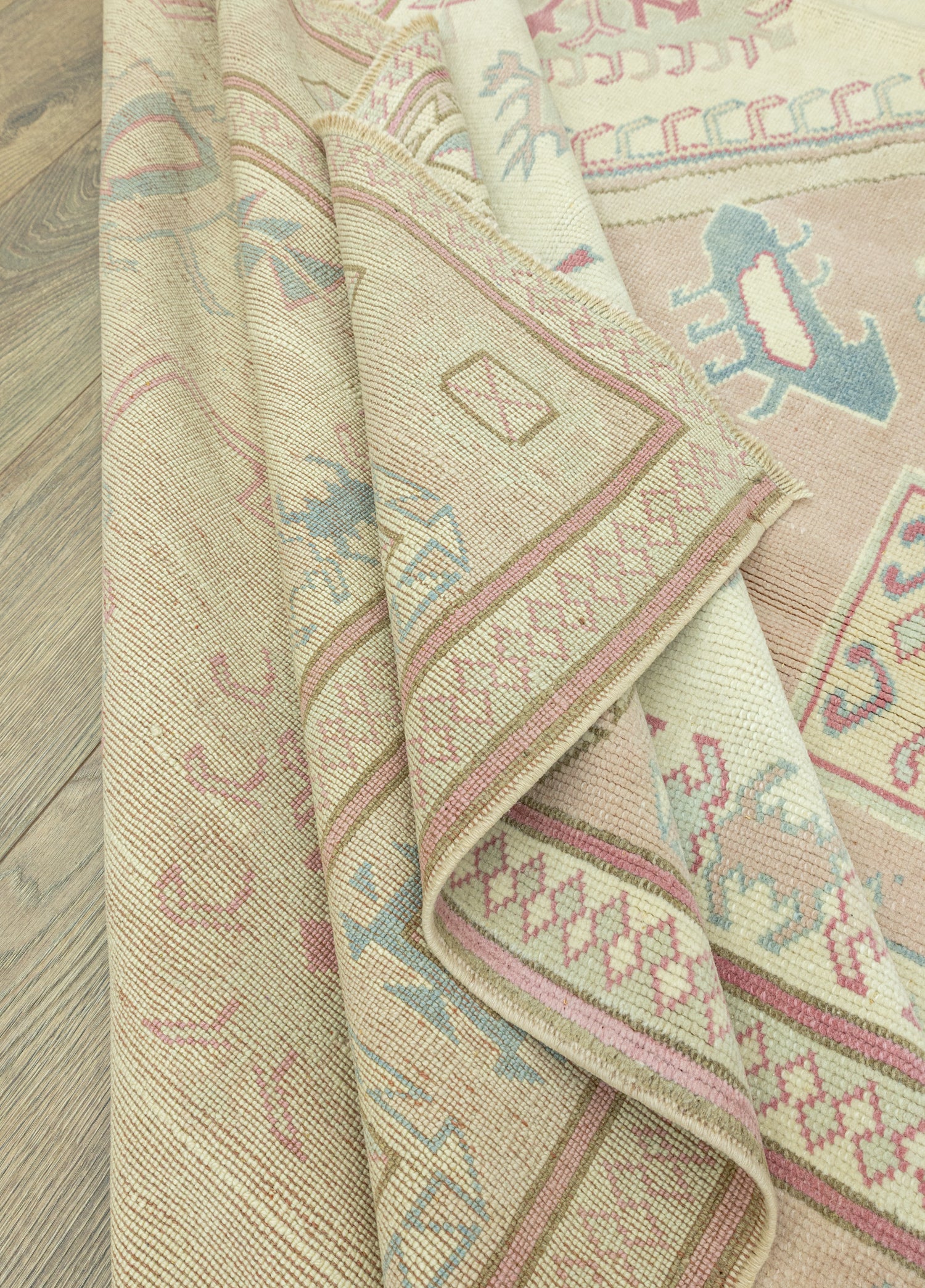 Soho Antiq el dokuma halı ve kilimleri, yaşam alanlarınıza nefes katmak için tasarlanmıştır. Bu zarif el dokuma halı, özenle seçilmiş yüksek kaliteli yün ipliklerinin ustalıkla bir araya getirilmesiyle oluşturulmuştur. Geleneksel el dokuma teknikleri kullanılarak üretilen halı, evinize sıcaklık ve zarafet katmak amacıyla özel olarak tasarlanmıştır. Renk paleti, doğanın yumuşak tonlarından ilham alınarak oluşturulmuş olup, pembe ve krem renklerinin uyumuyla dikkat çekerken halı içerisinde bulunan diğer renkler ile uyumu yakalamaktadır. Halı, deneyimli el sanatçıları tarafından özenle dokunmuş ve Uşak yöresine özgü geleneksel tekniklerle 1970’lerde üretilmiştir, bu da halıya kültürel bir derinlik katmaktadır. Halının ebatı 215 x 291 cm olarak ölçülmüştür ve bu ölçü, halının farklı yaşam alanlarına kolaylıkla uyum sağlamasını sağlar. Halının kalınlığı ise 1 - 3 cm arasındadır. Estetik değerinin ötesinde, bu el dokuma halı, evinize özgünlük ve geleneksel bir his katma konusunda öne çıkmaktadır.