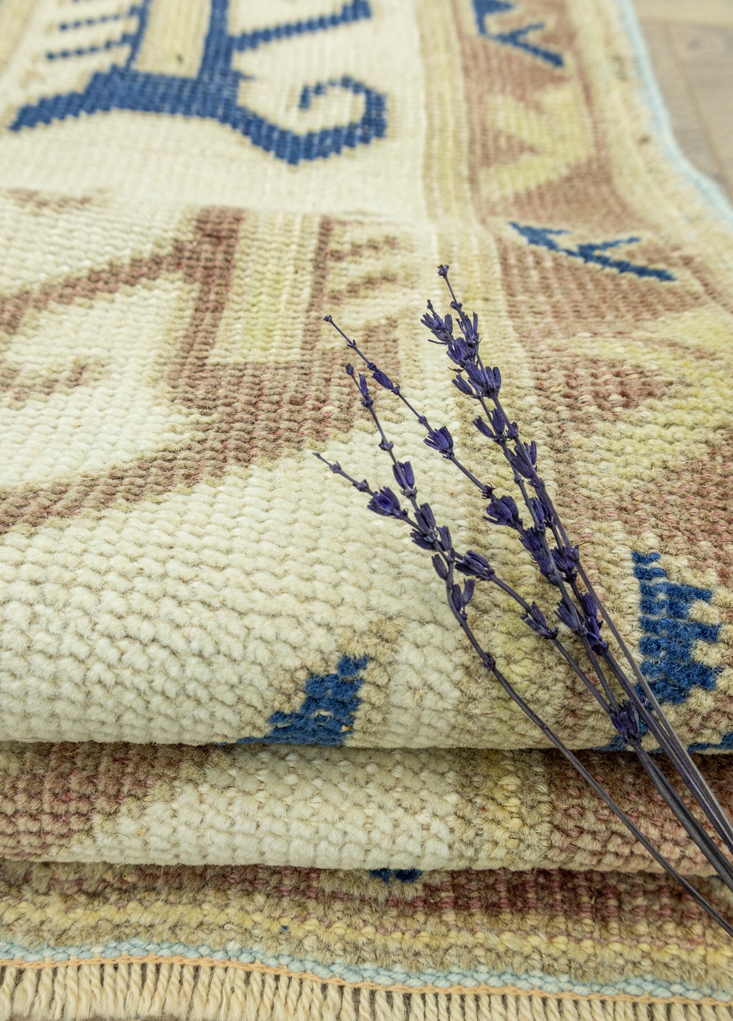 Soho Antiq el dokuma halı ve kilimleri, yaşam alanlarınıza nefes katmak için tasarlanmıştır. Bu zarif el dokuma halı, özenle seçilmiş yüksek kaliteli yün ipliklerinin ustalıkla bir araya getirilmesiyle oluşturulmuştur. Geleneksel el dokuma teknikleri kullanılarak üretilen halı, evinize sıcaklık ve zarafet katmak amacıyla özel olarak tasarlanmıştır. Renk paleti, doğanın yumuşak tonlarından ilham alınarak oluşturulmuş olup, bej ile mavi renklerinin uyumuyla dikkat çekerken halı içerisinde bulunan diğer renkler ile uyumu yakalamaktadır. Halı, deneyimli el sanatçıları tarafından özenle dokunmuş ve Ege yöresine özgü geleneksel tekniklerle 1970’lerde üretilmiştir, bu da halıya kültürel bir derinlik katmaktadır. Halının ebatı 214 x 333 cm olarak ölçülmüştür ve bu ölçü, halının farklı yaşam alanlarına kolaylıkla uyum sağlamasını sağlar. Halının kalınlığı ise 1 - 3 cm arasındadır. Estetik değerinin ötesinde, bu el dokuma halı, evinize özgünlük ve geleneksel bir his katma konusunda öne çıkmaktadır.