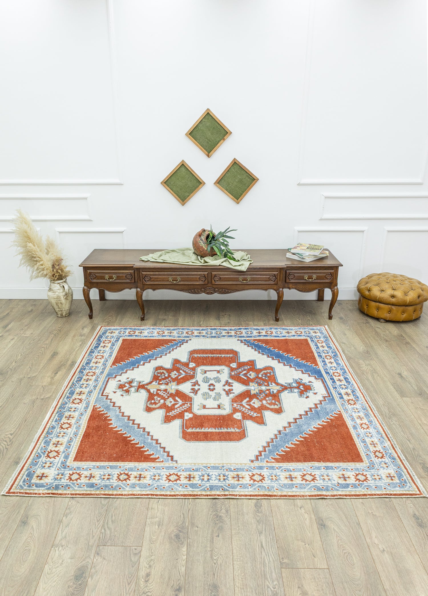 Gösterişli ve estetik tasarımlarıyla Soho Antiq halı modellerimiz, yaşam alanınıza yeni bir hava katacak! Uzun ömürlü halı modelimiz tamamen yünden oluşur ve özel el dokuma tekniği ile dokunmaktadır. Halı modelini özel yapan ve yıllar geçse de kaliteyi korumasını sağlayan becerilerle ürettiğimiz bu halı 1 ile 3 cm arası bir kalınlığa sahiptir ve boyu 195 x 200 cm’dir. Pek çok renk seçeneğine sahip halı modelleri içerisinden seçtiğiniz halının ana rengi mavi tonlarıdır. Ayrıca halı tasarımında bulunan diğer renkler kiremit ve çok renklidir. Soho Antiq içerisinde, kültürel ve geleneksel özelliklere sahip halılar bulunur. Geçmişten günümüze gelen bu halı modeli Anadolu tarihinden izler taşır ve özellikle Uşak yöresinden kültürel renk ve dokunuşlara sahiptir. Tüm bu geleneksel dokunuşları, halı üzerindeki yöresel uşak halısı deseninde görmek mümkün.